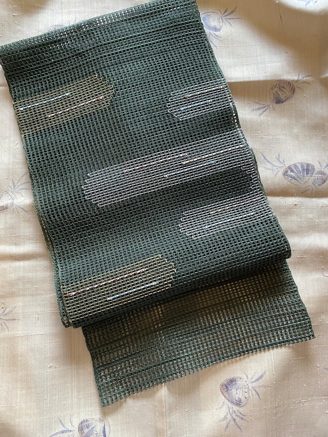 羅のような涼しげな織りの夏帯。 羅のような硬さはなく締めやすいしっとりした風合い。 単衣から真夏に。 ベージュ、生成り系。 おサカナの顔がとてもかあいいです。 織り紋様です。 リサイクル品 絹 着用感はあまり感じられませんが 多少の経年感はあります。 着用に気になるようは点はないと思います。 帯 サイズ 約 長さ 3.6㍍ 幅30.5㌢