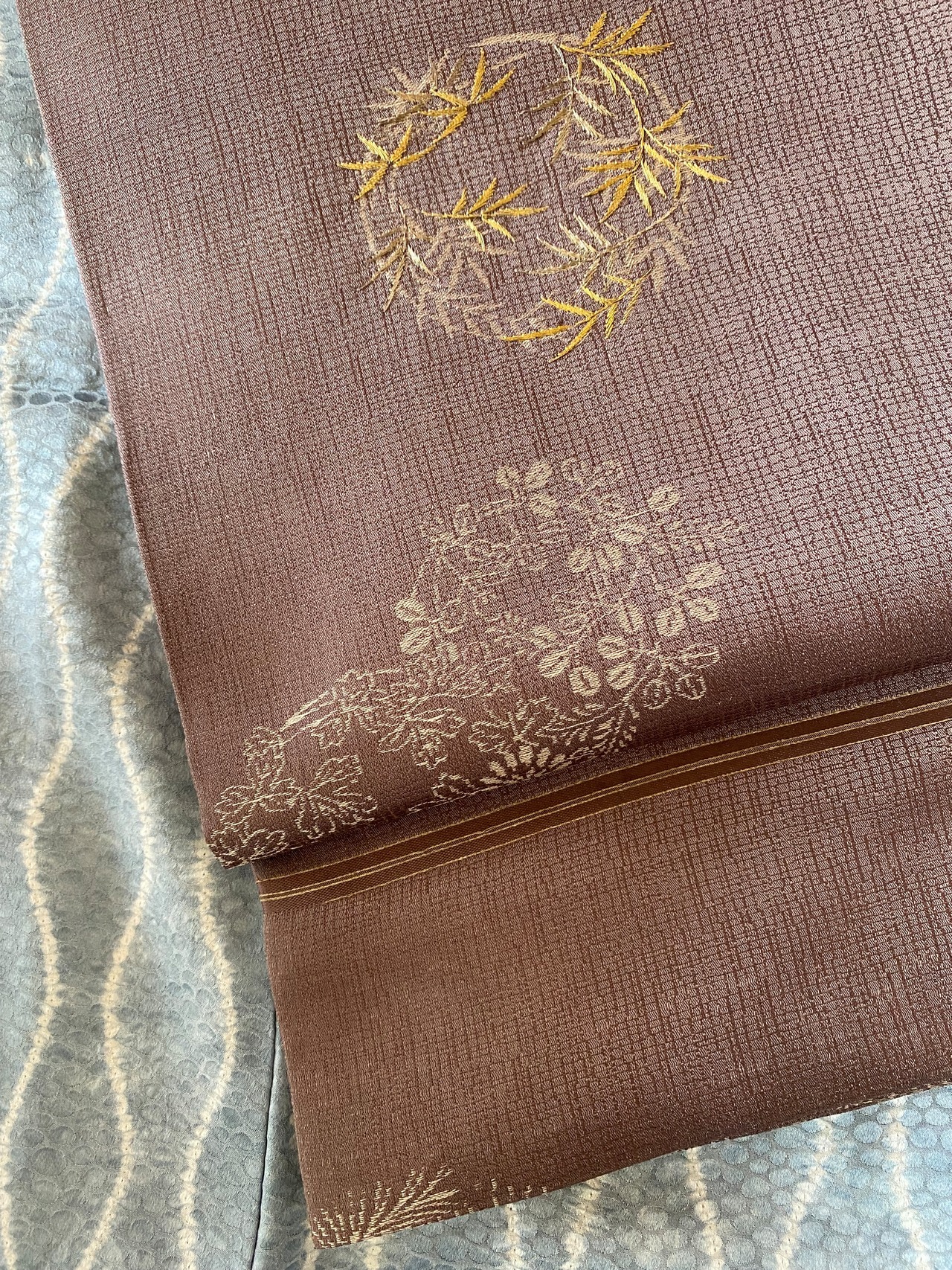 アンティーク丸紋 松竹梅 水蘭 萩 刺繍帯 小豆色