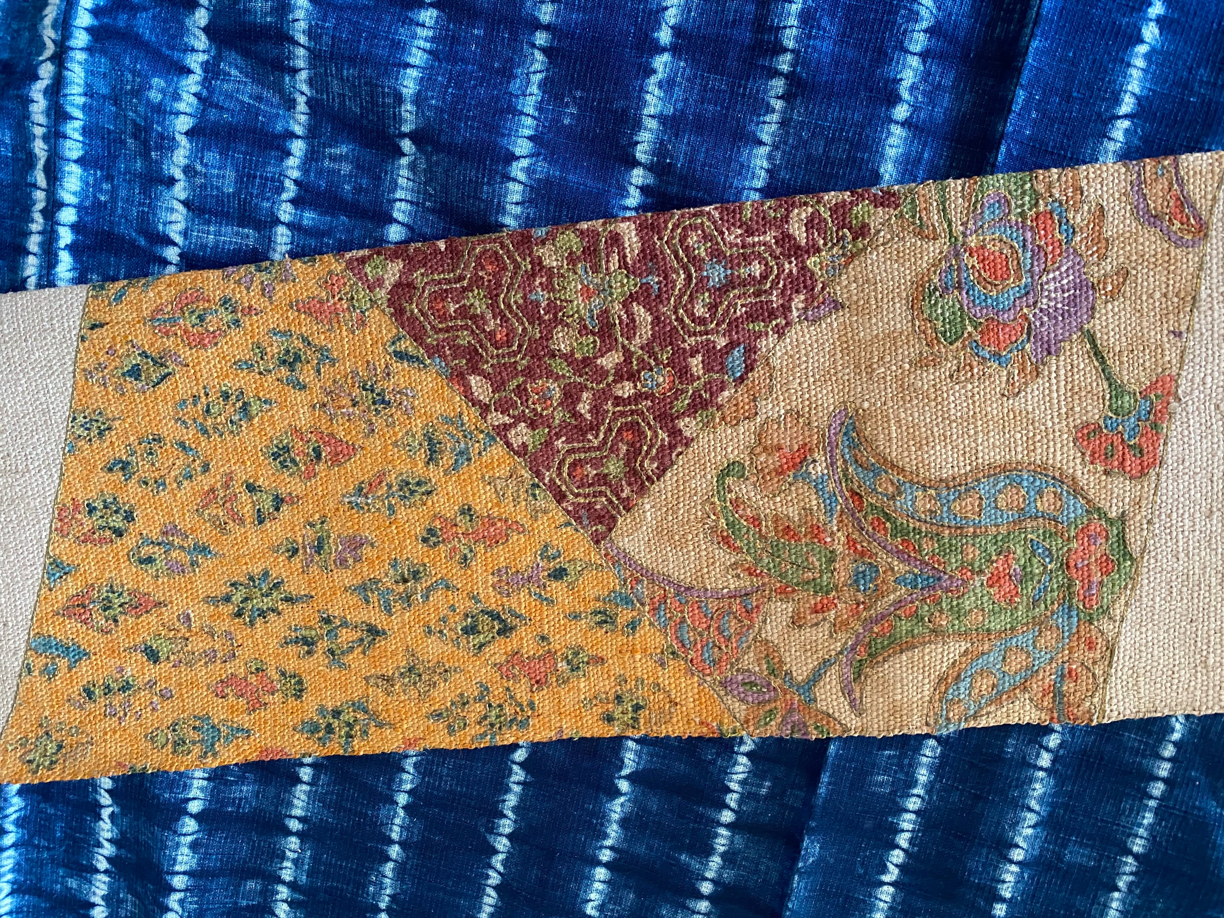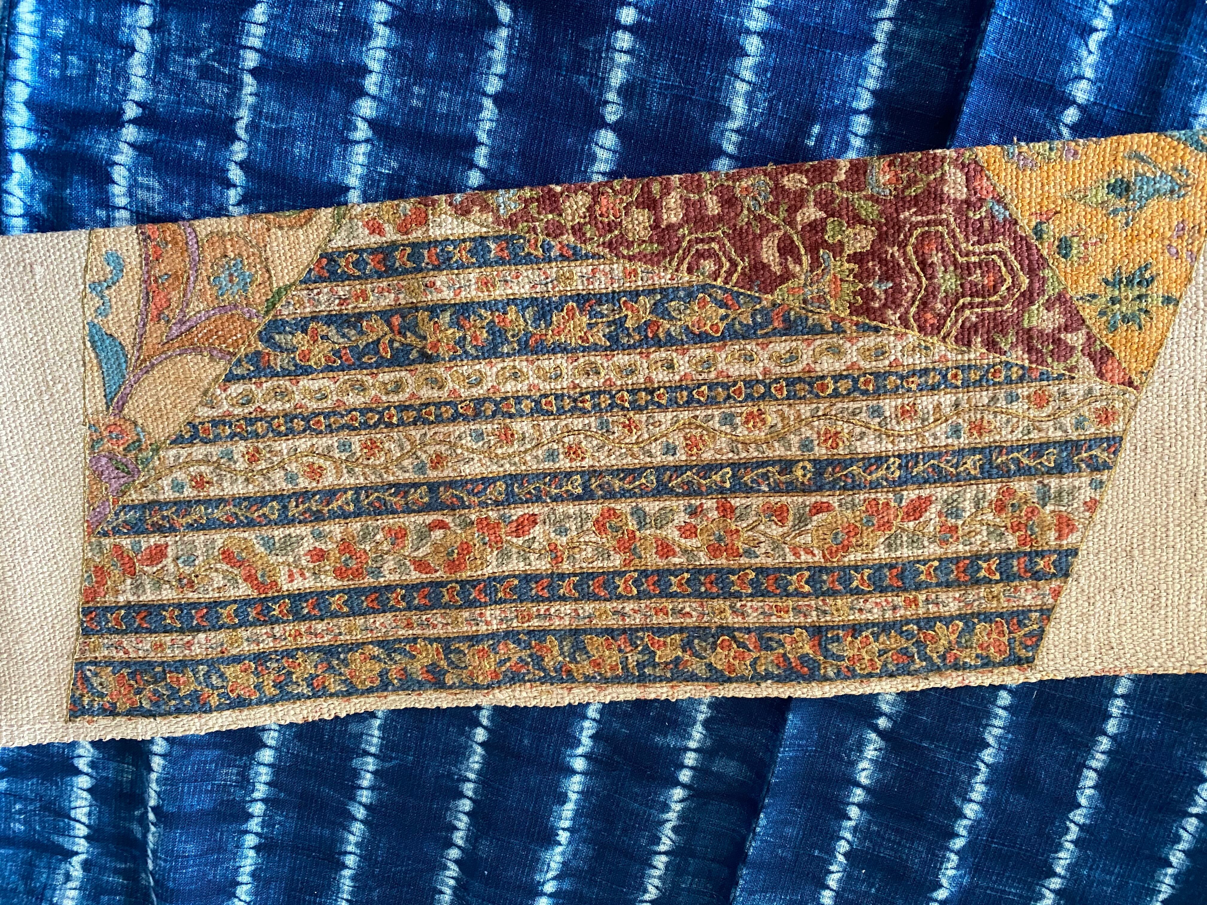 更紗 紬織り地に染め 名古屋帯 ざっくり茶生成り
