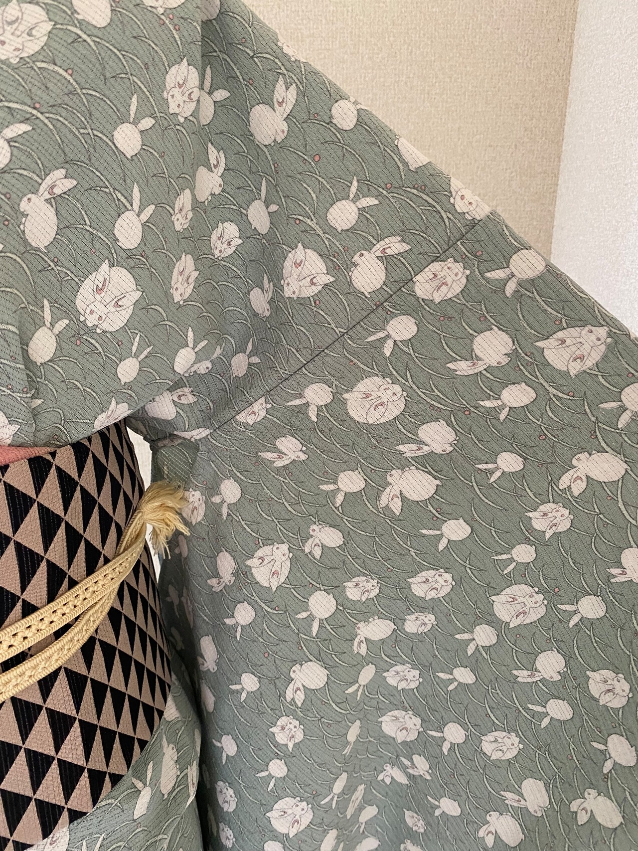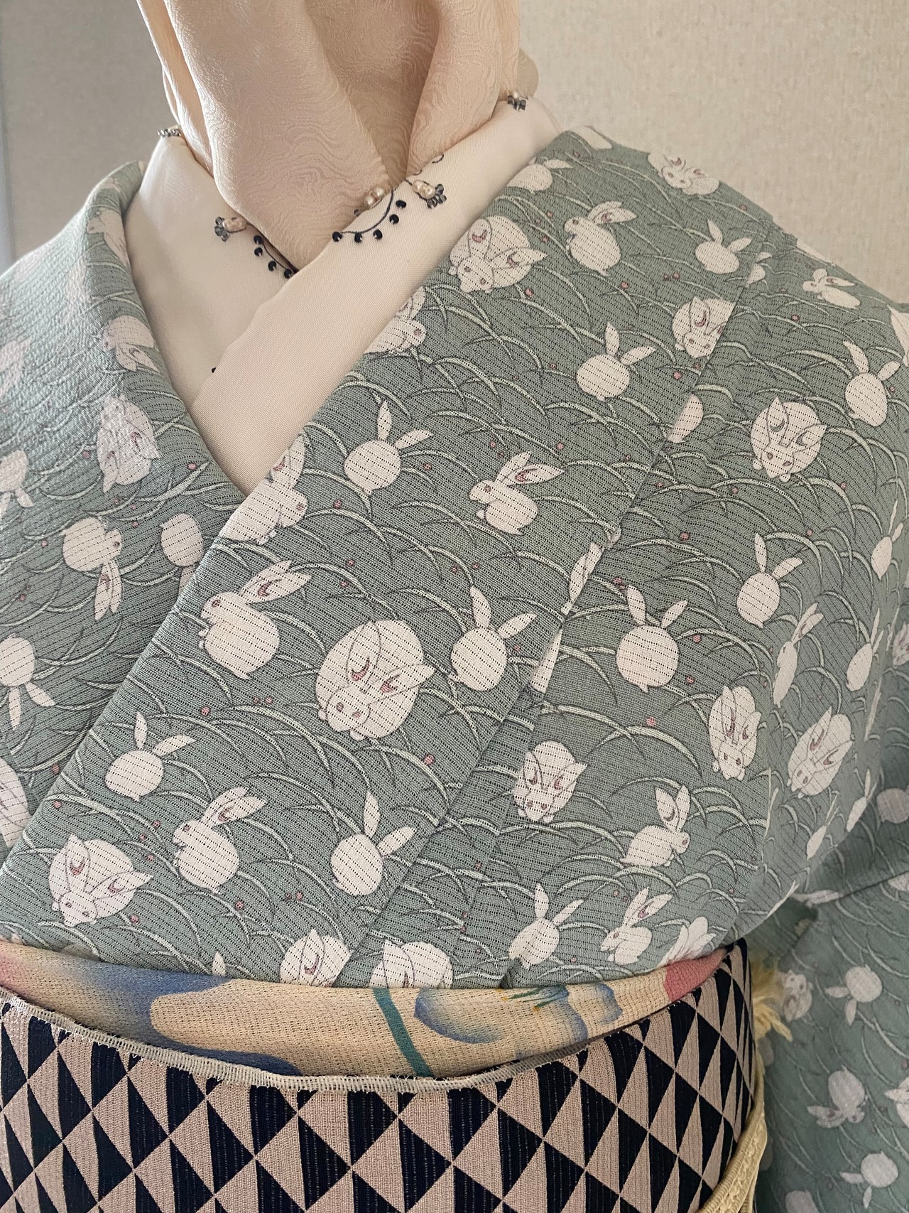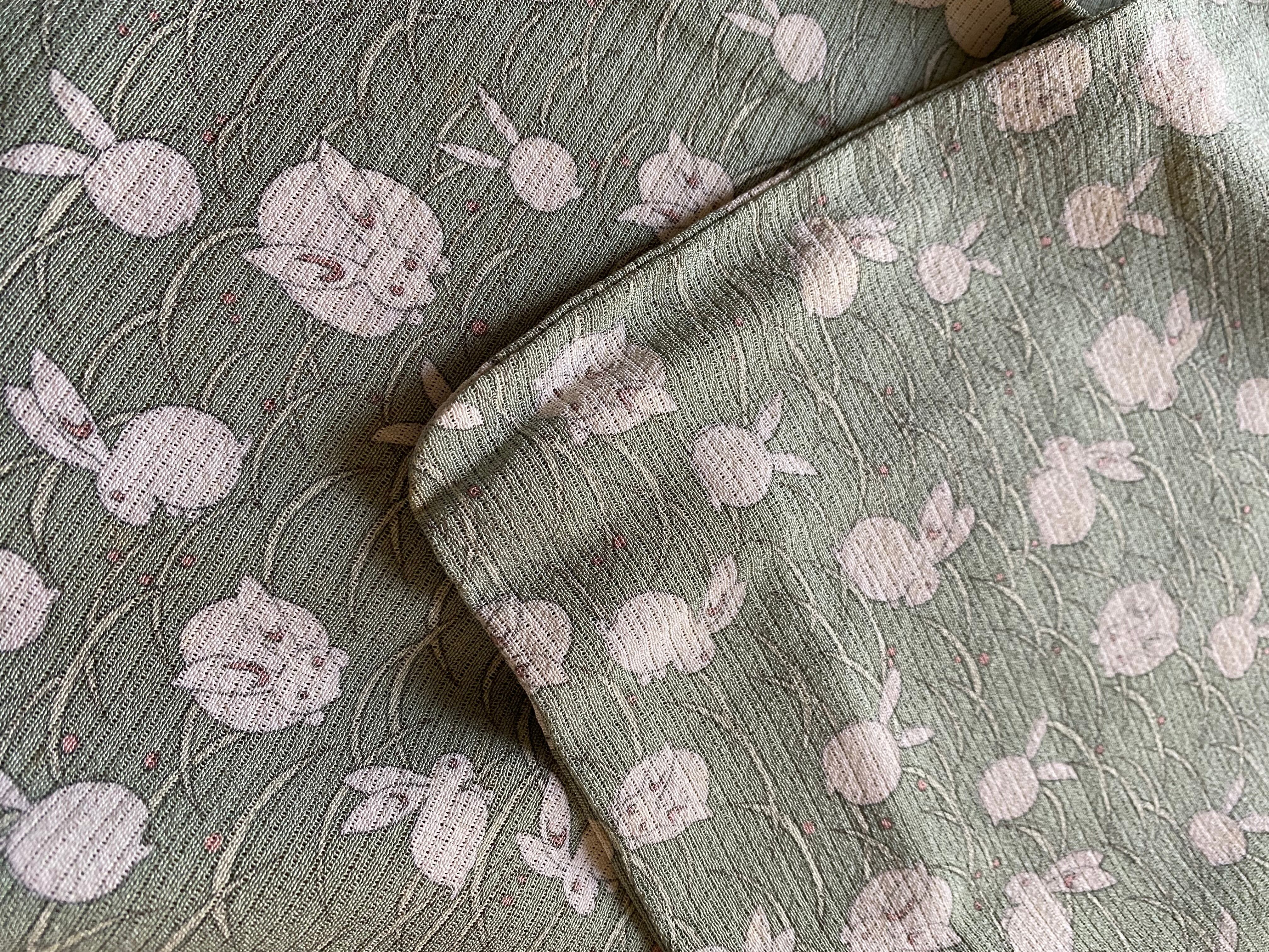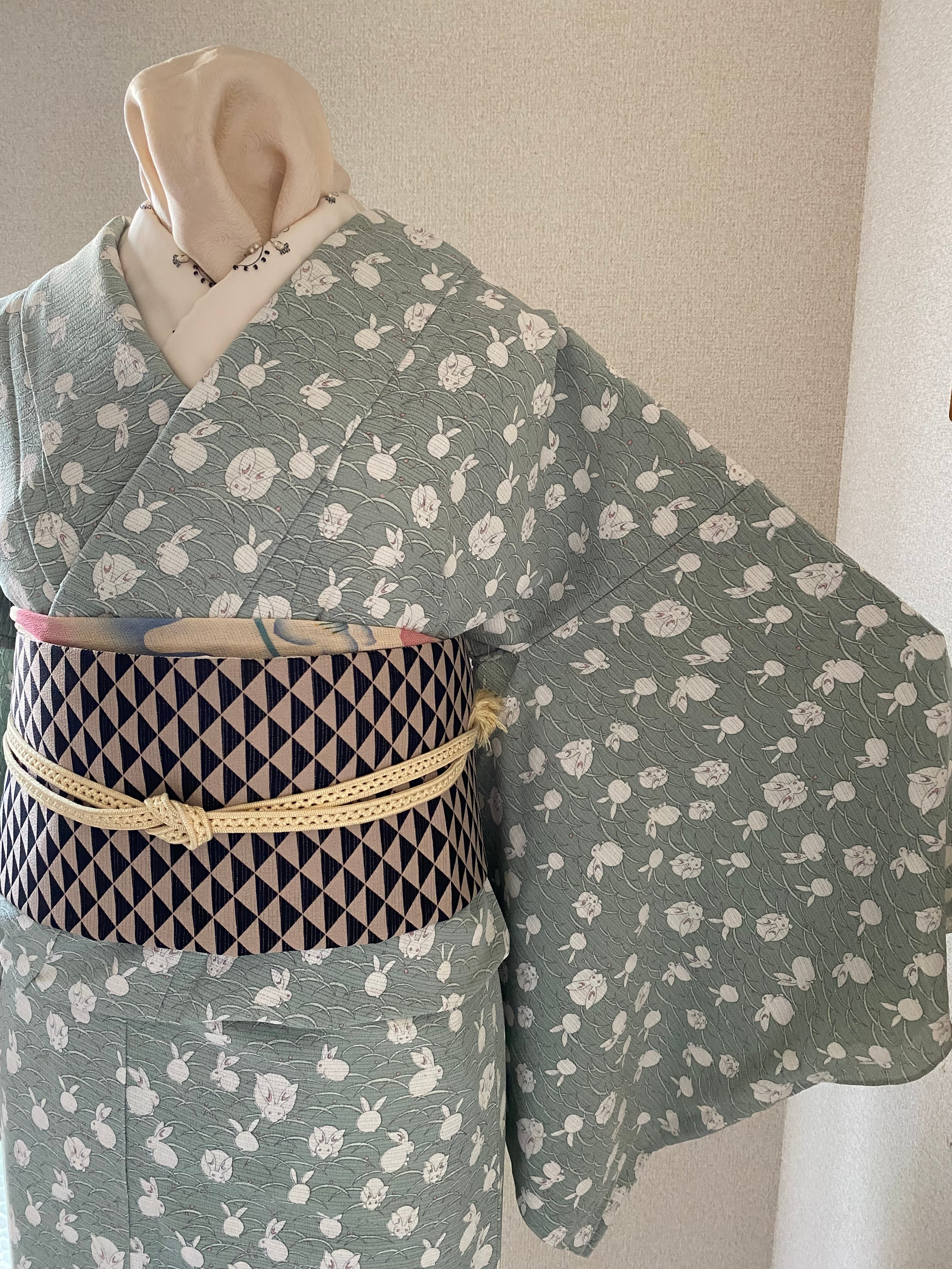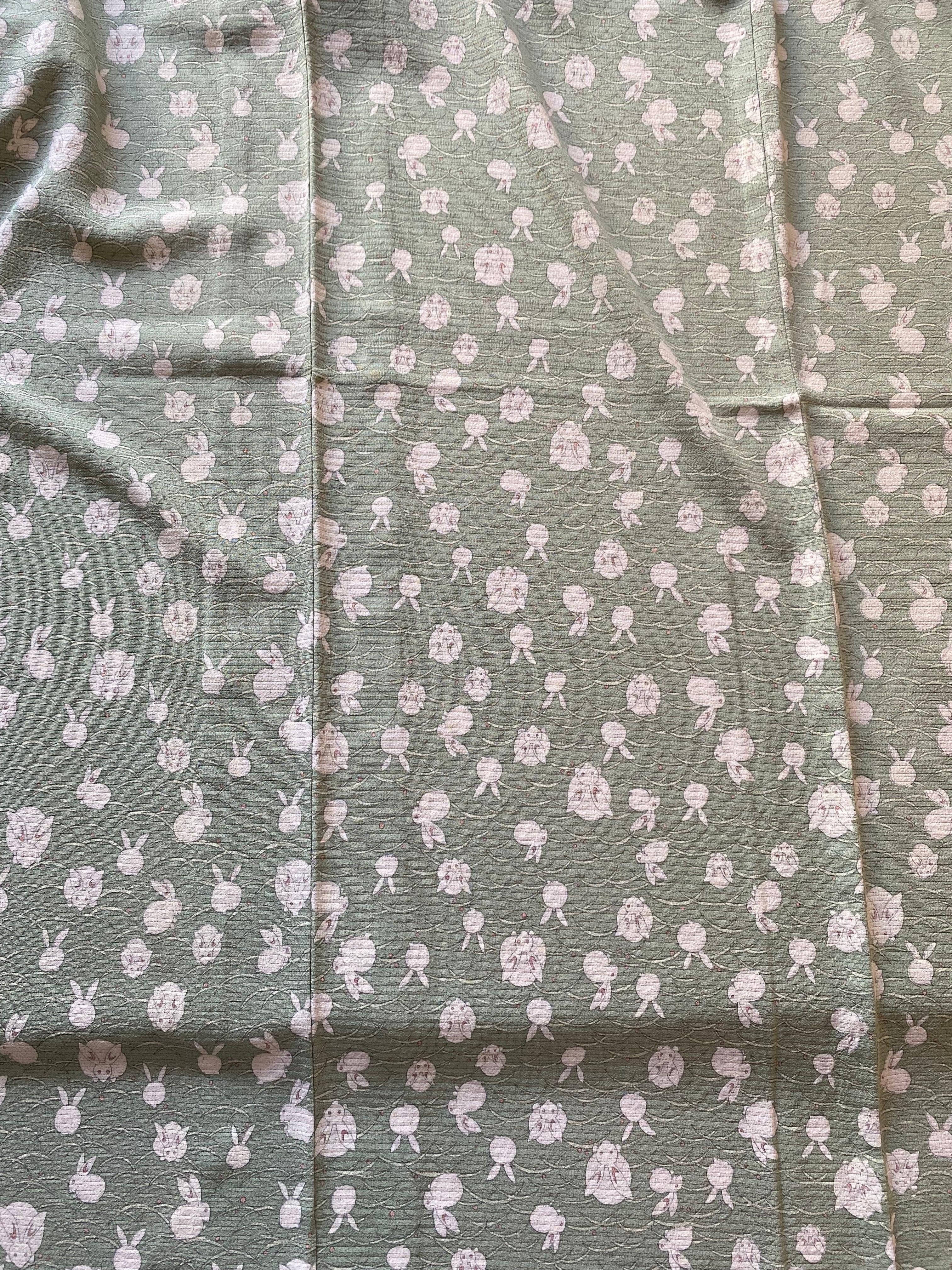 絽縮緬 うさぎ ペパーミントグリーン 小紋