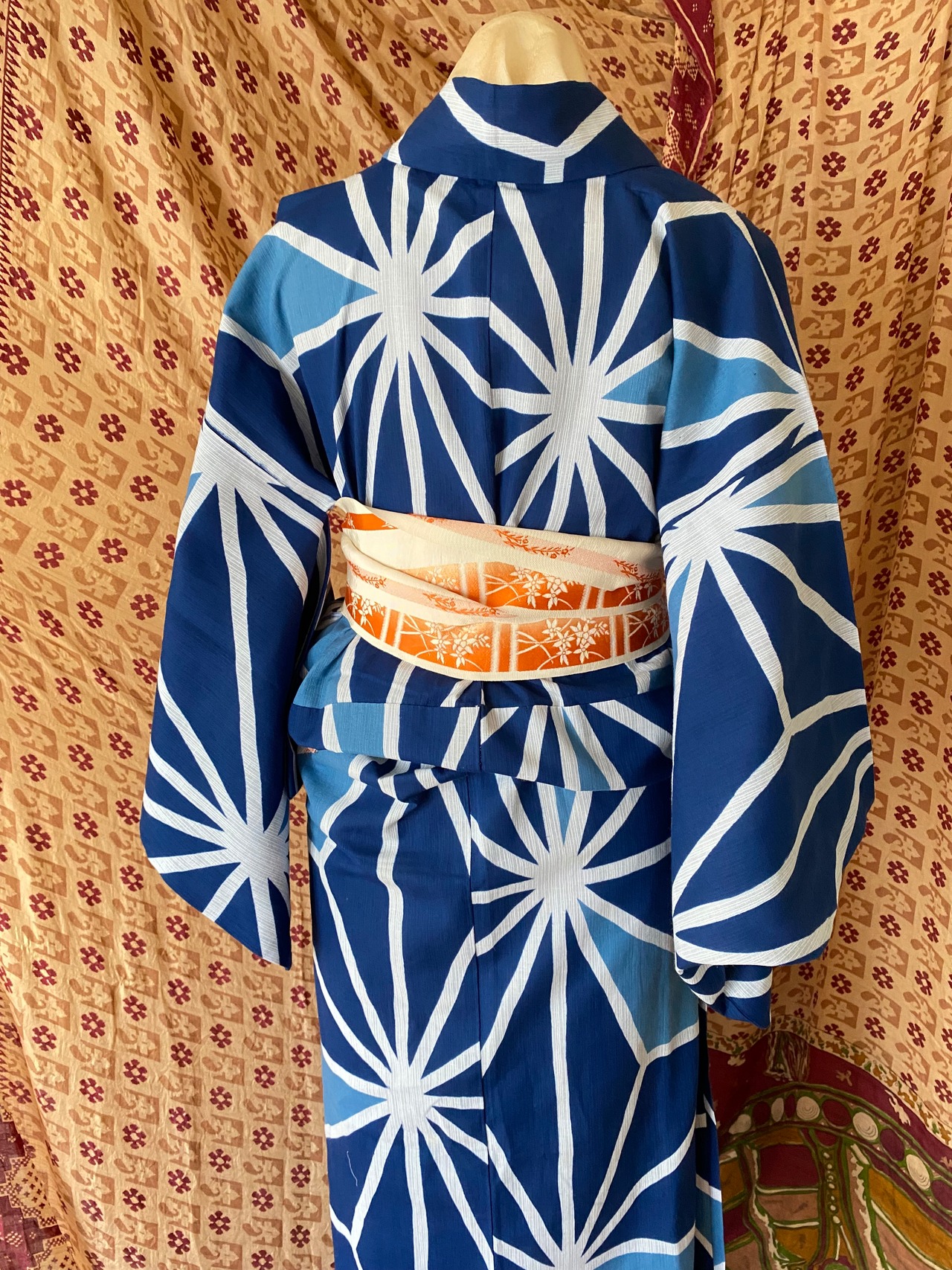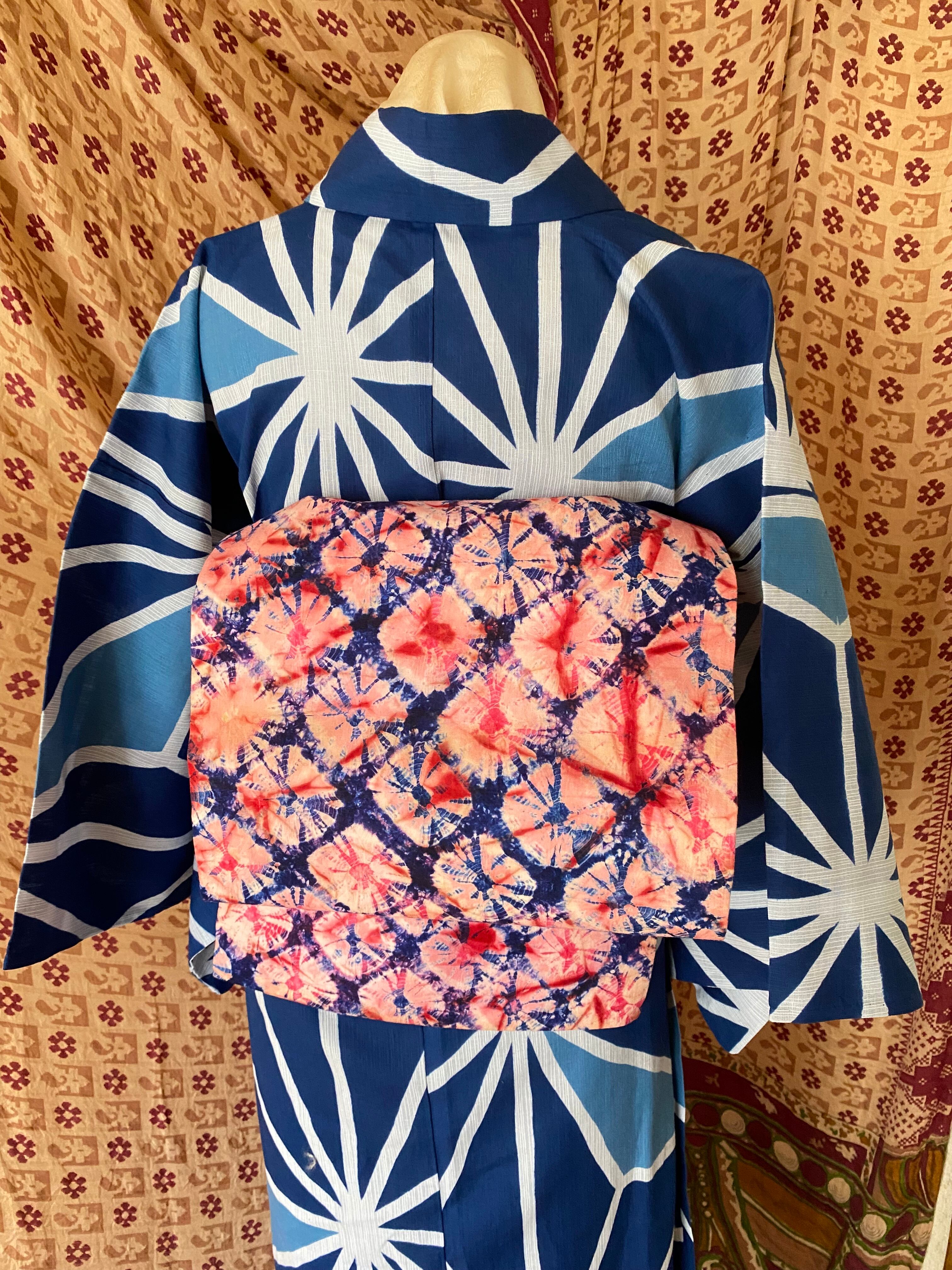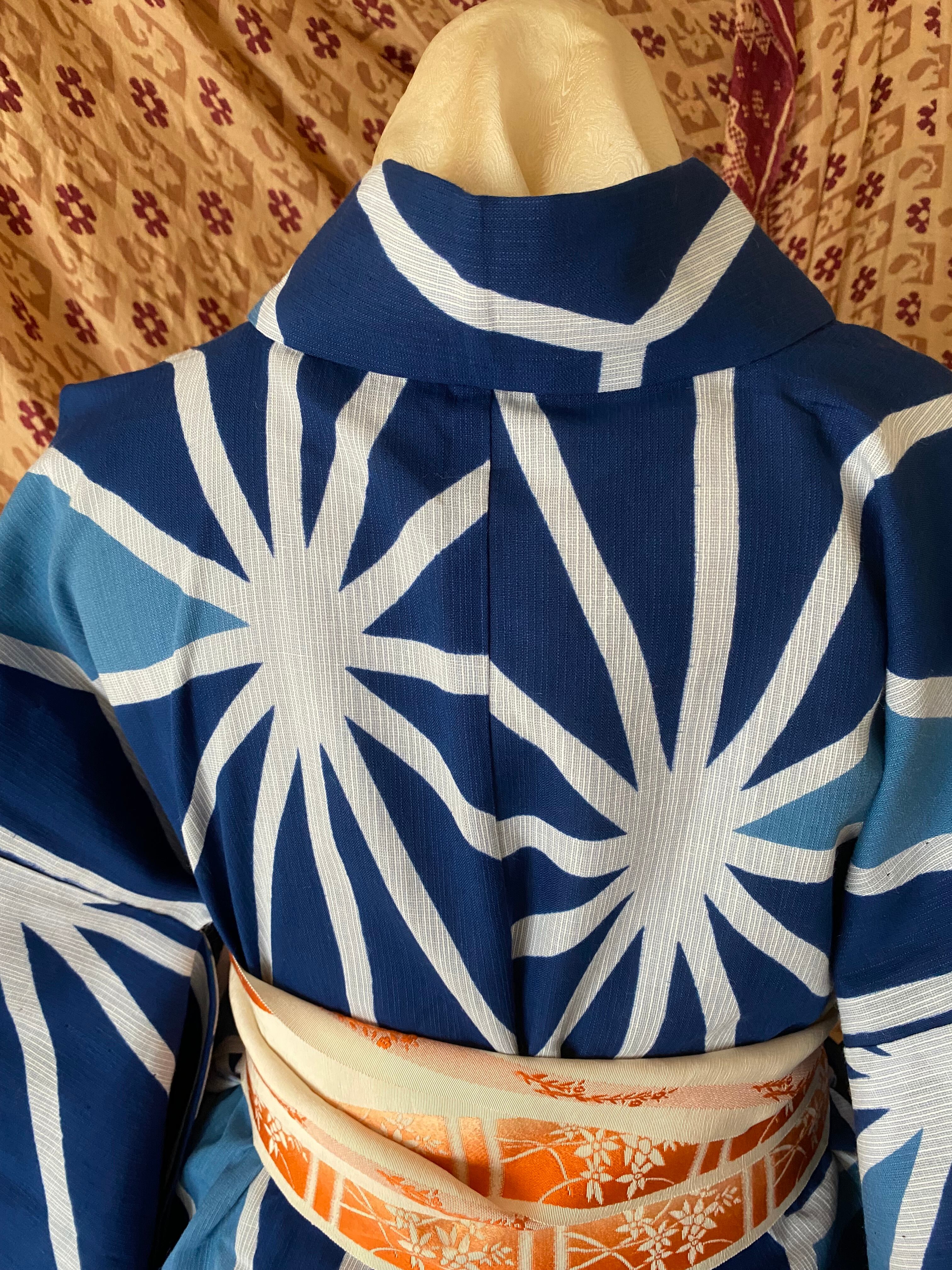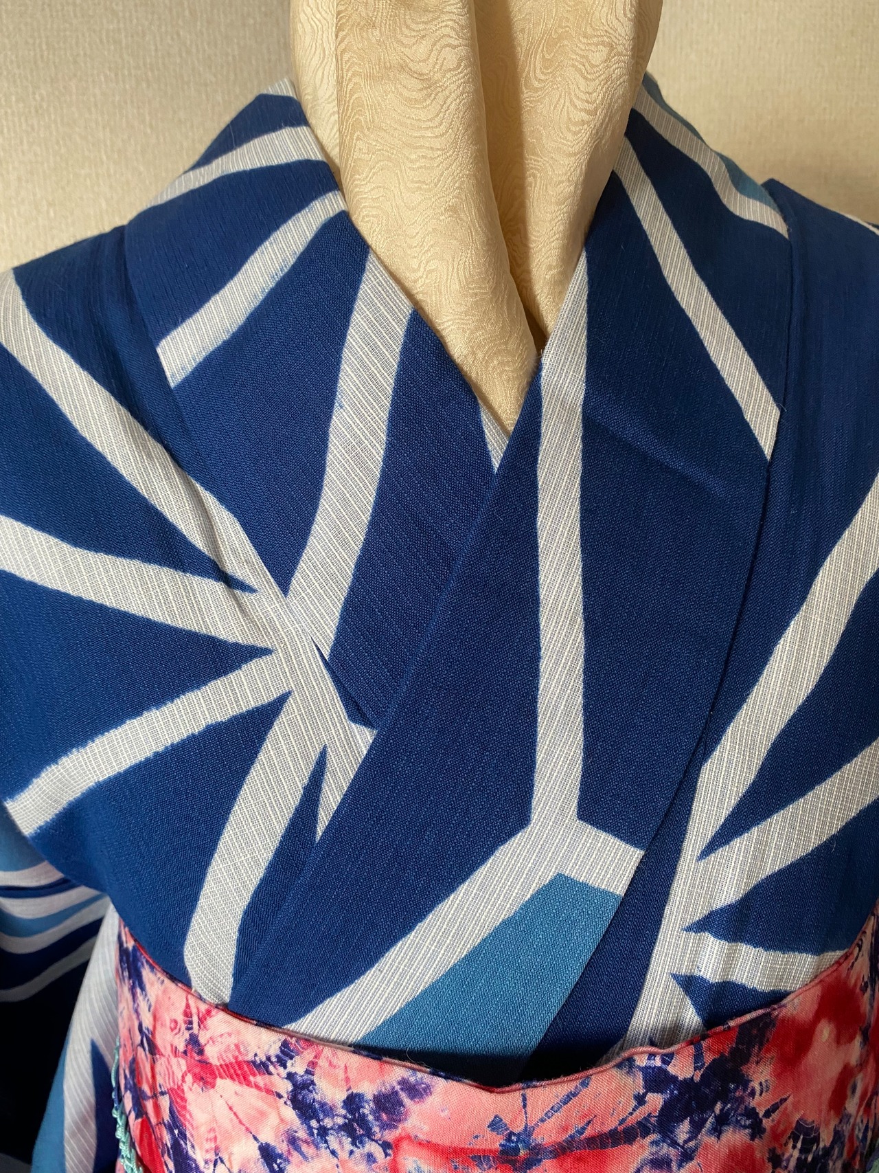 浴衣として襟をつけて単衣木綿キモノとしてもお召しになれます。