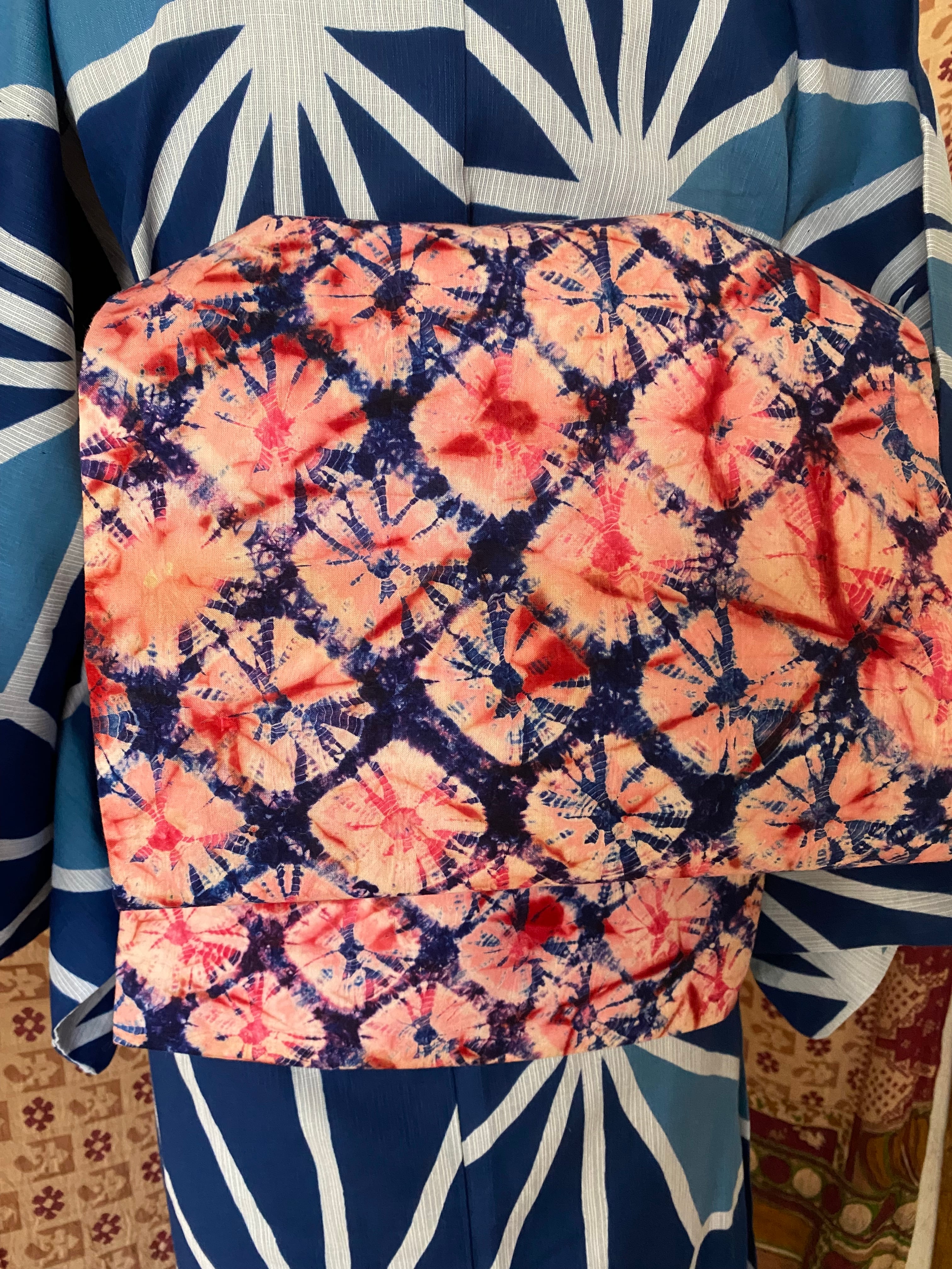 絞り風 絞り柄プリント 木綿 名古屋帯
