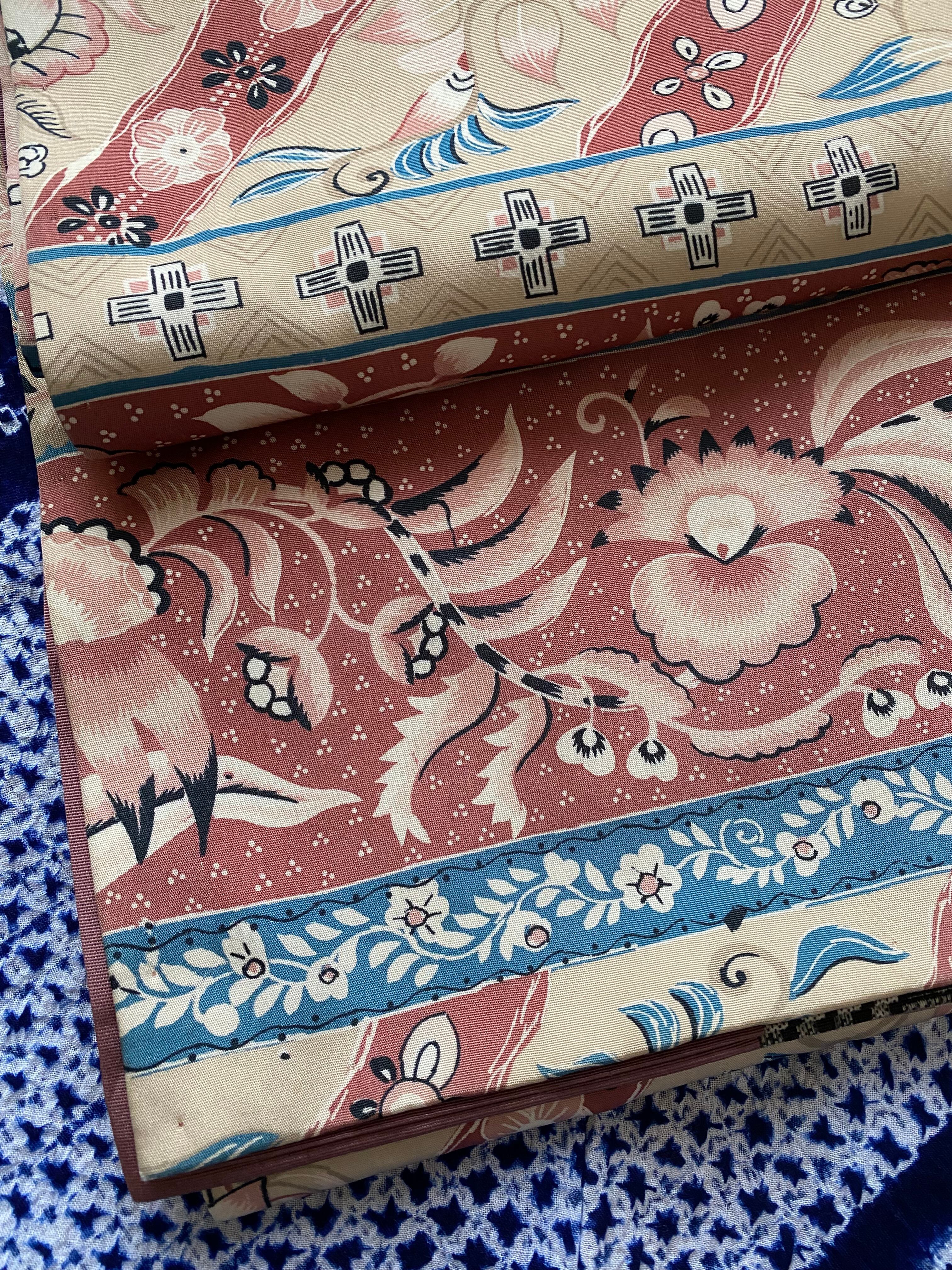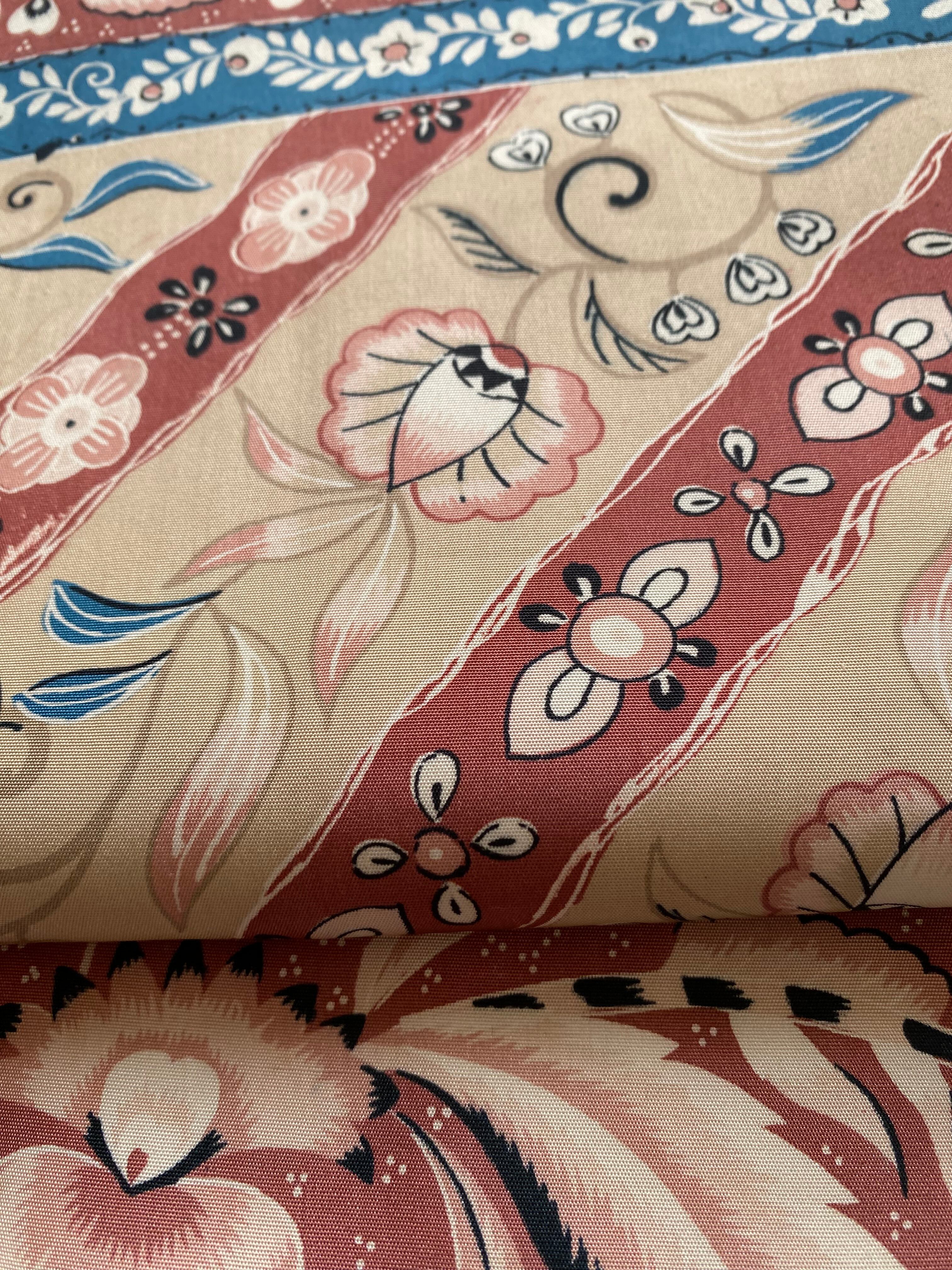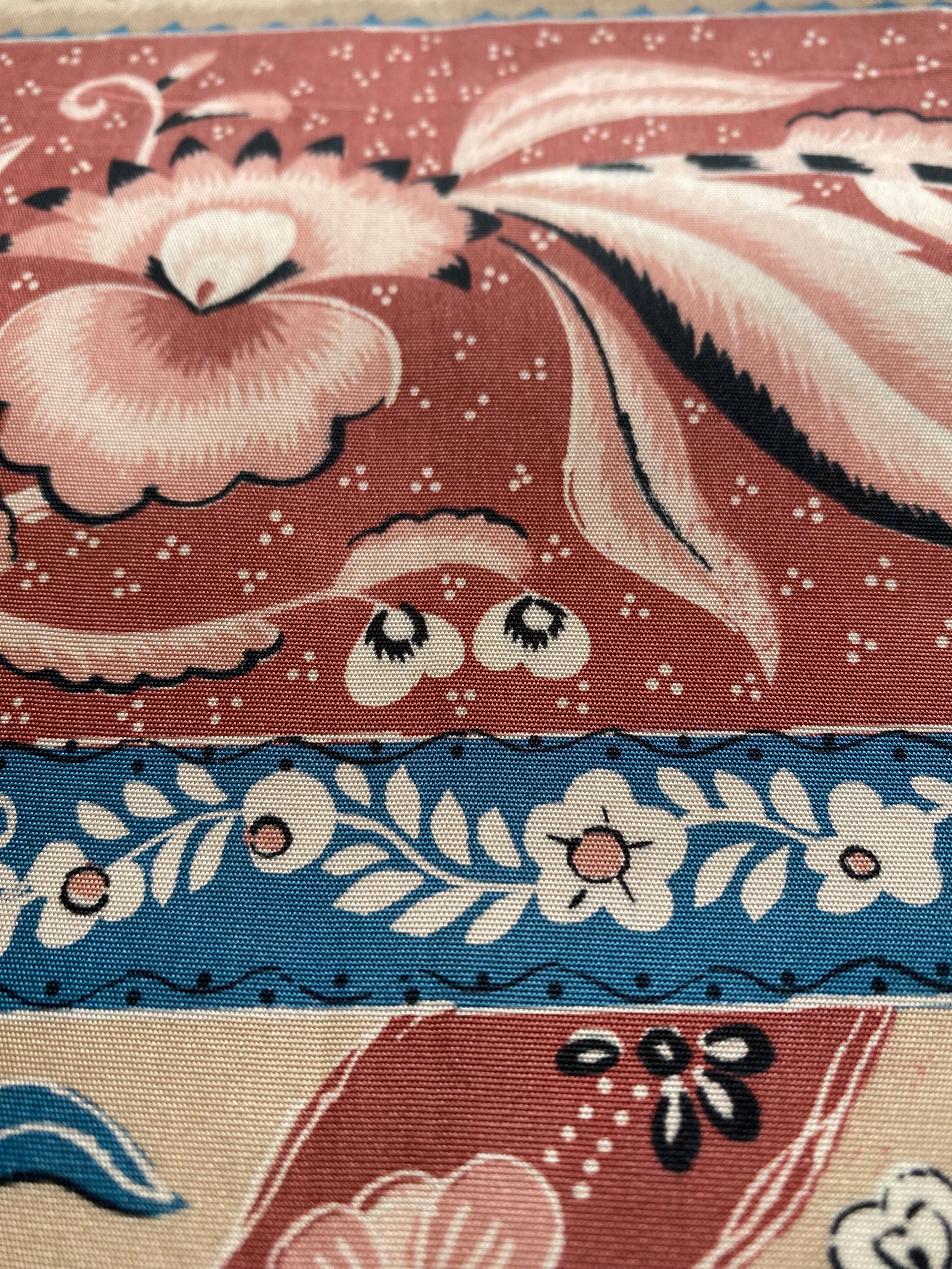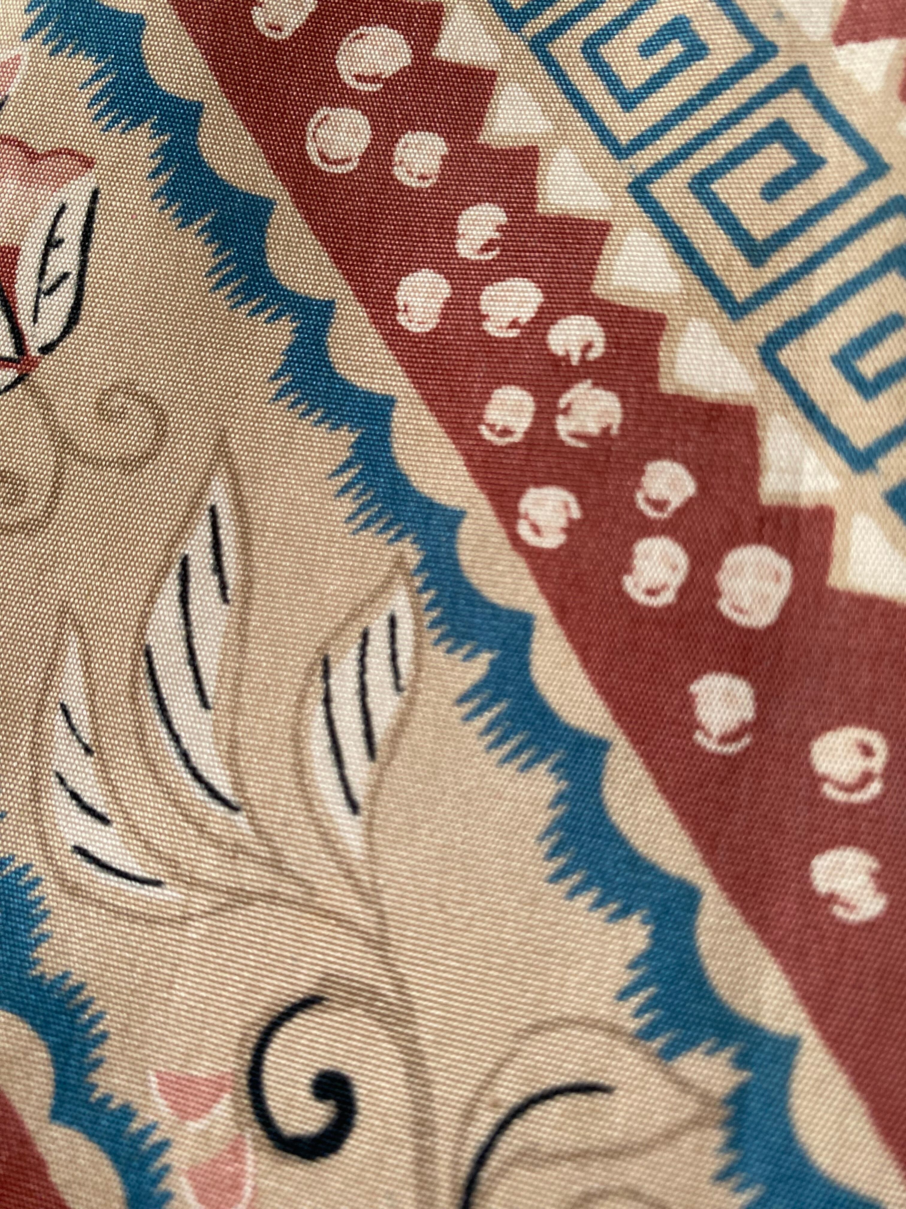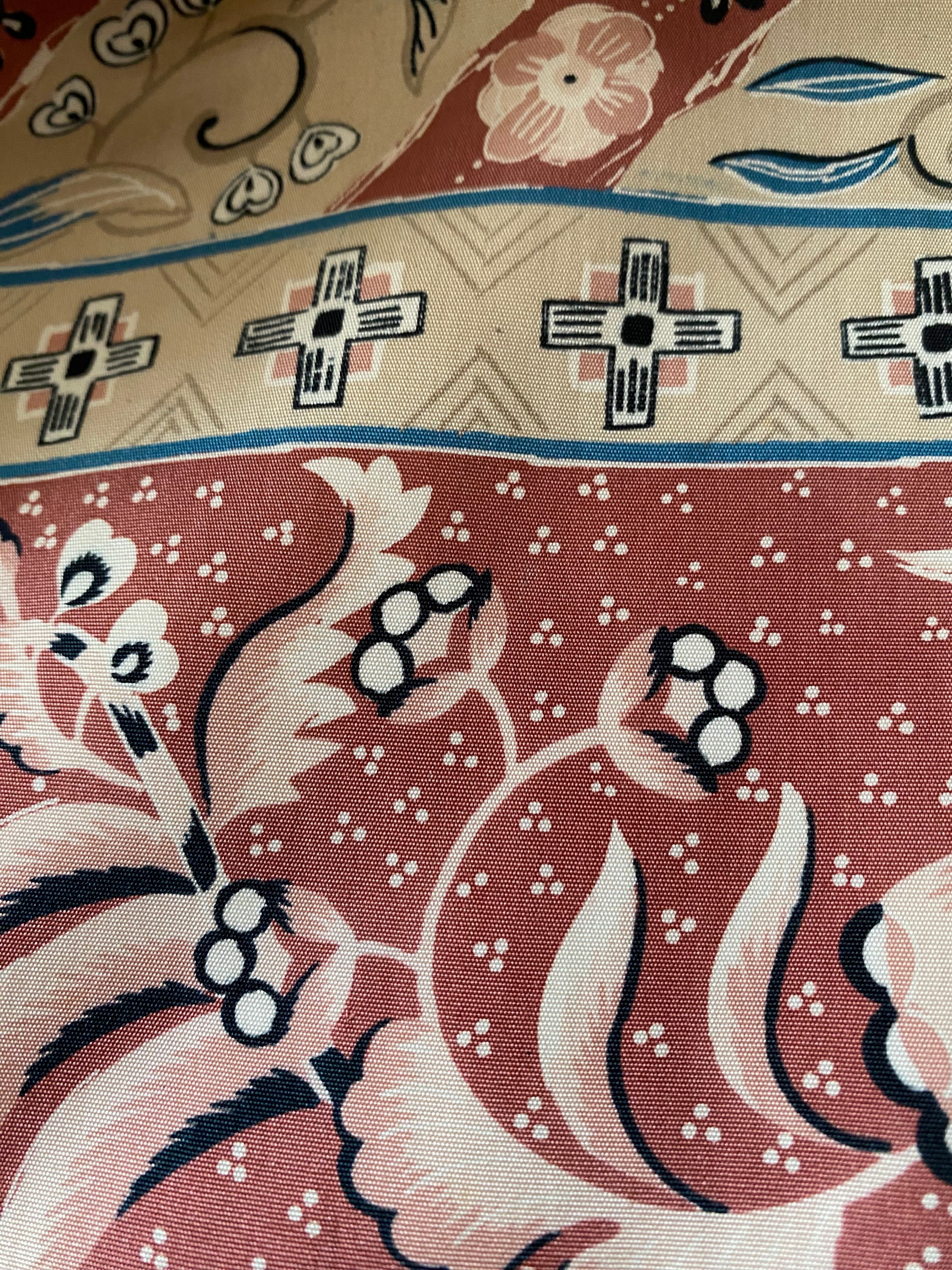 アンティーク 染め 更紗紋様 昼夜帯 名古屋帯 ピンク水色系