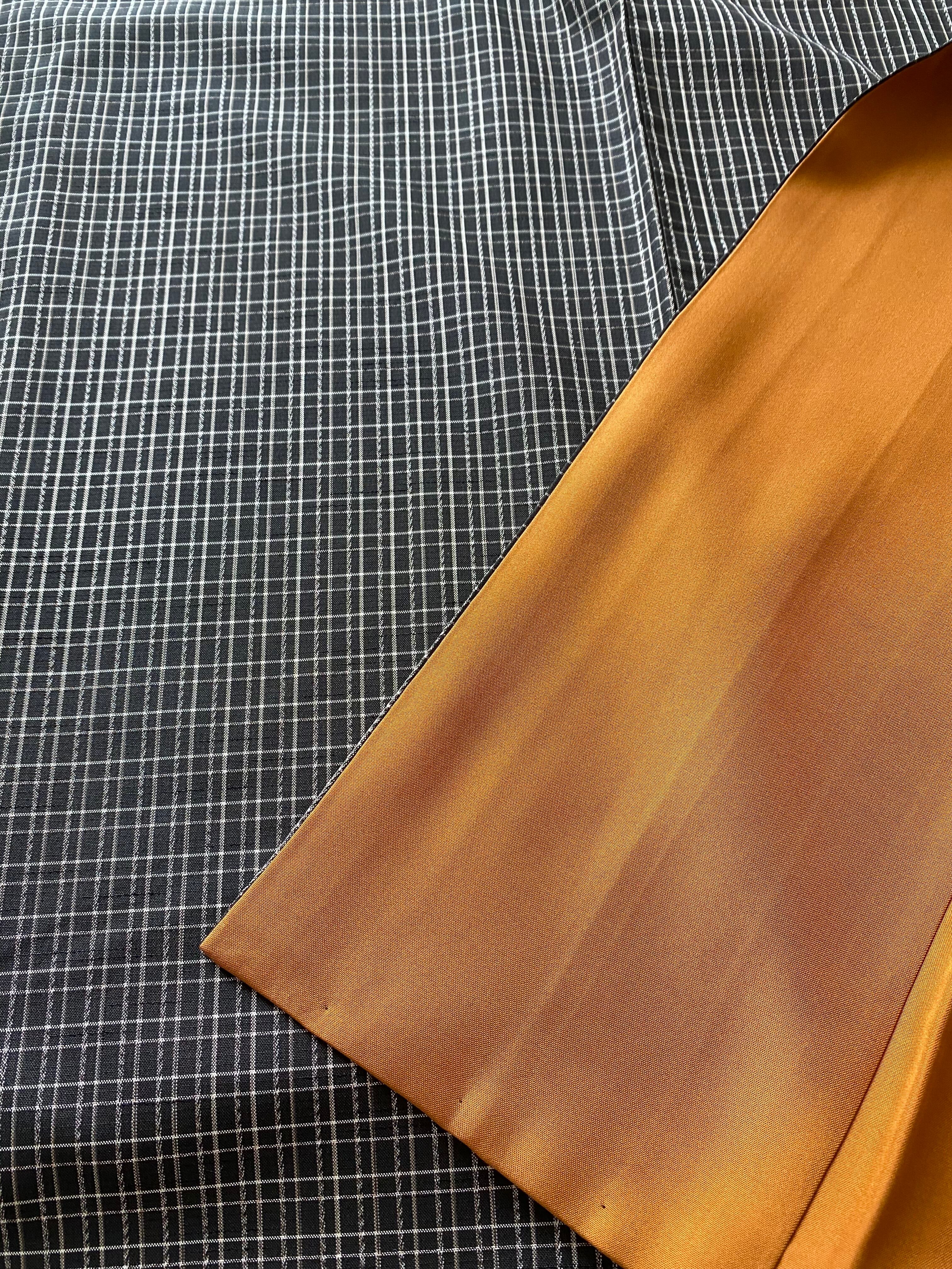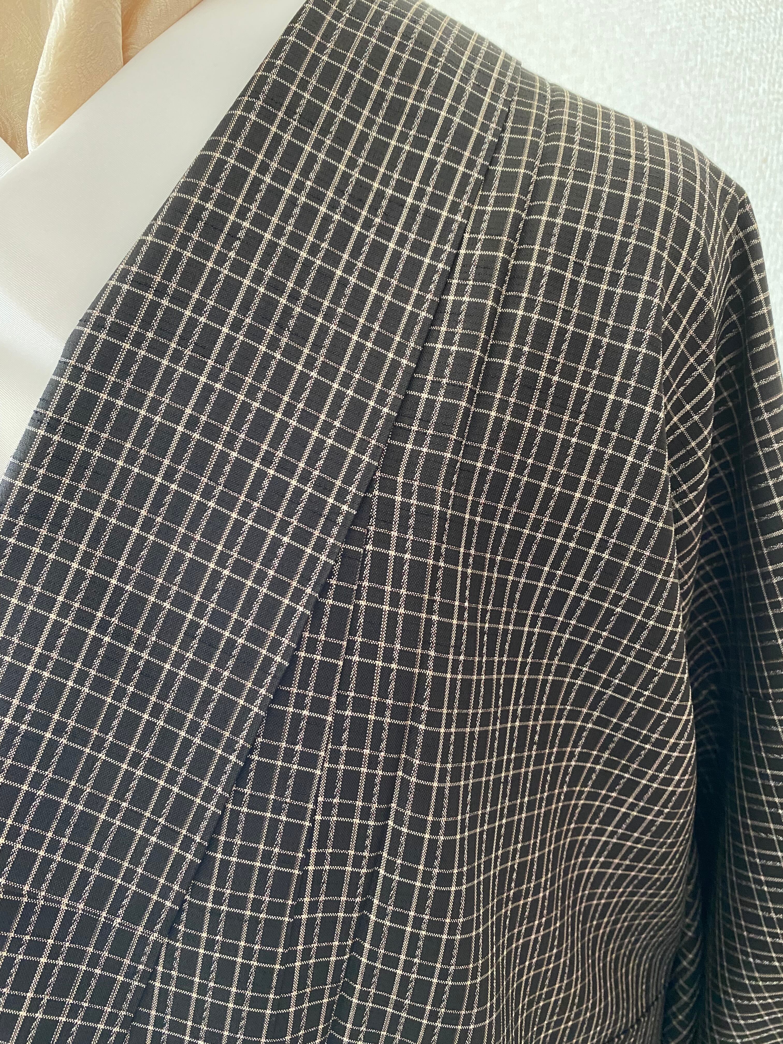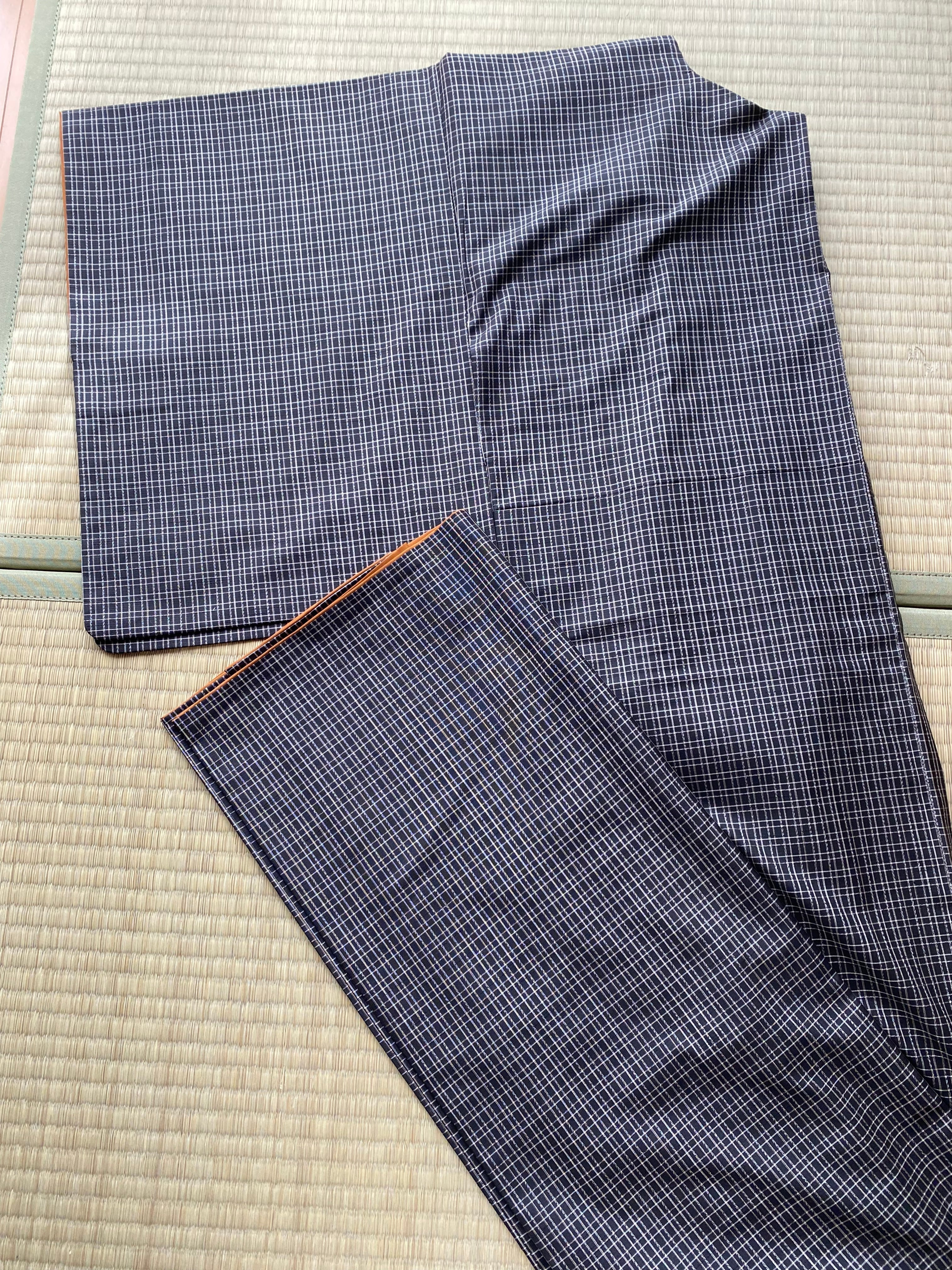 小さな織りの格子、つぶつぶ、ストライプの絣紋様です。