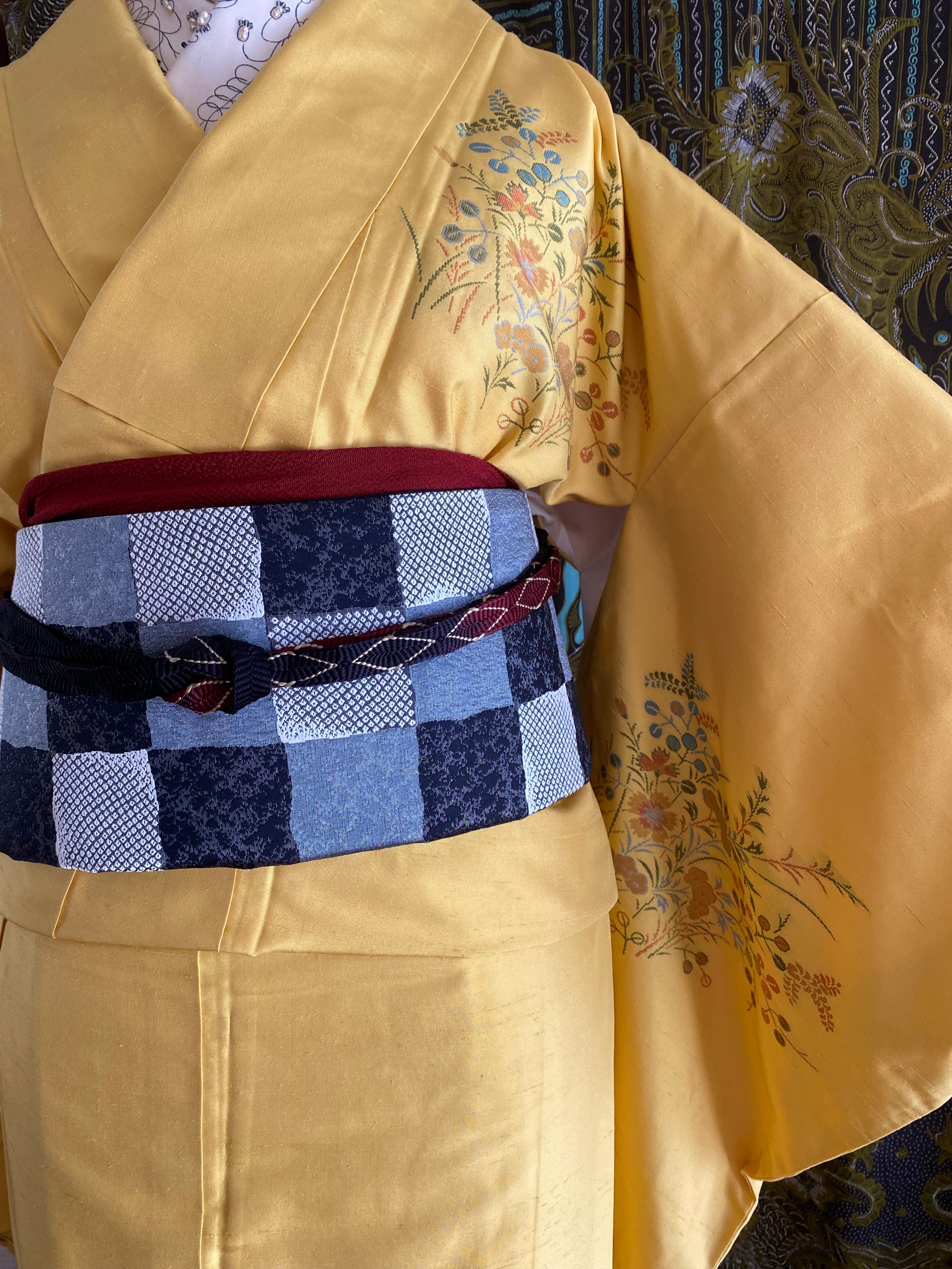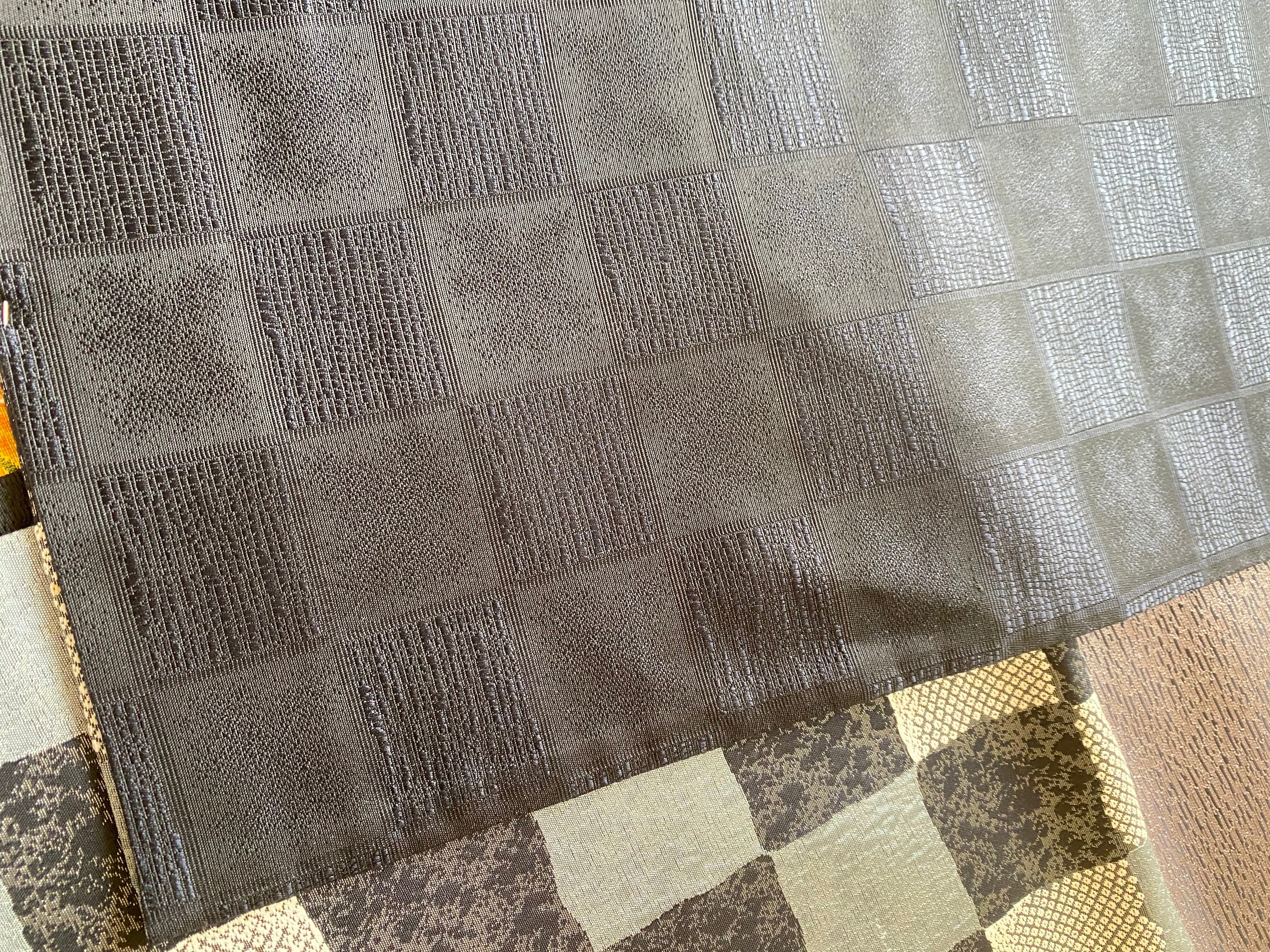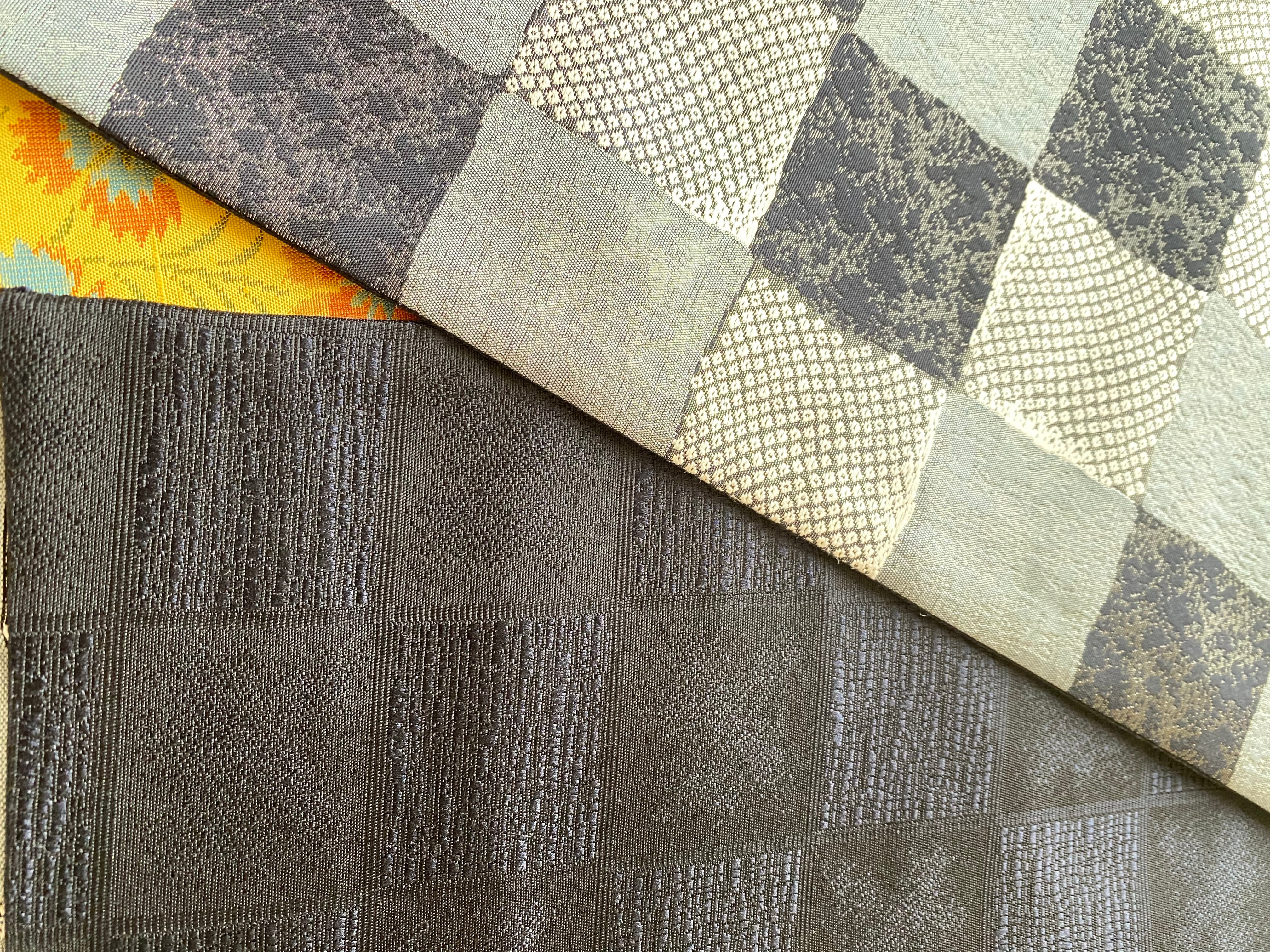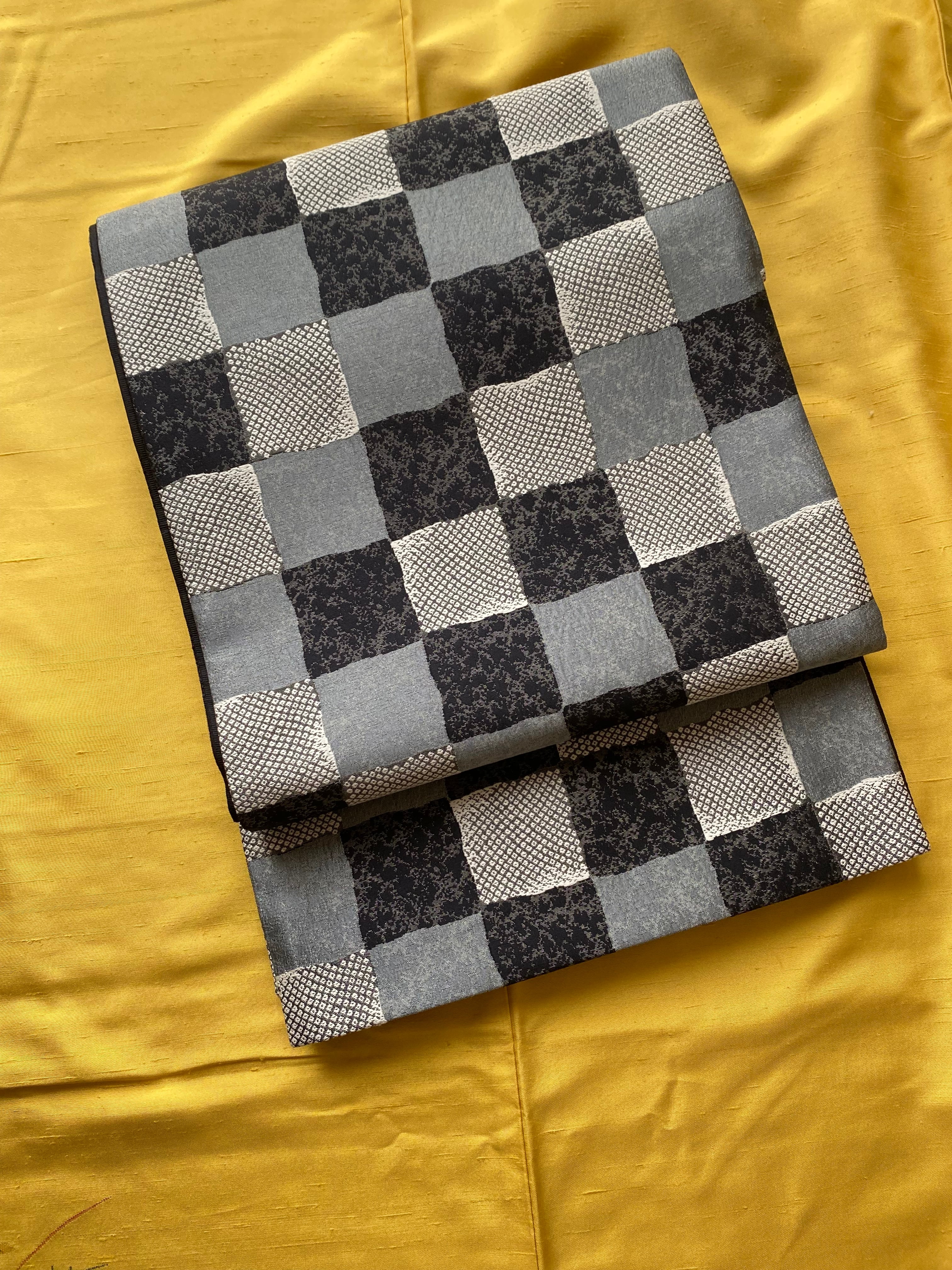 市松紋様が粋ですっきりとしたステキな六通袋帯です。