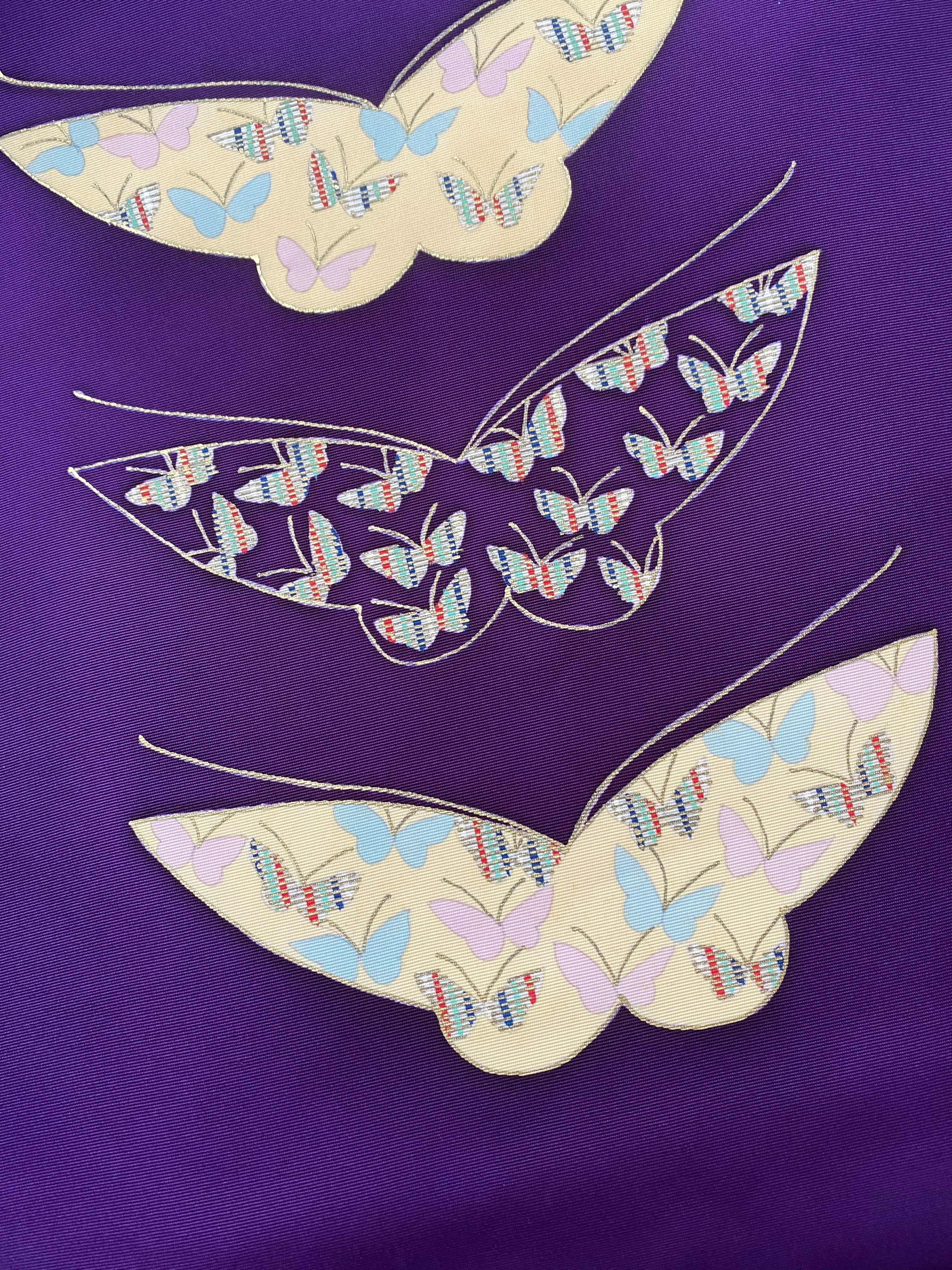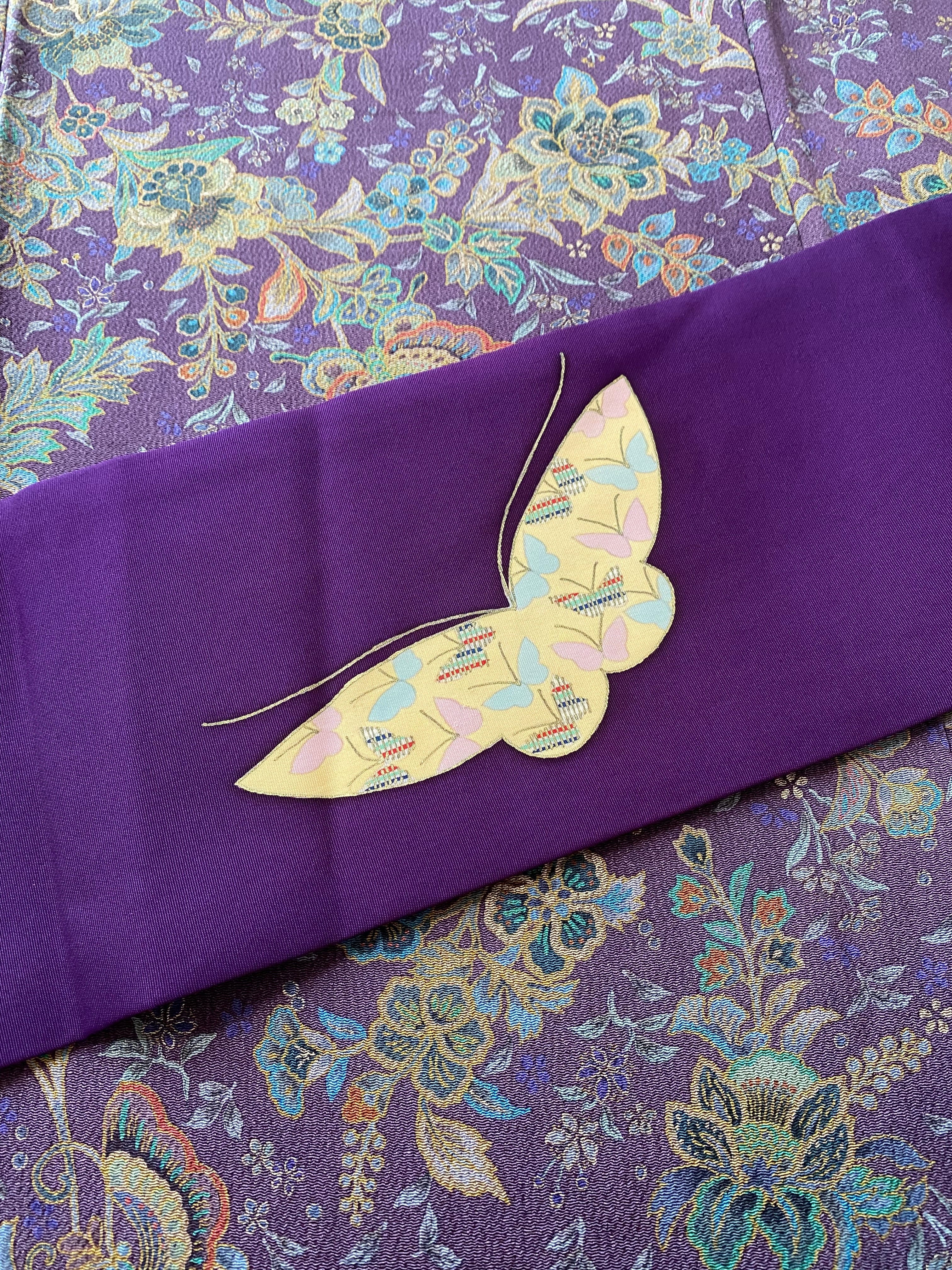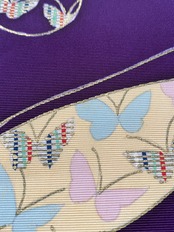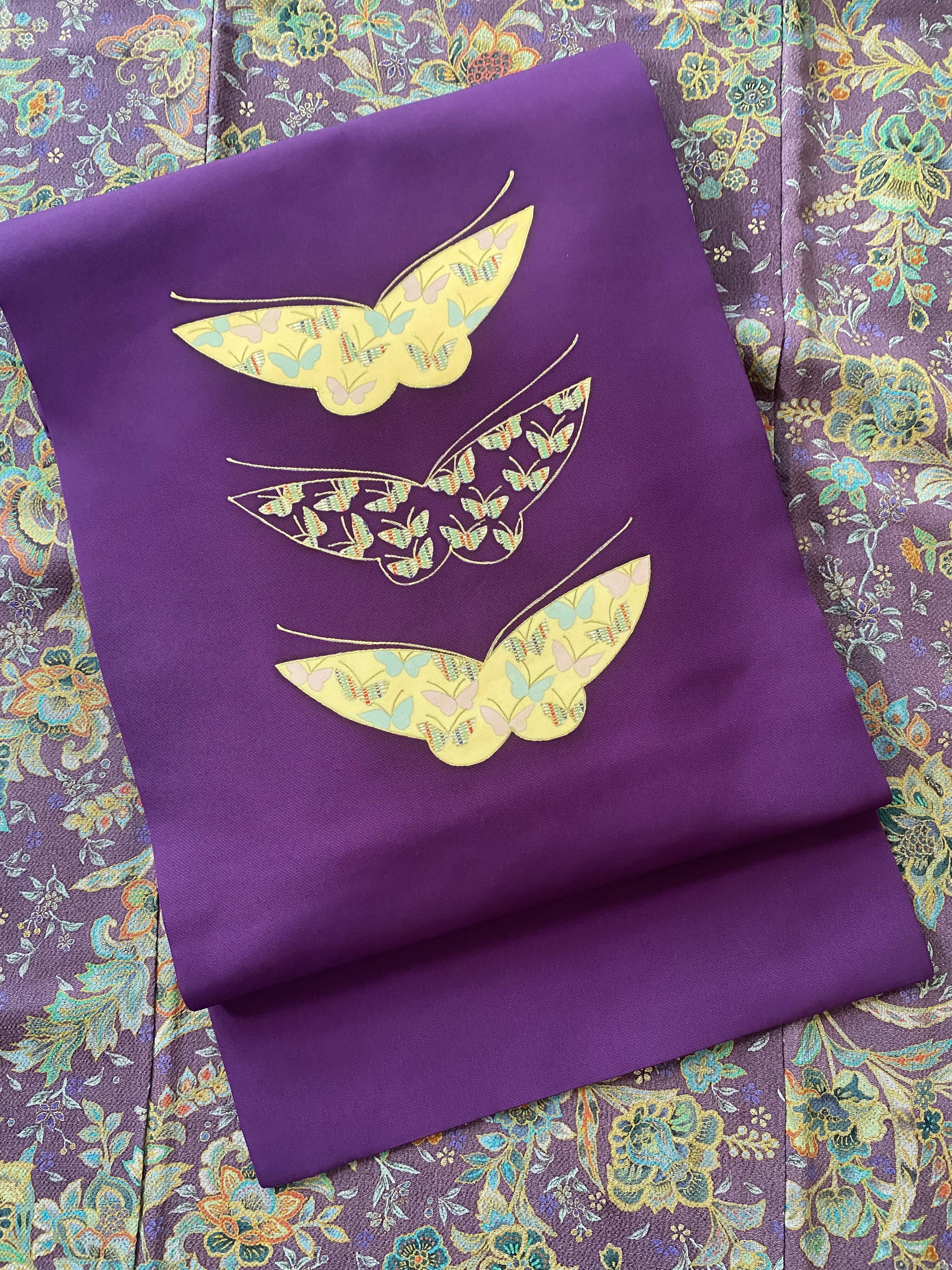 塩瀬の染め帯 紫 蝶々に小さな蝶々