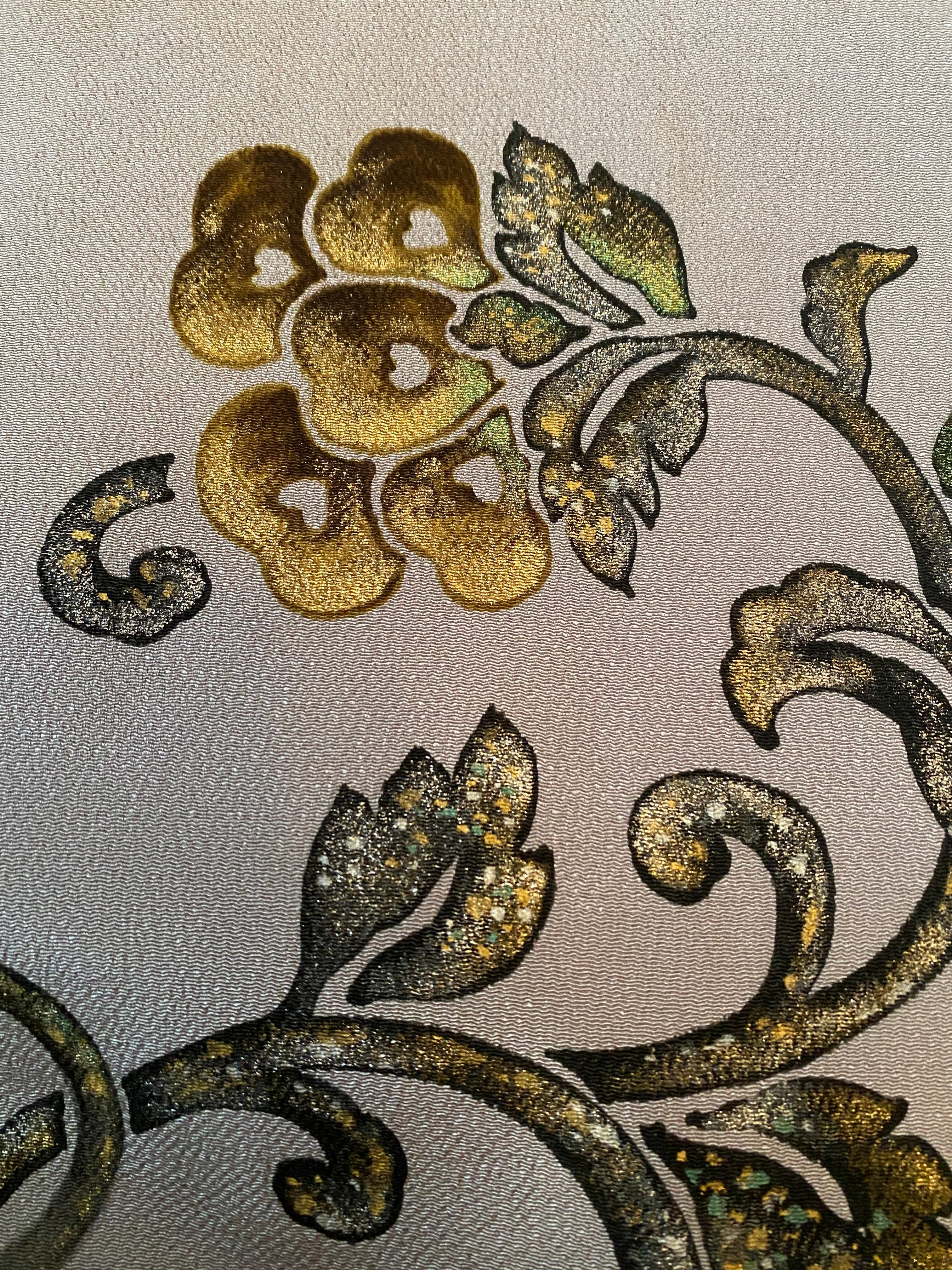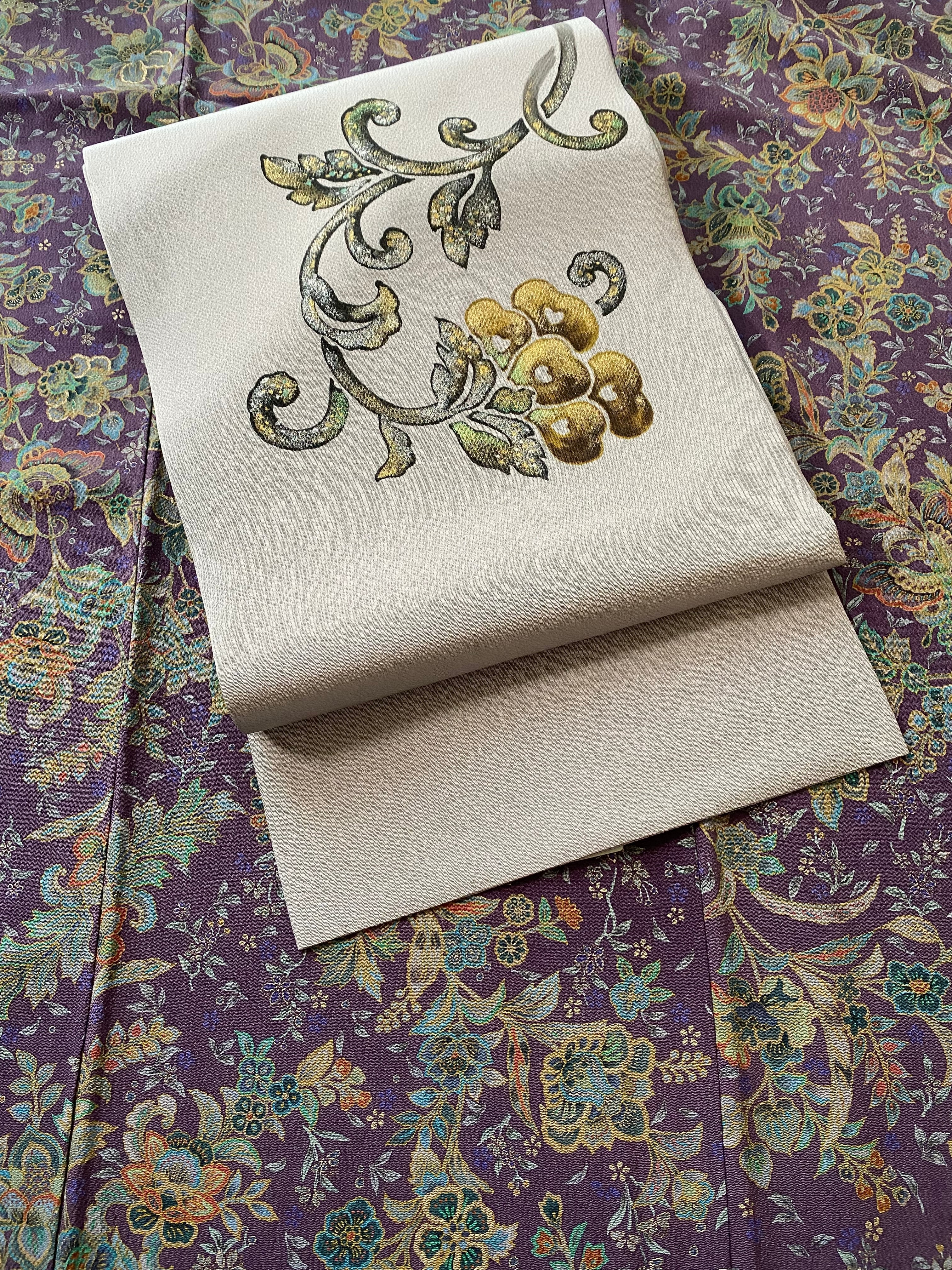 ヨシエ・イナバ ブランド 縮緬 グレー更紗花 シック帯