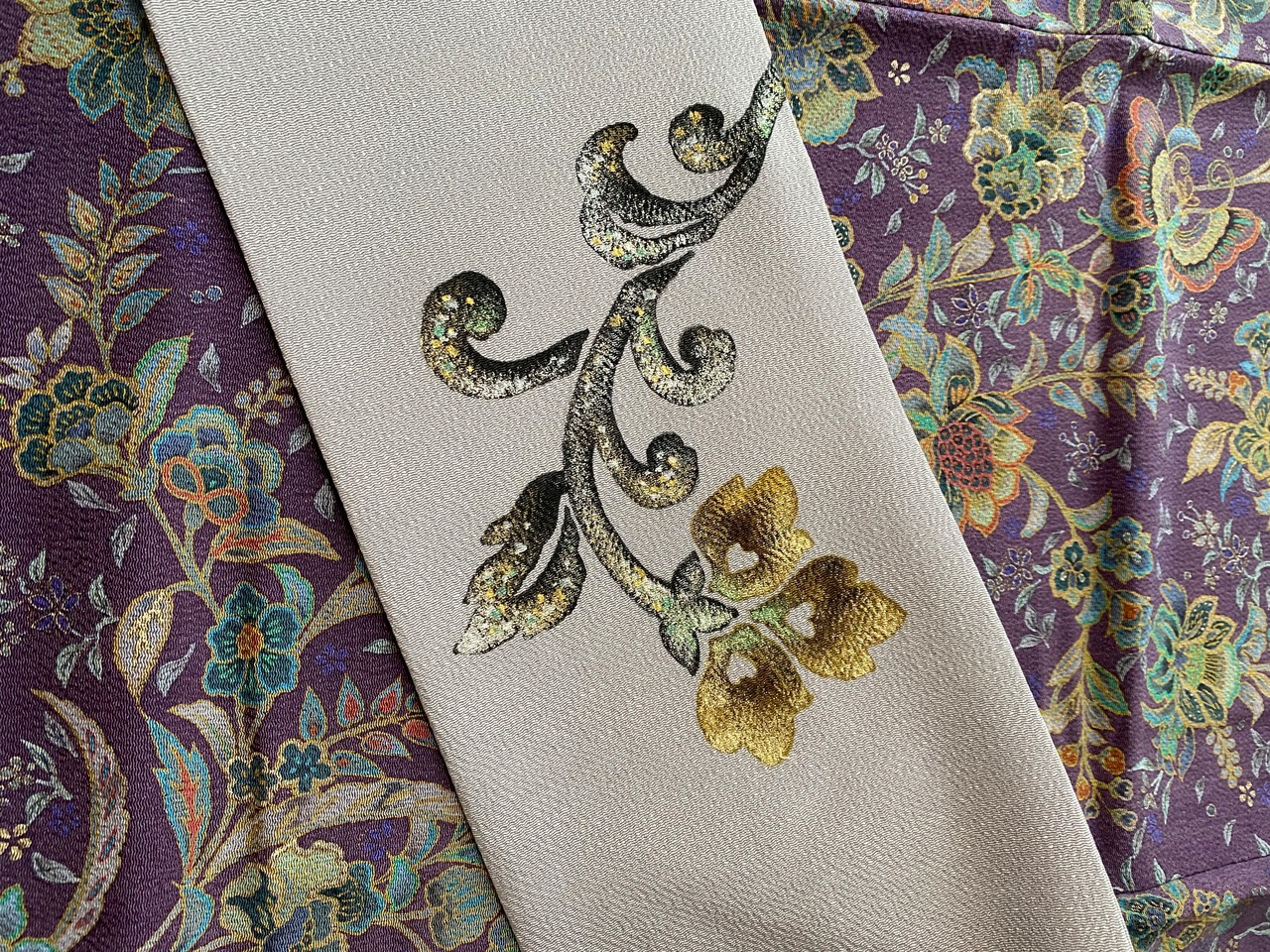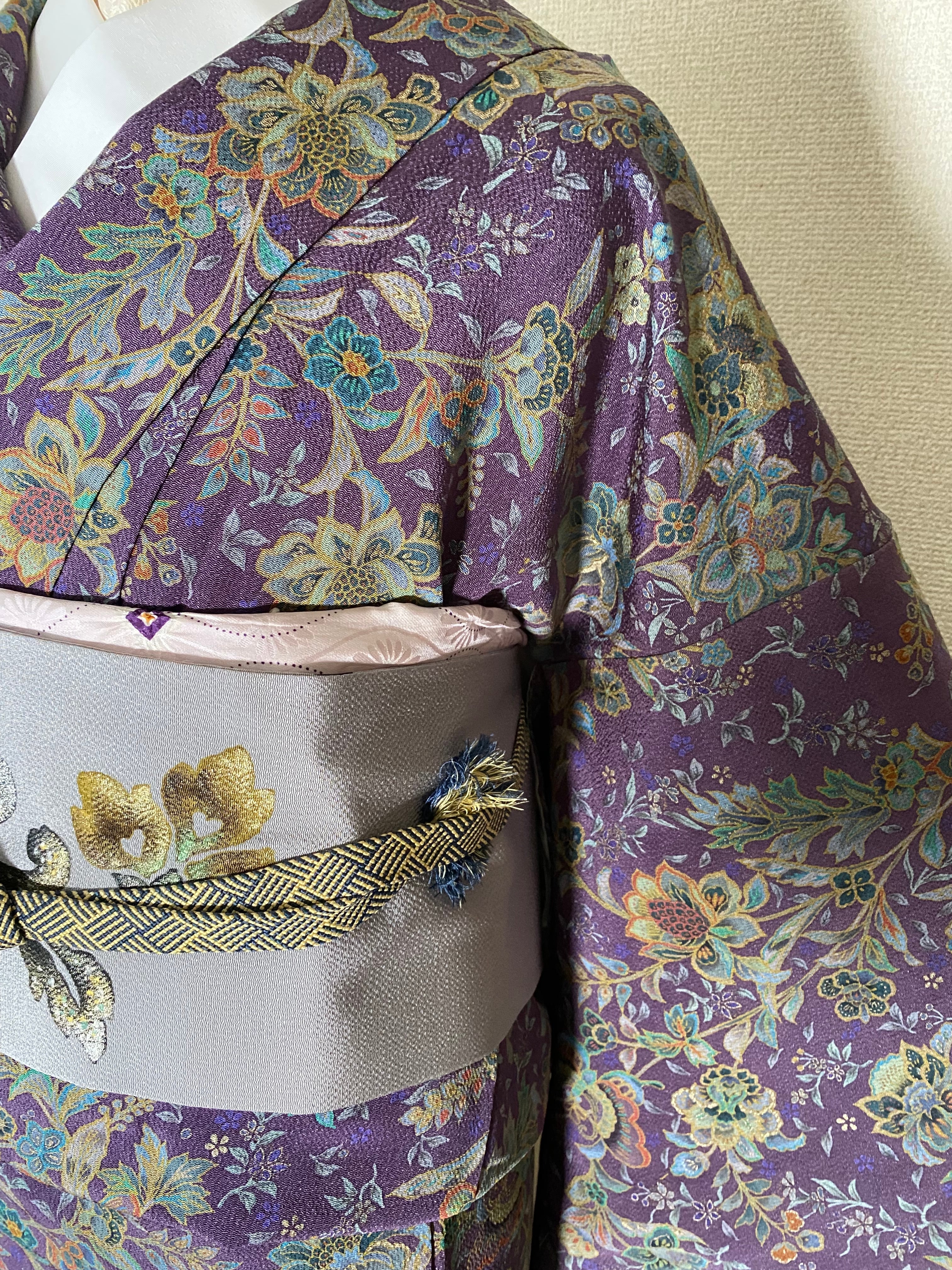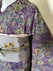 地色のグレーはいろいろなおキモノに合うステキなお色味。