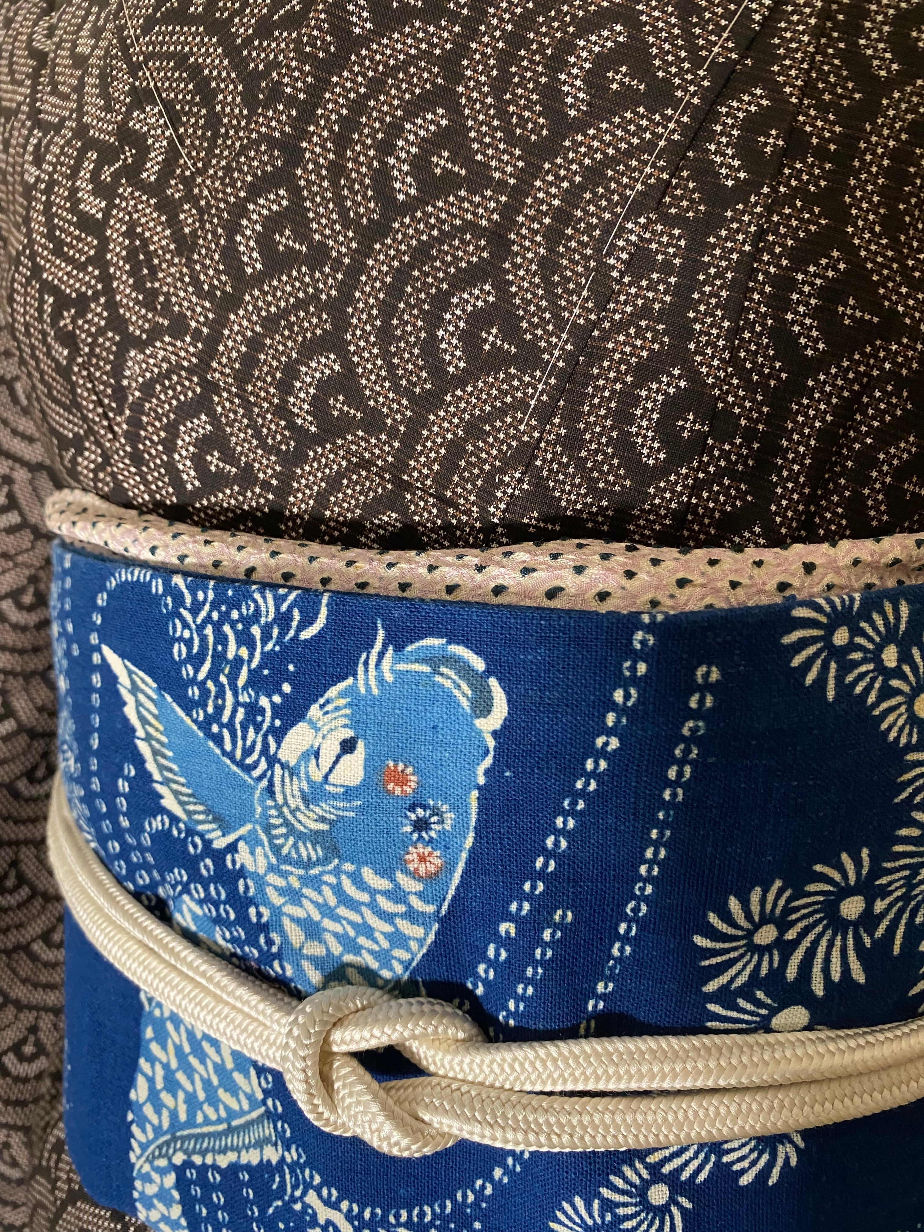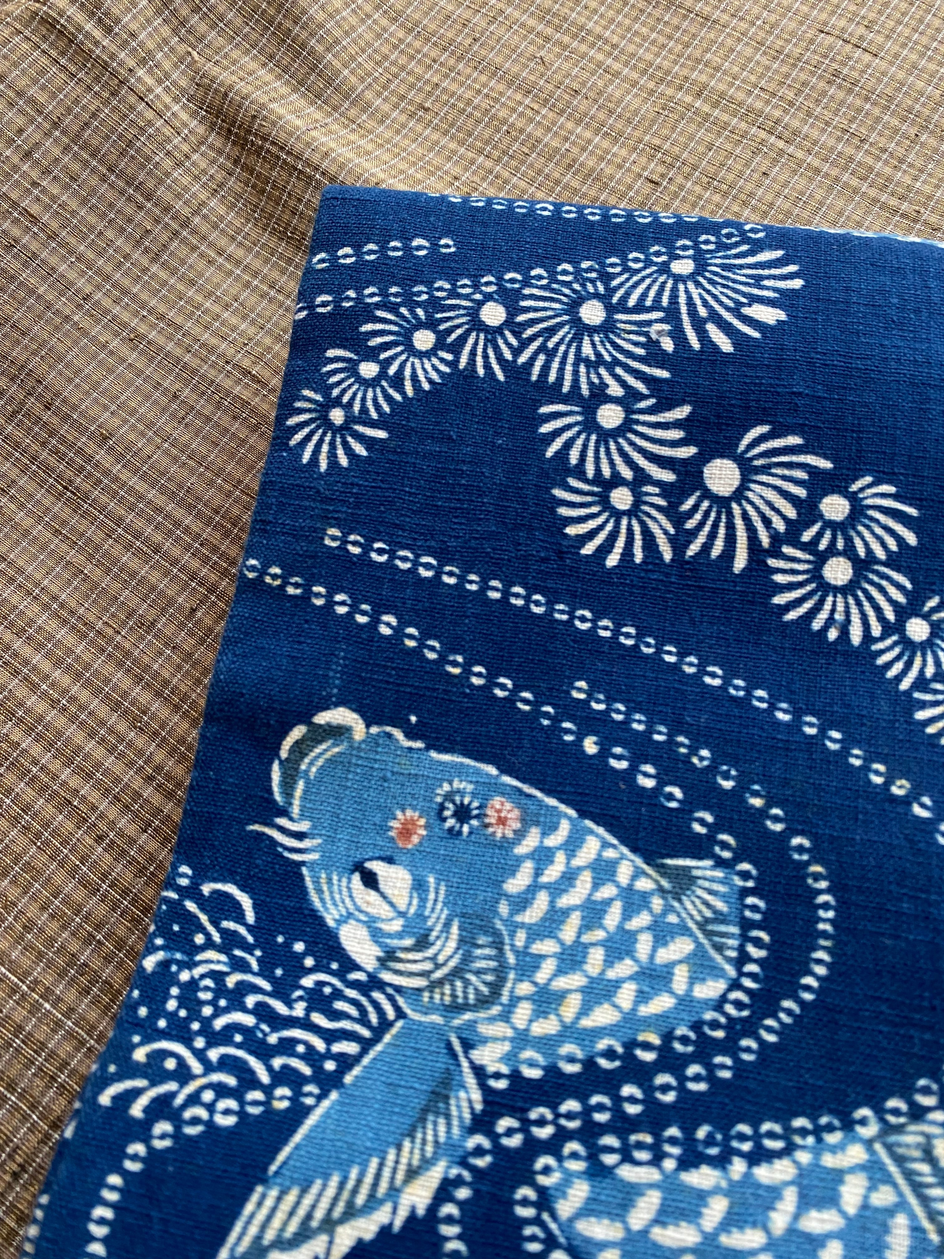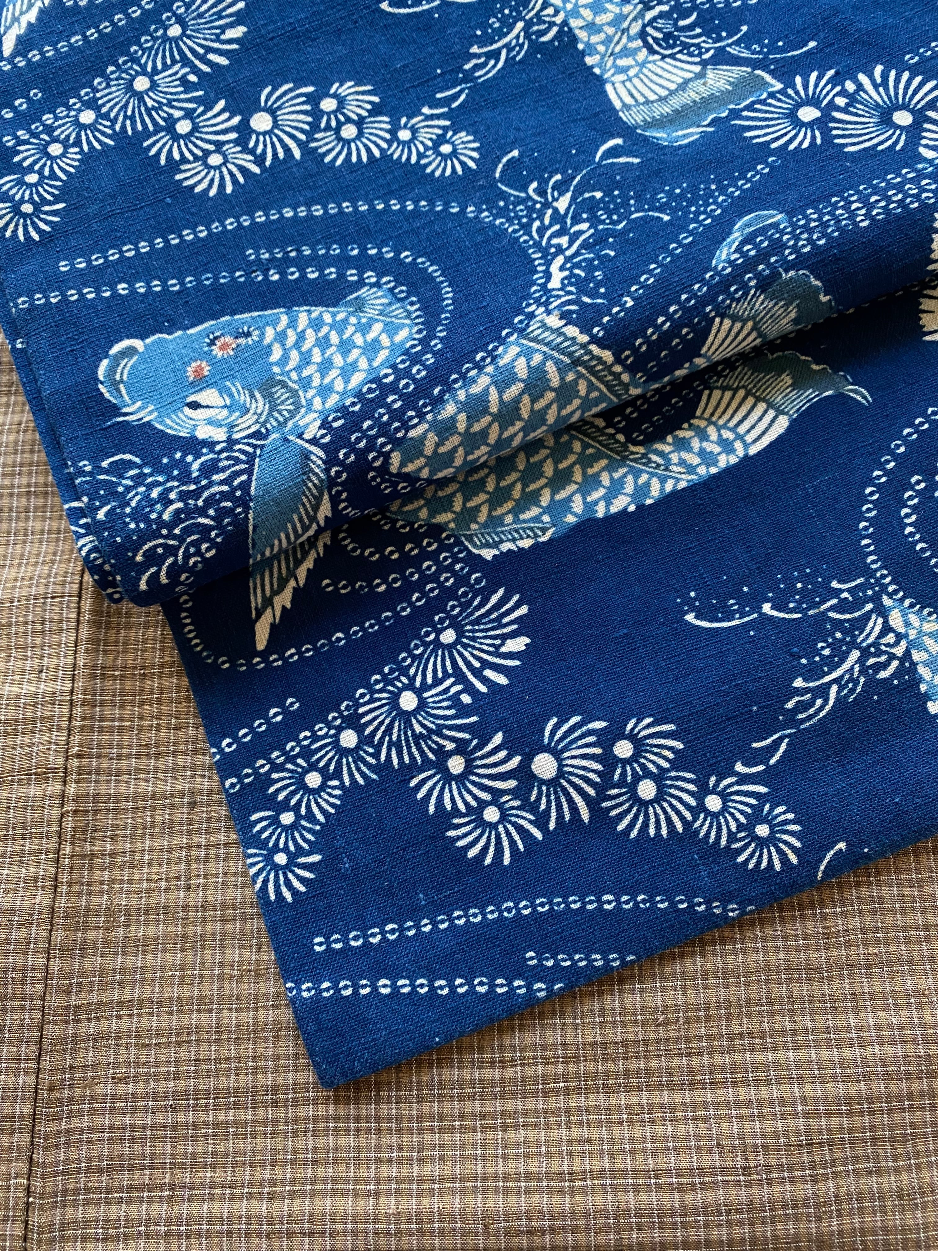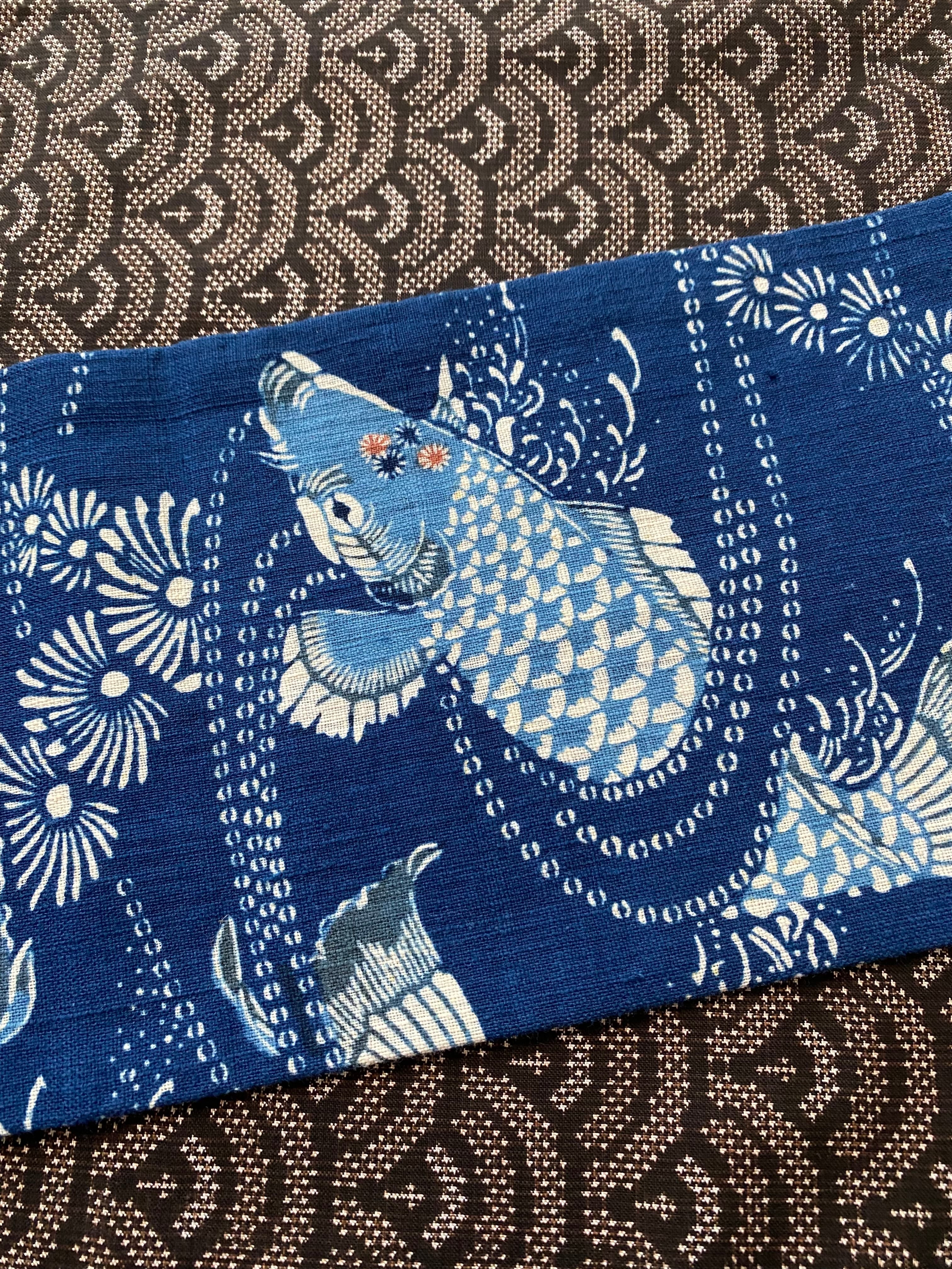 紺定 正藍型染め 田中昭夫 作品 鯉 名古屋帯