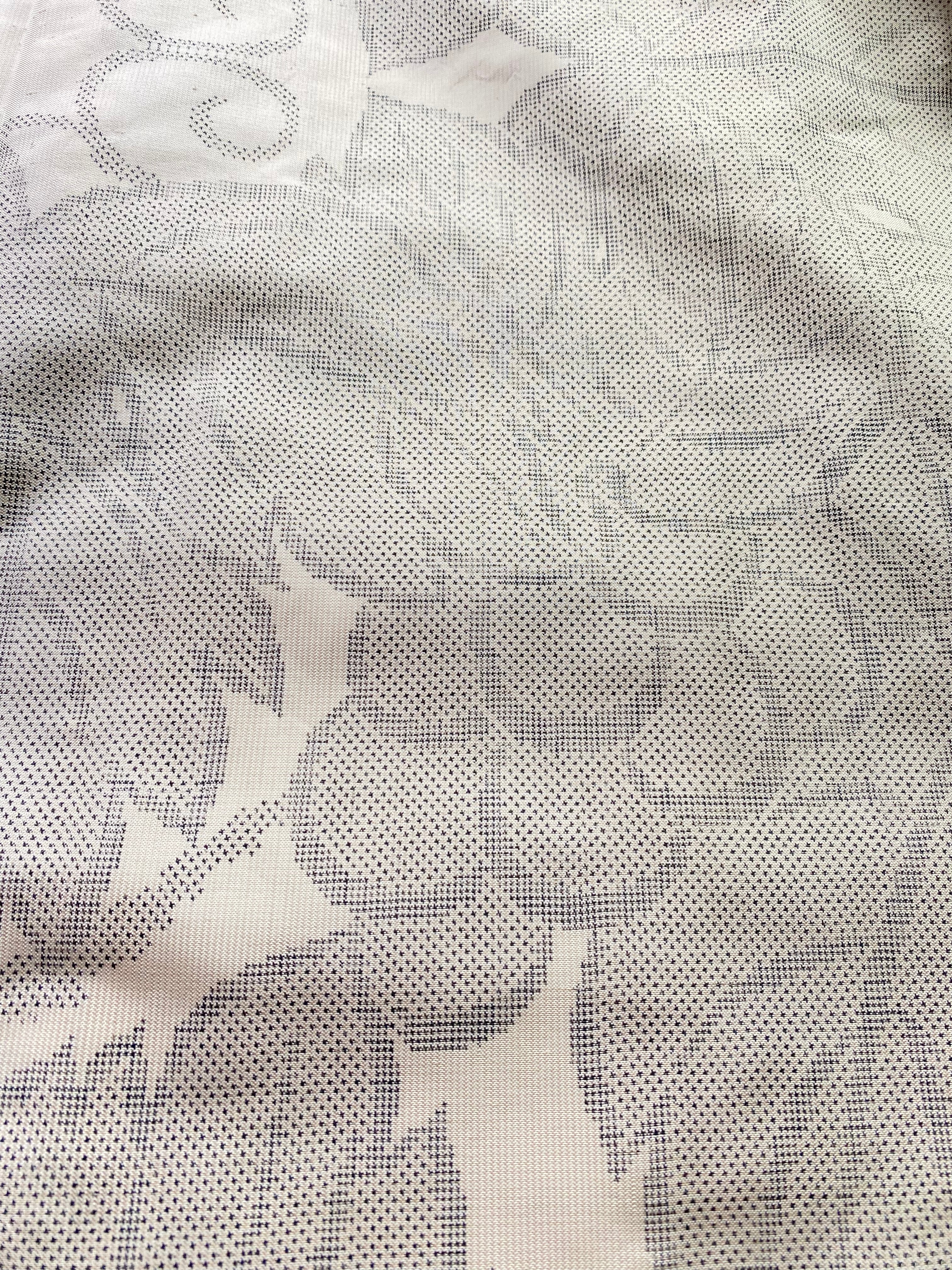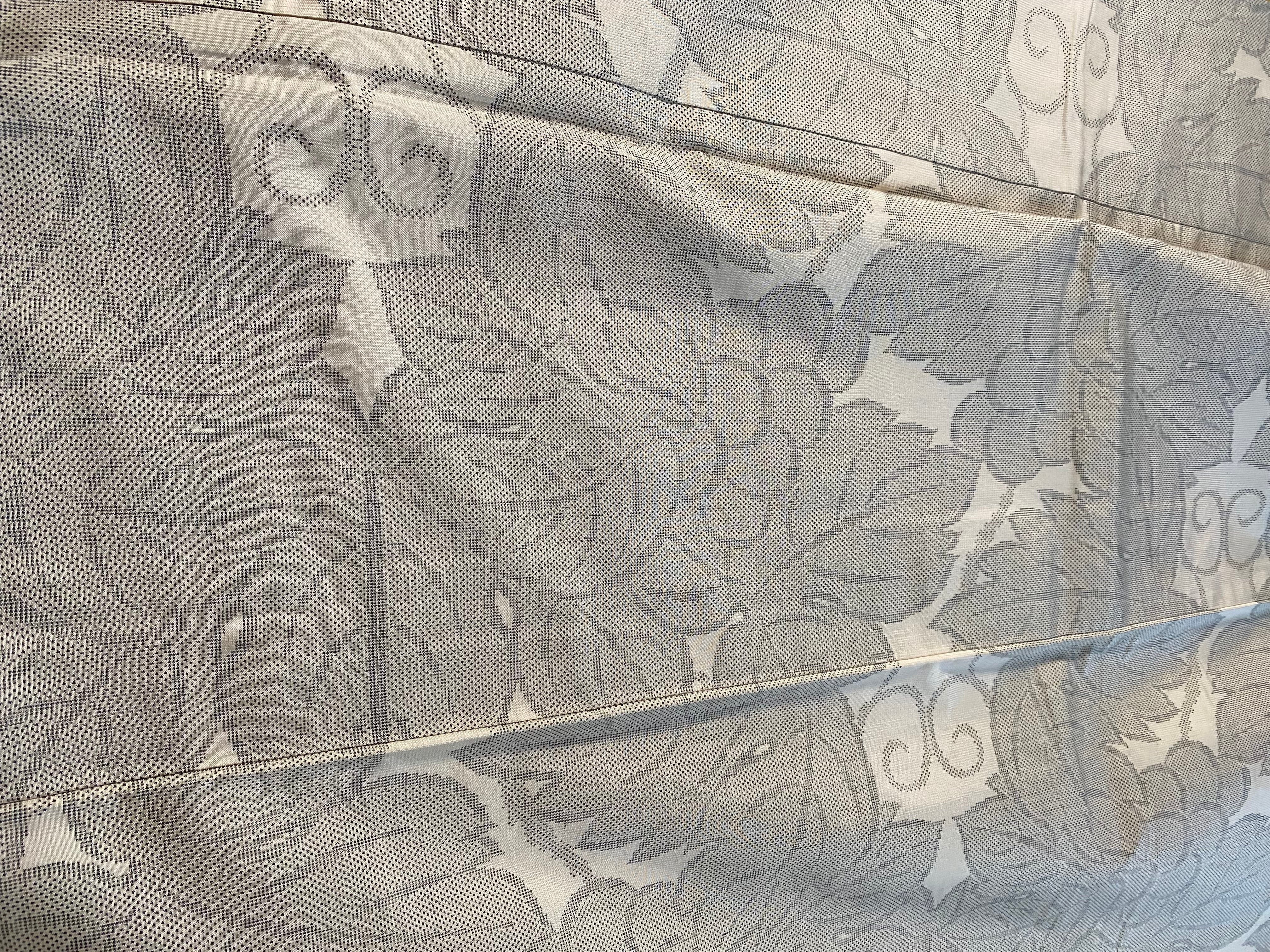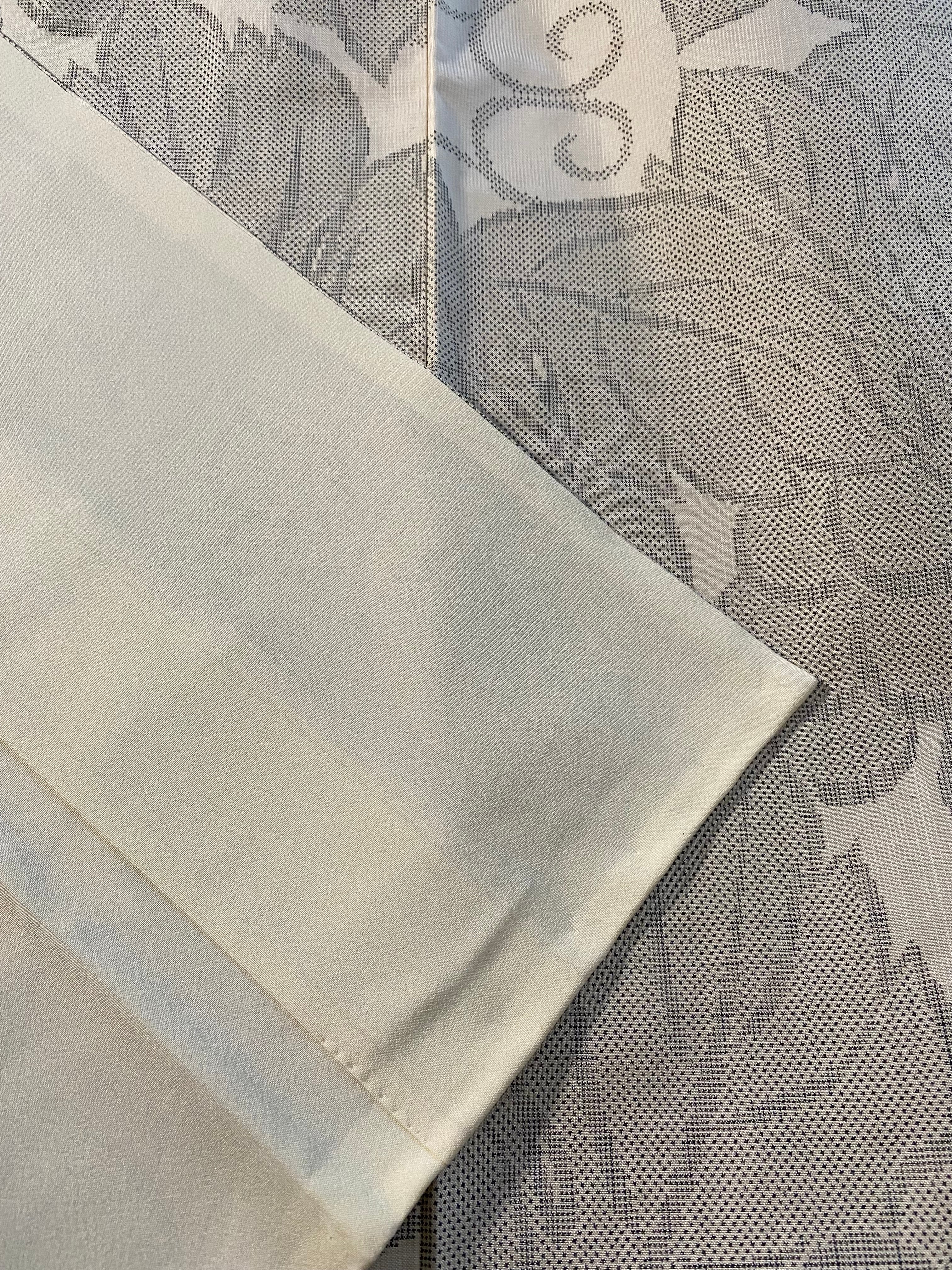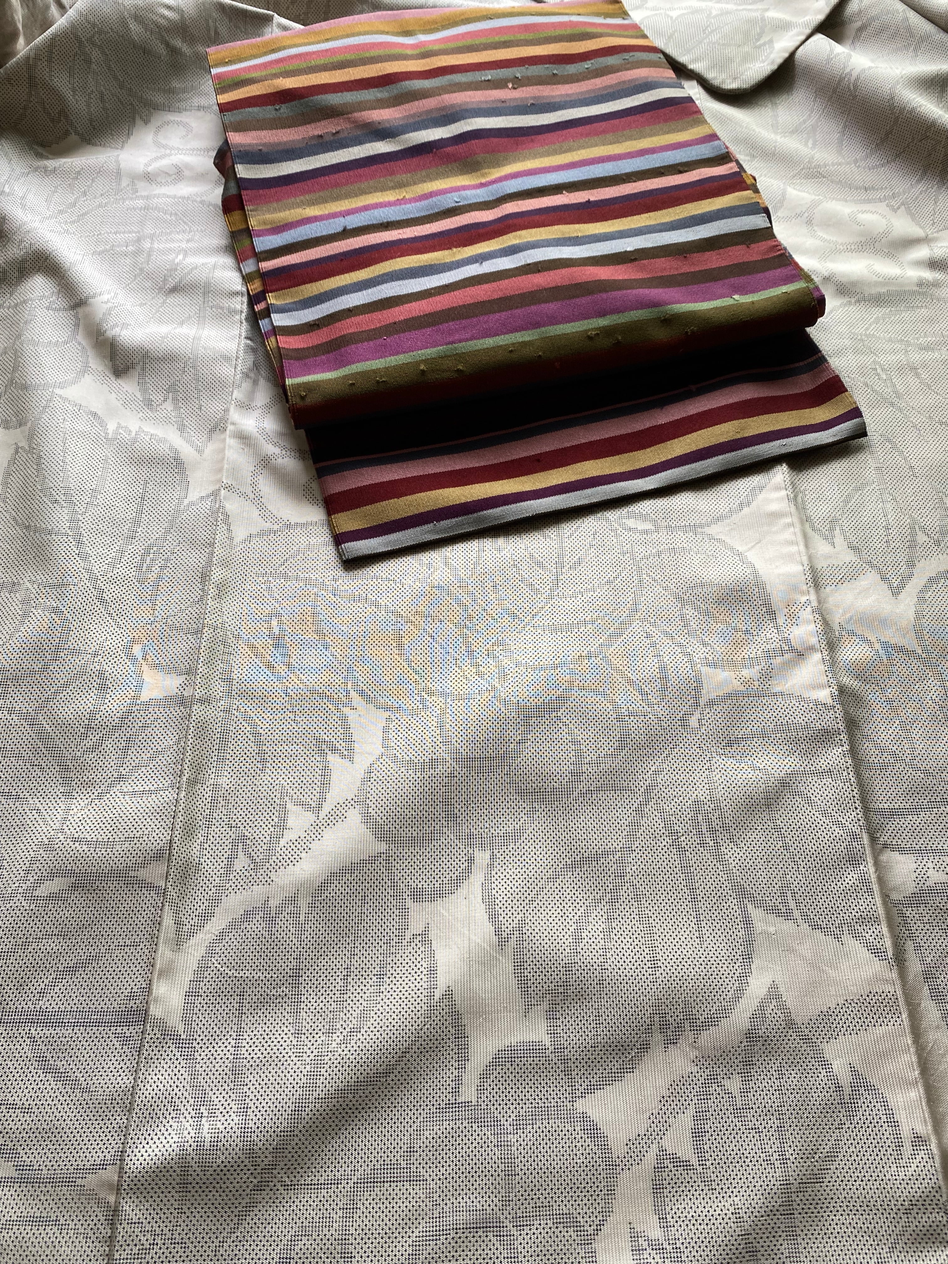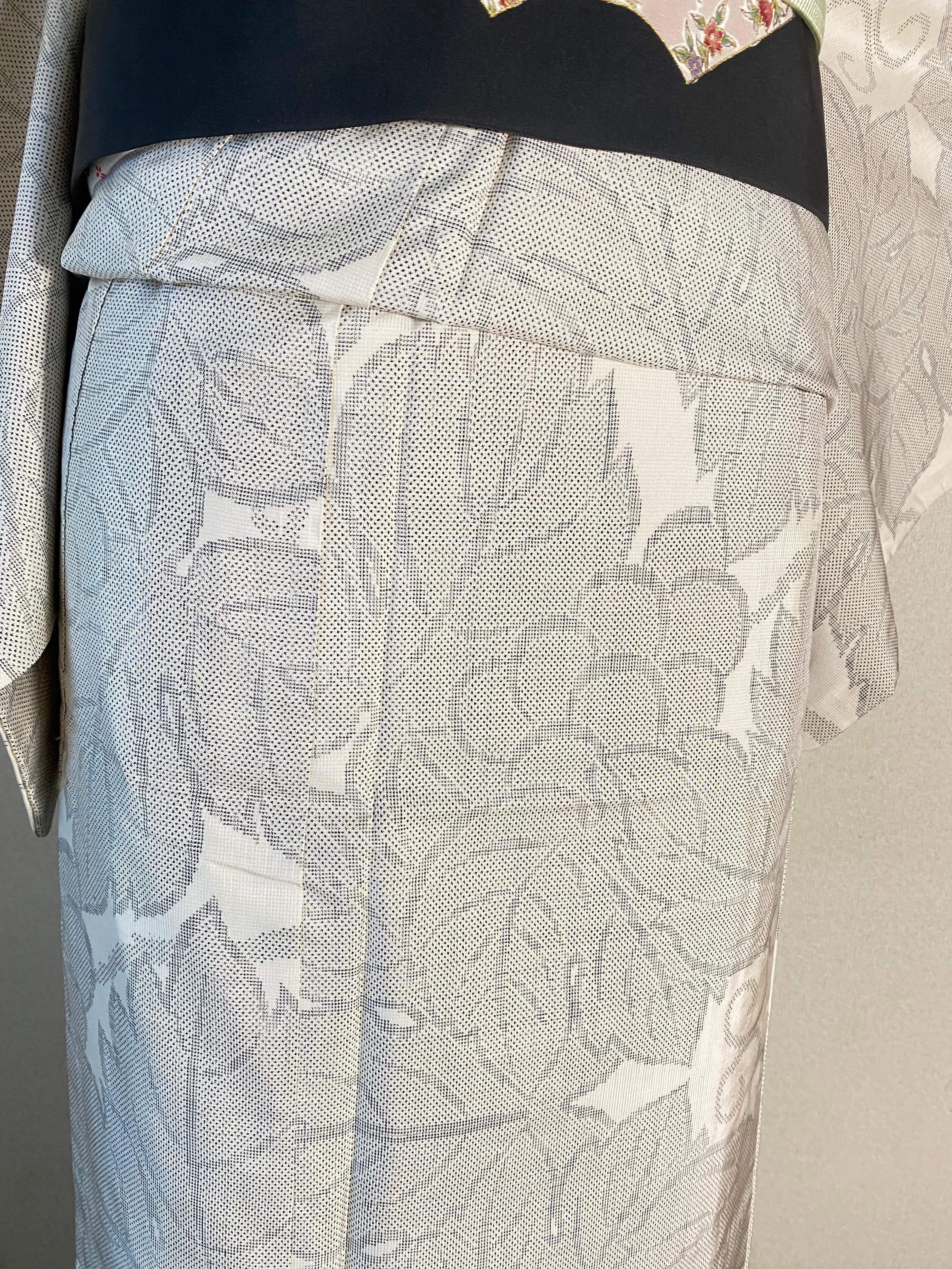 葡萄柄 光沢あり紬 白大島と思われる 白グレー