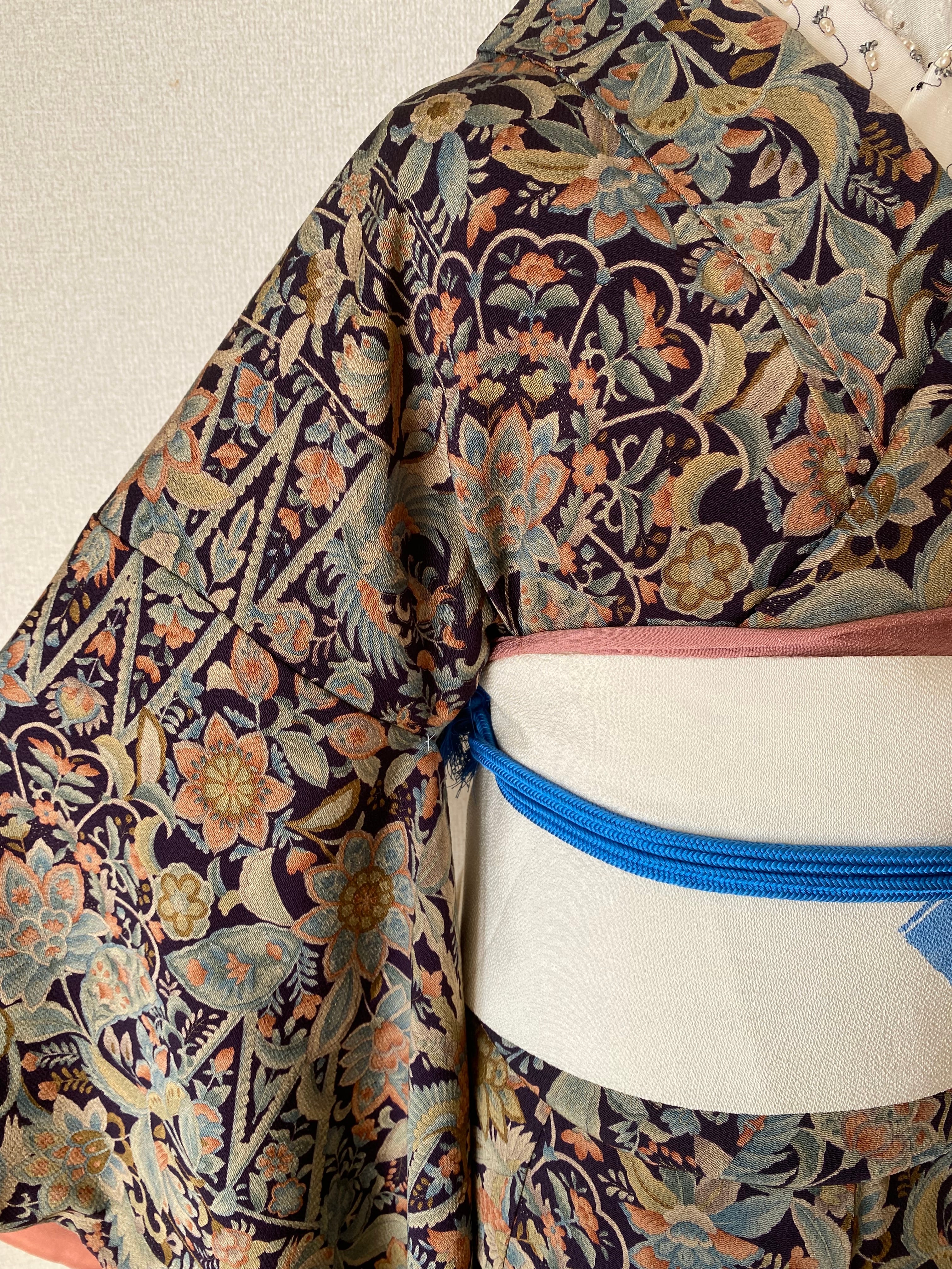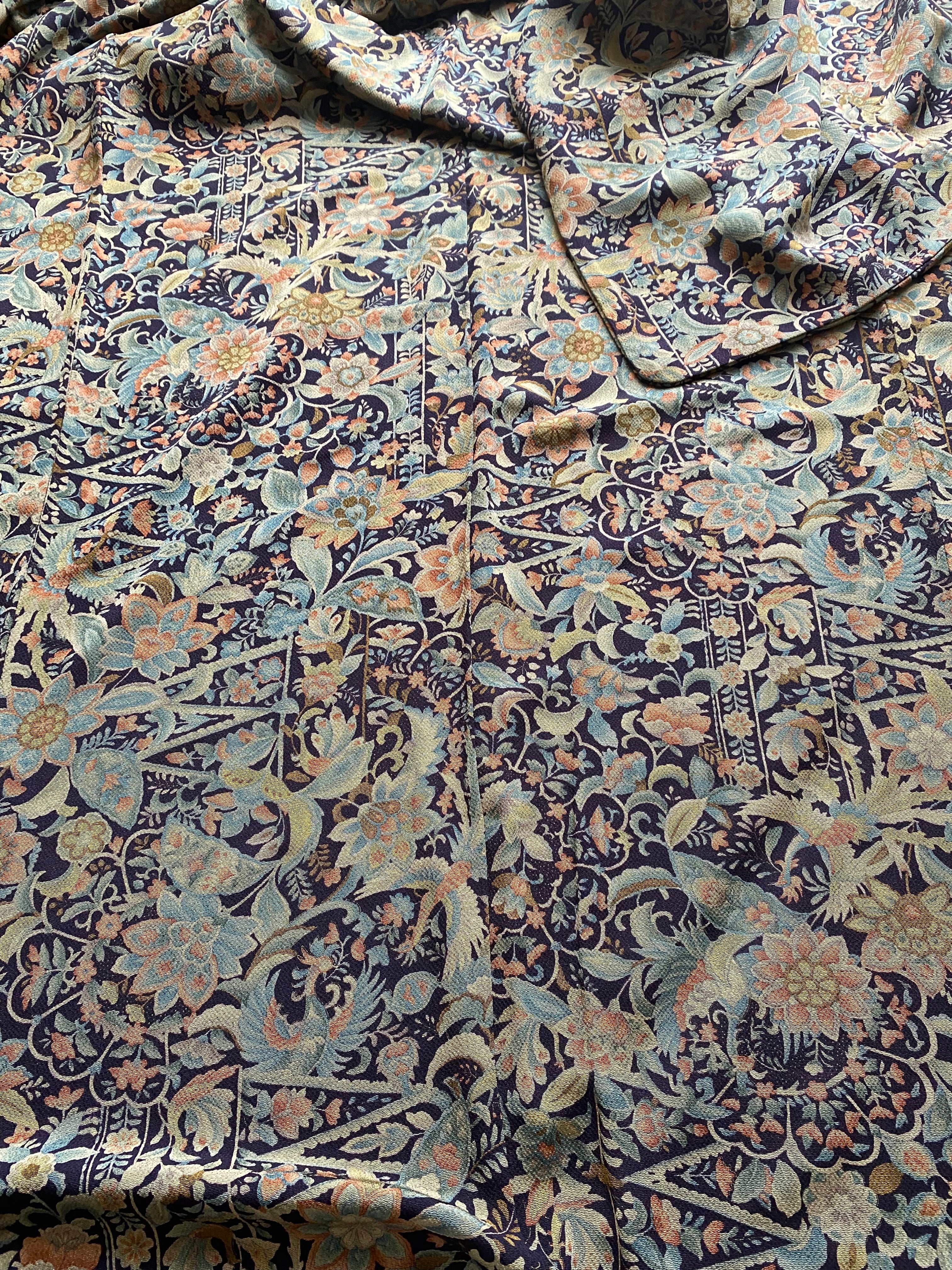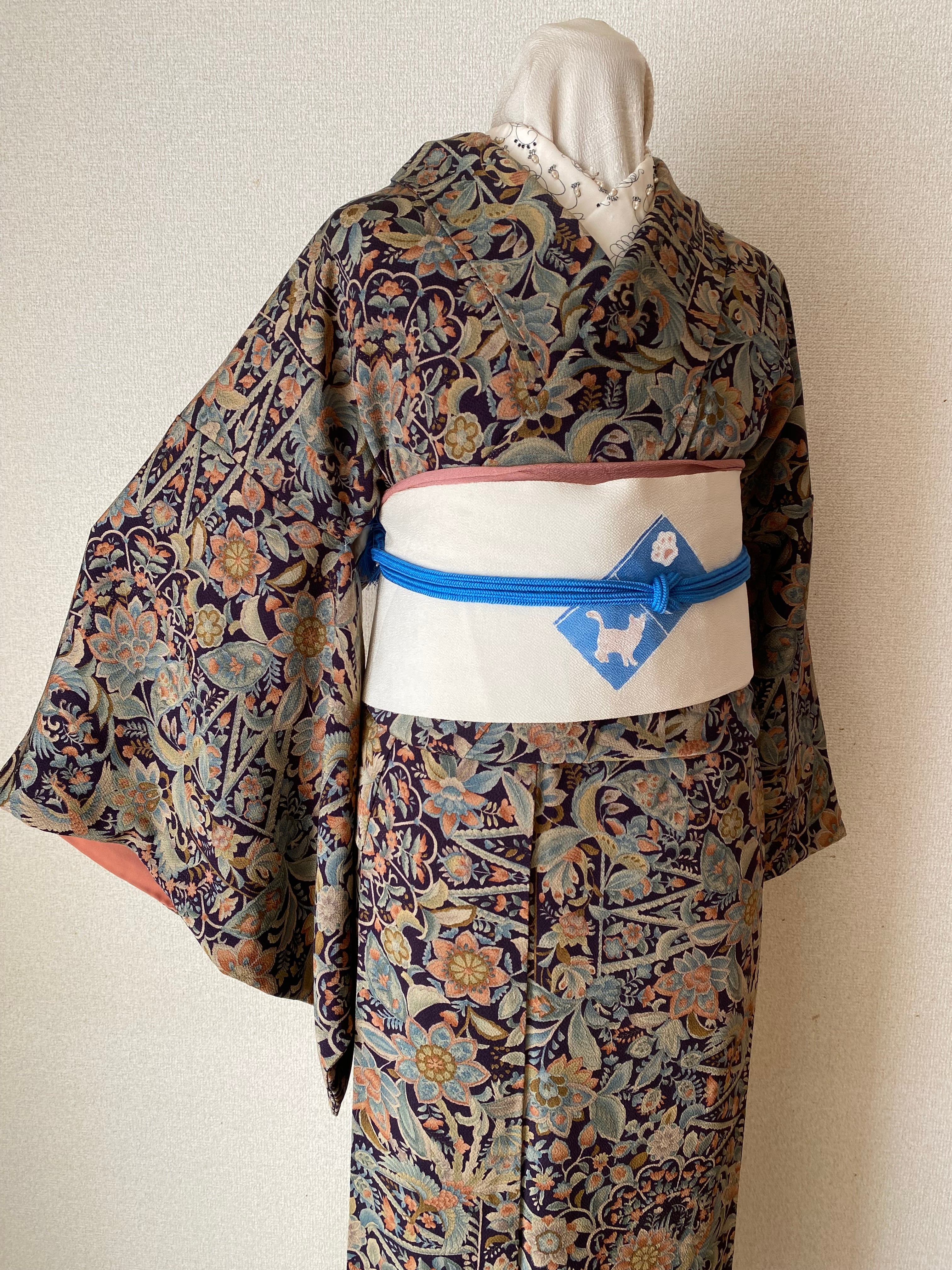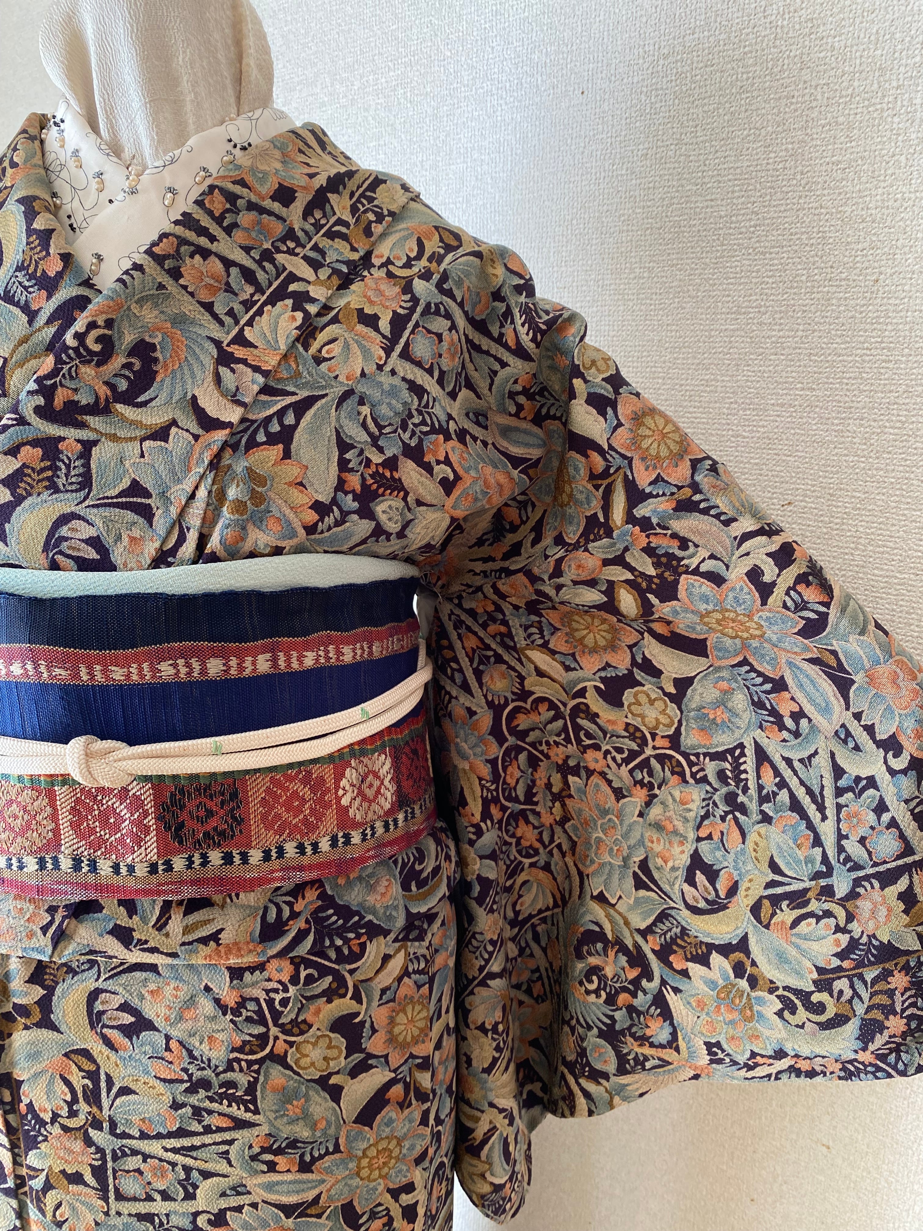 更紗 小物 花々鳥 黒に近い濃紺 シックな色味