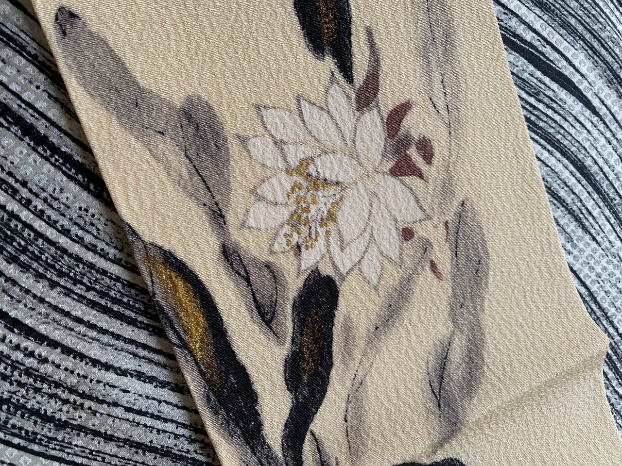 地色は生成りと玉子色のあいだあたり。
