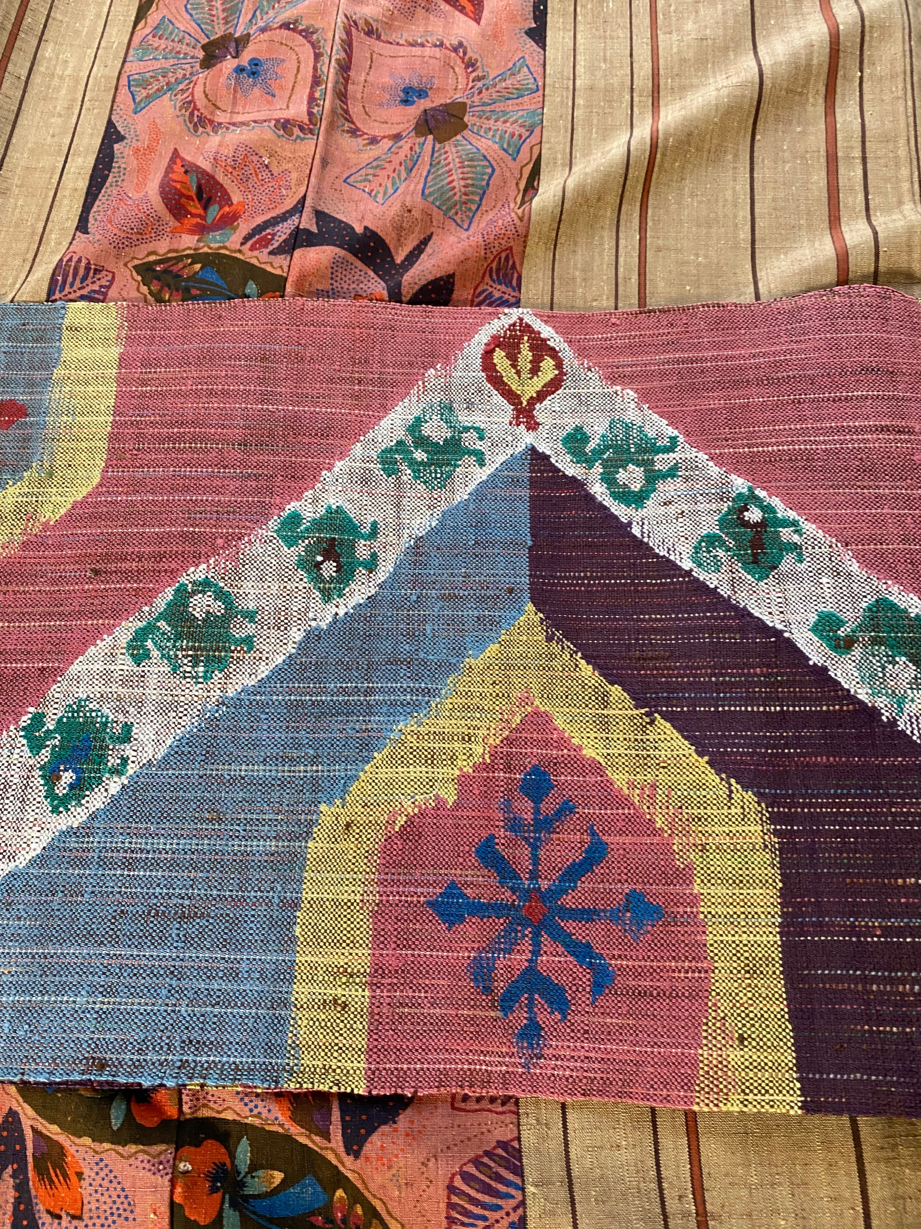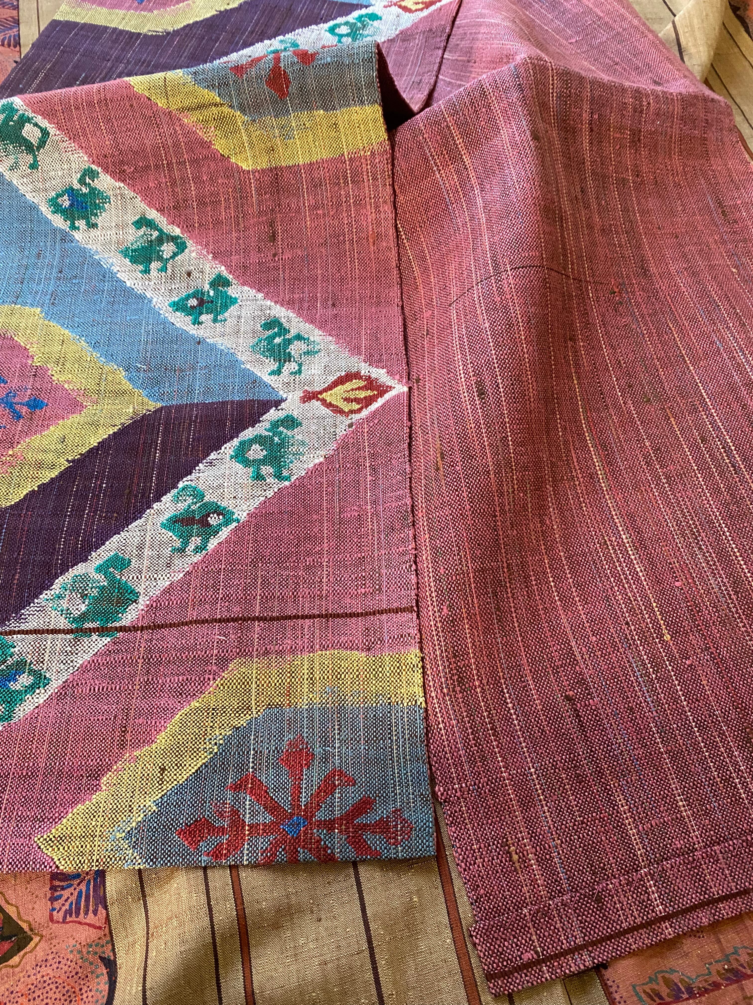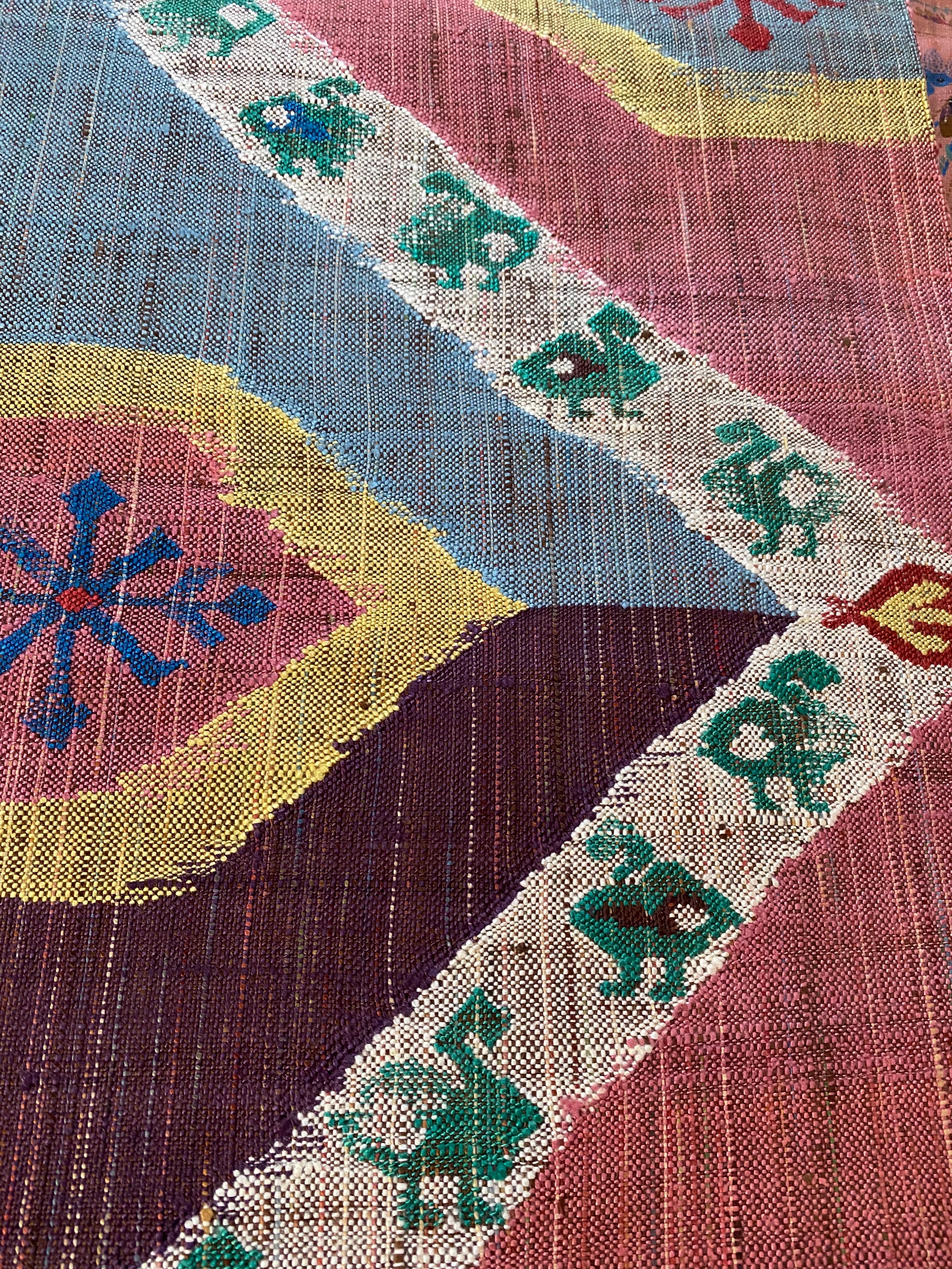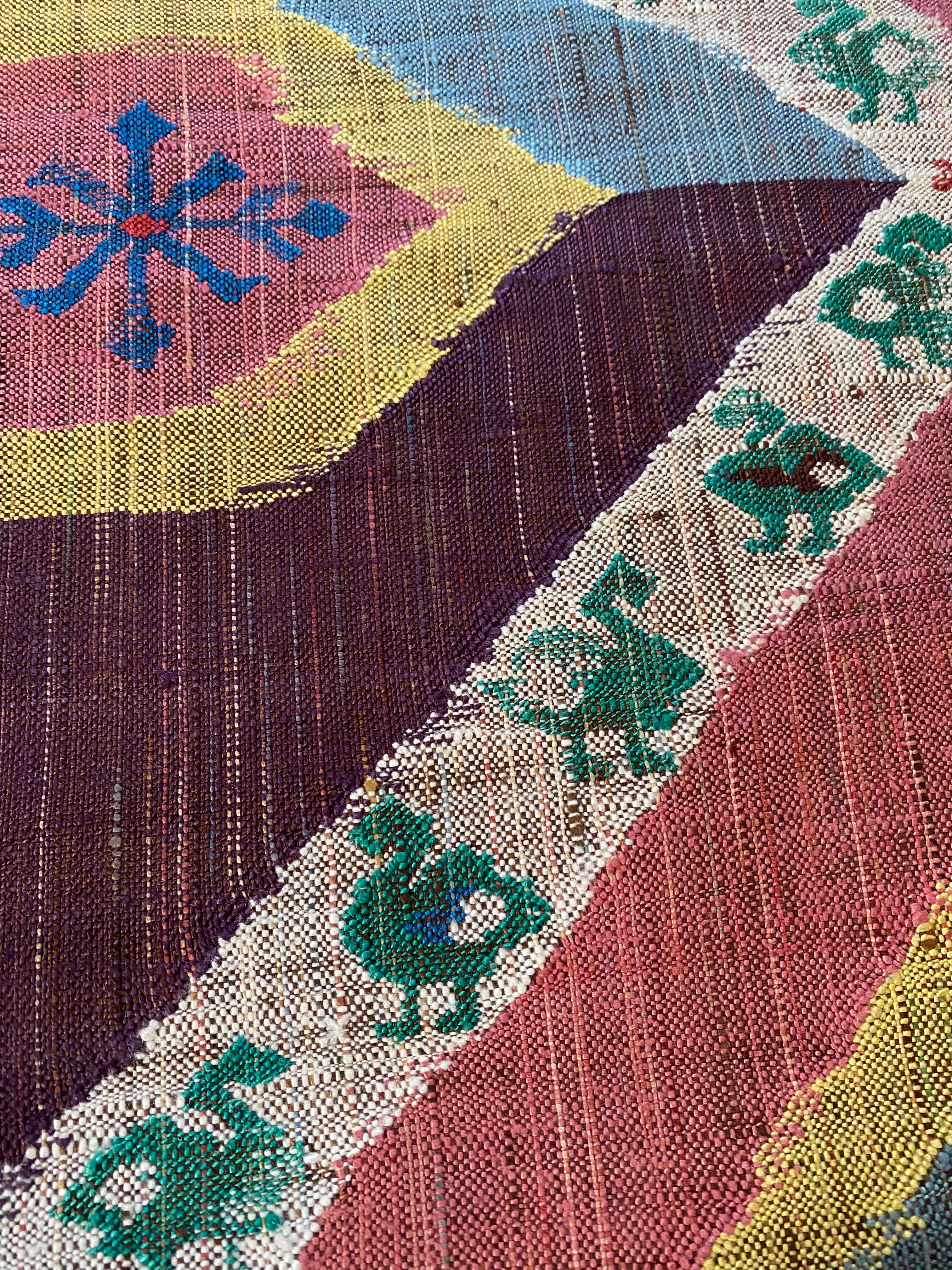 織りの名古屋帯 小さなアヒル ピンク、緑、水色、茶