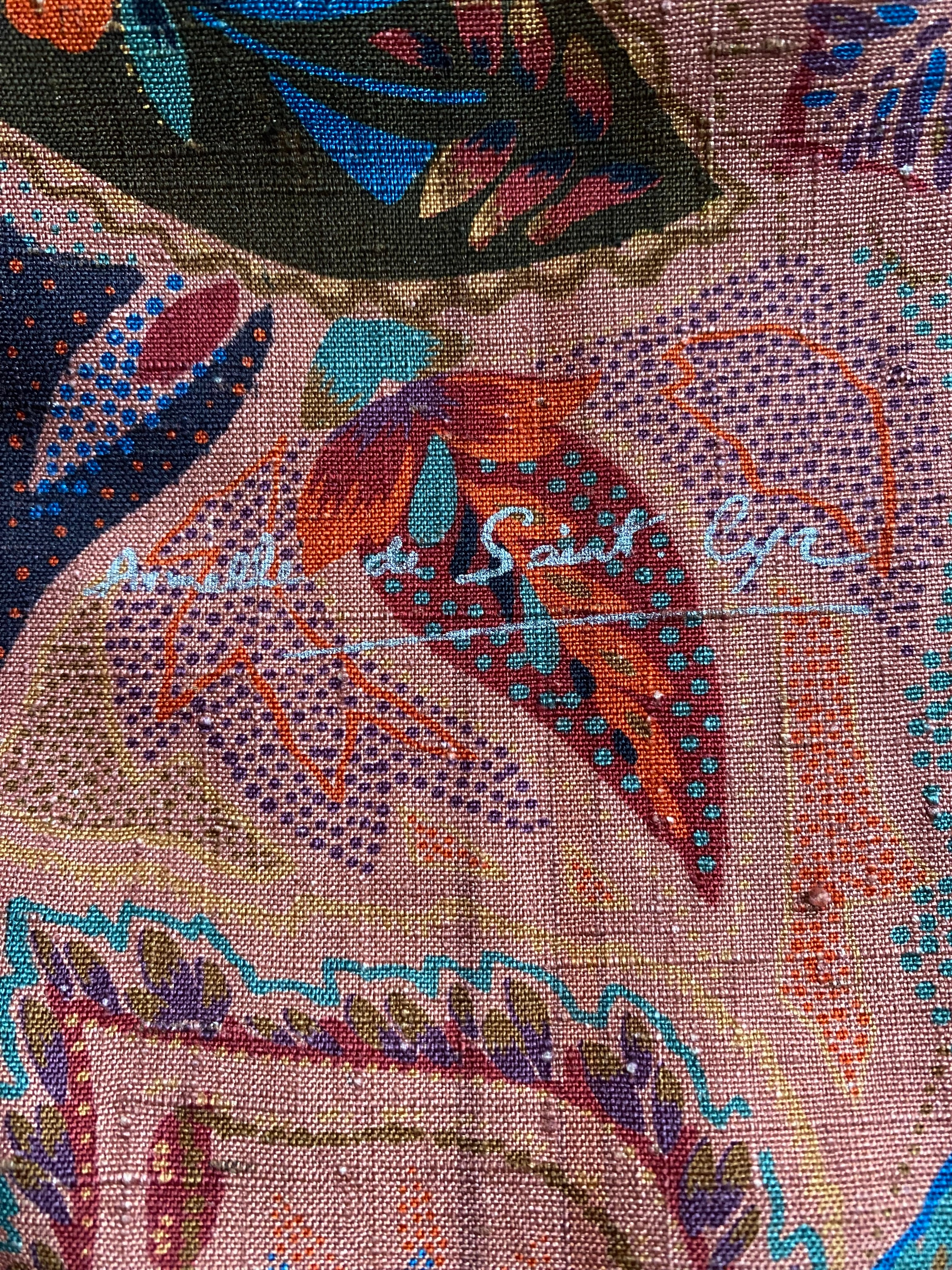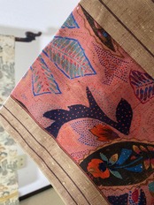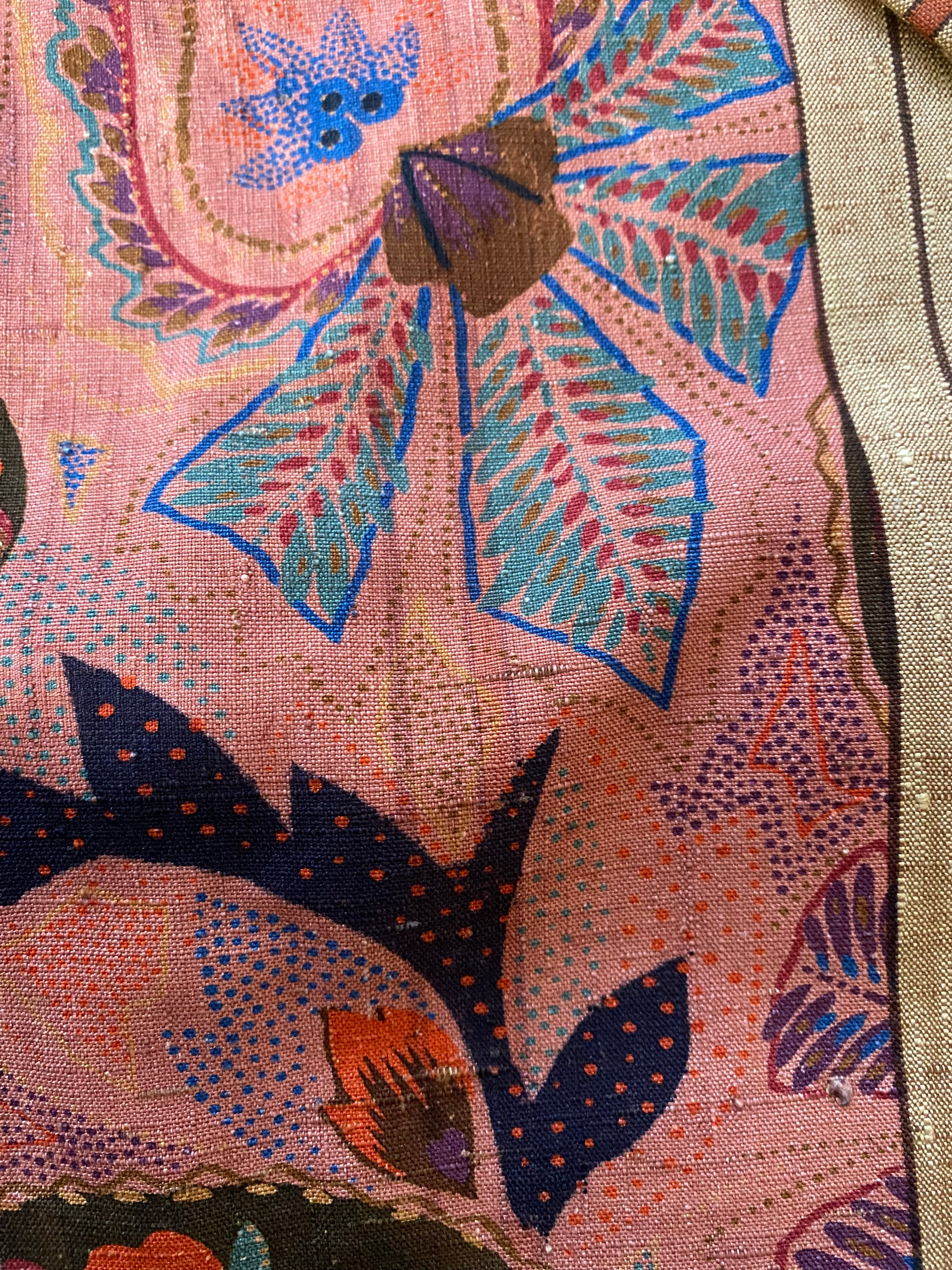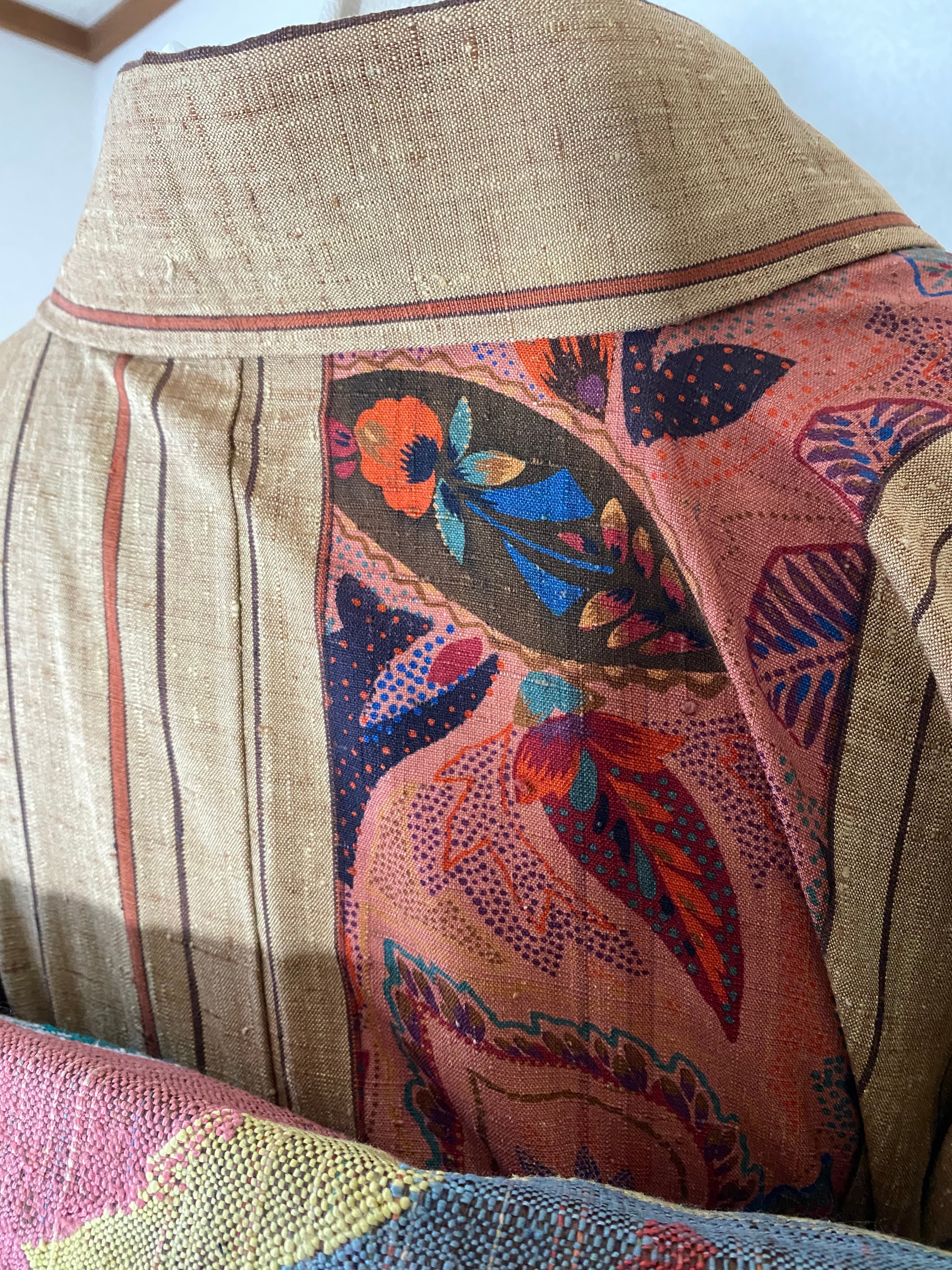 更紗と縞 染め分け紬 茶ベージュ、ピンク