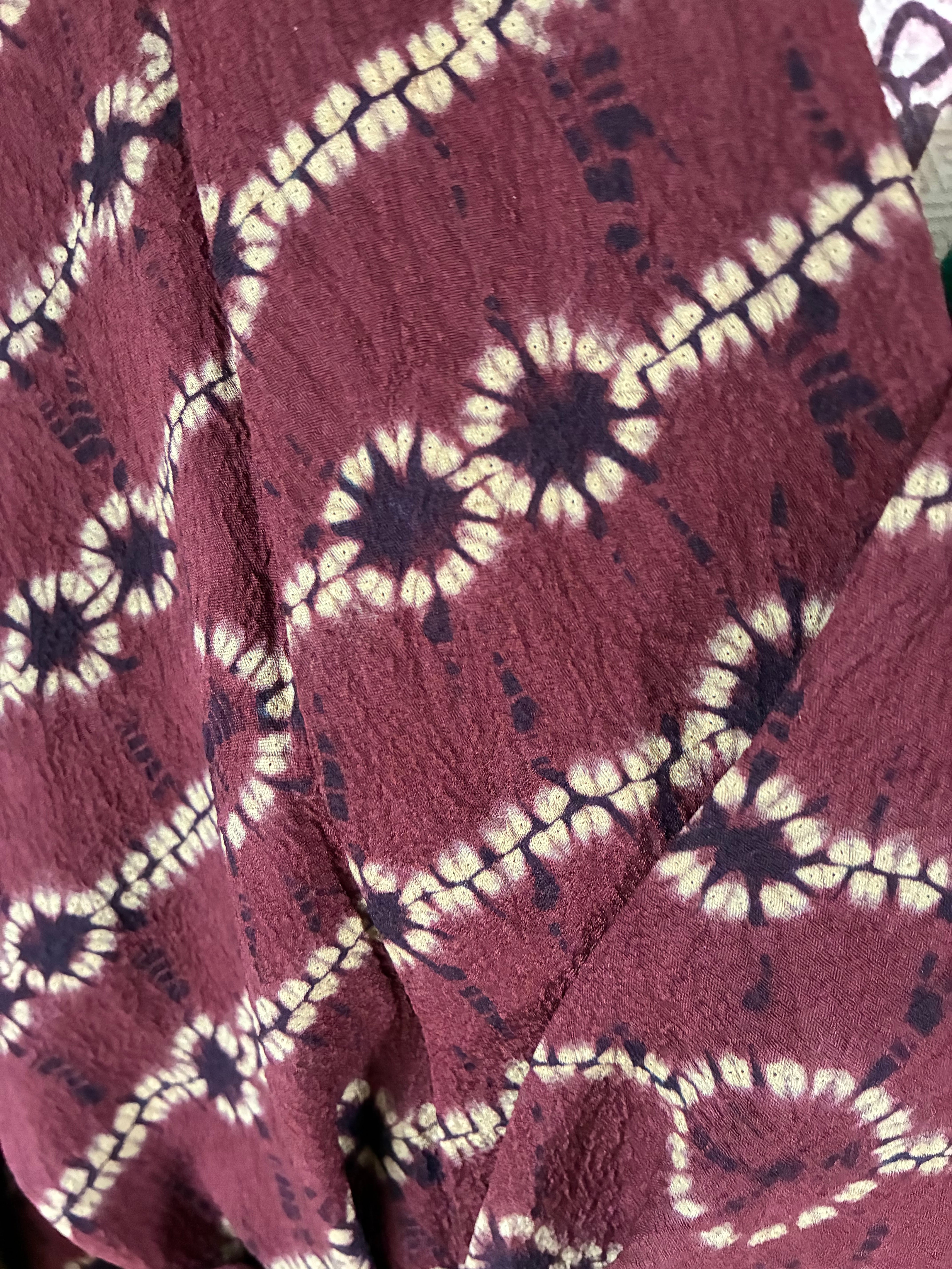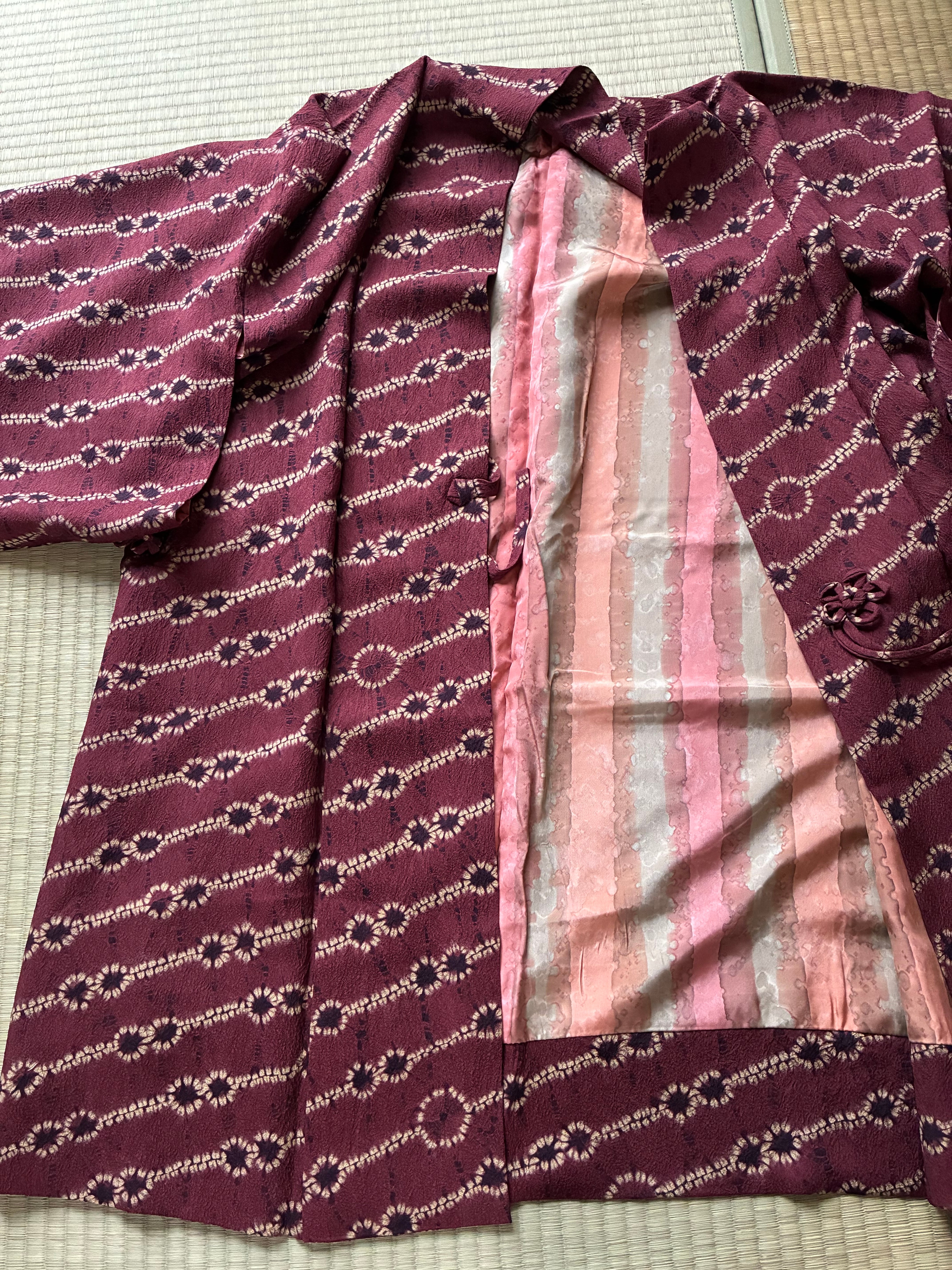道中着 絞り 臙脂小豆色系 エスニック感