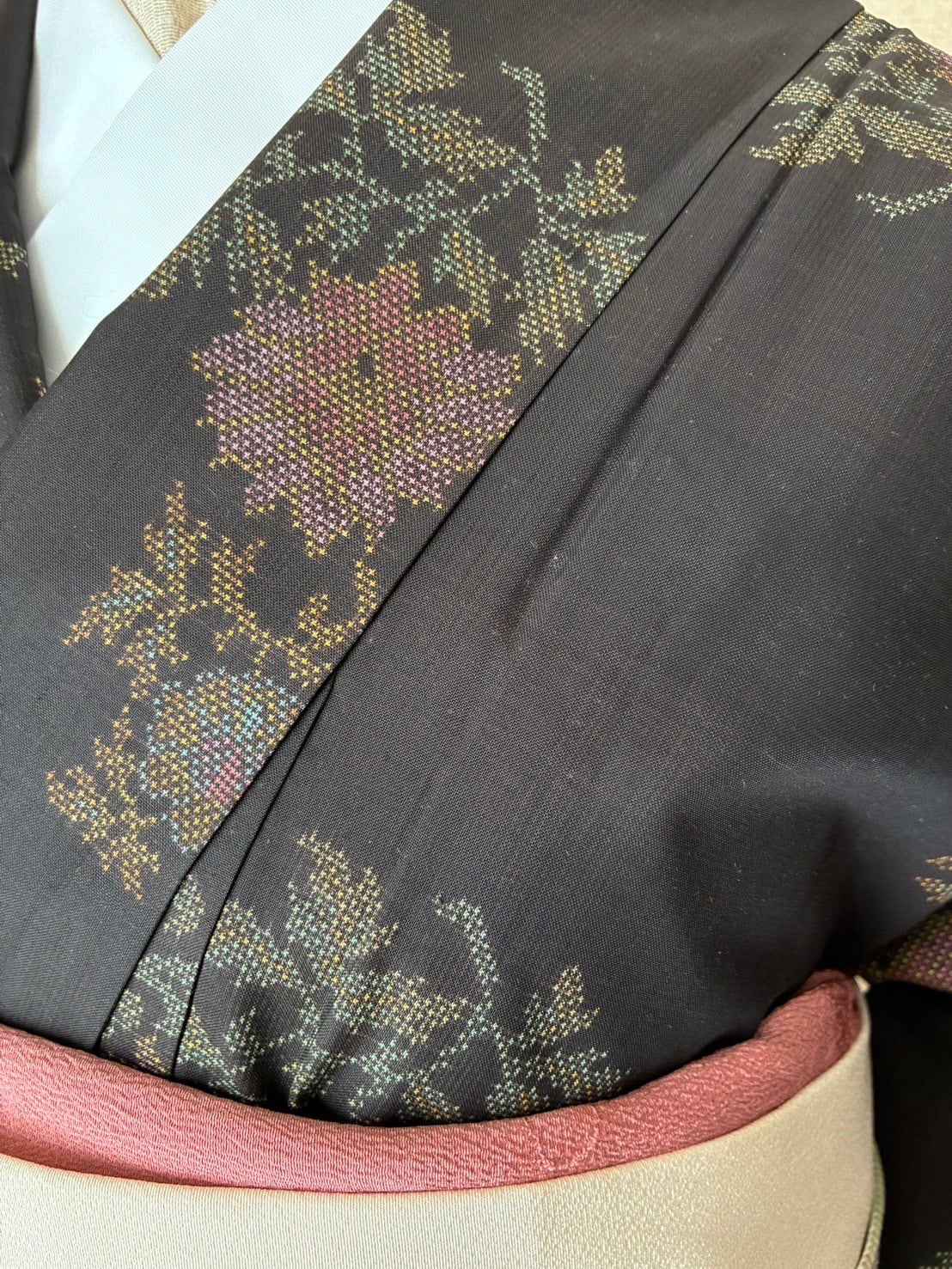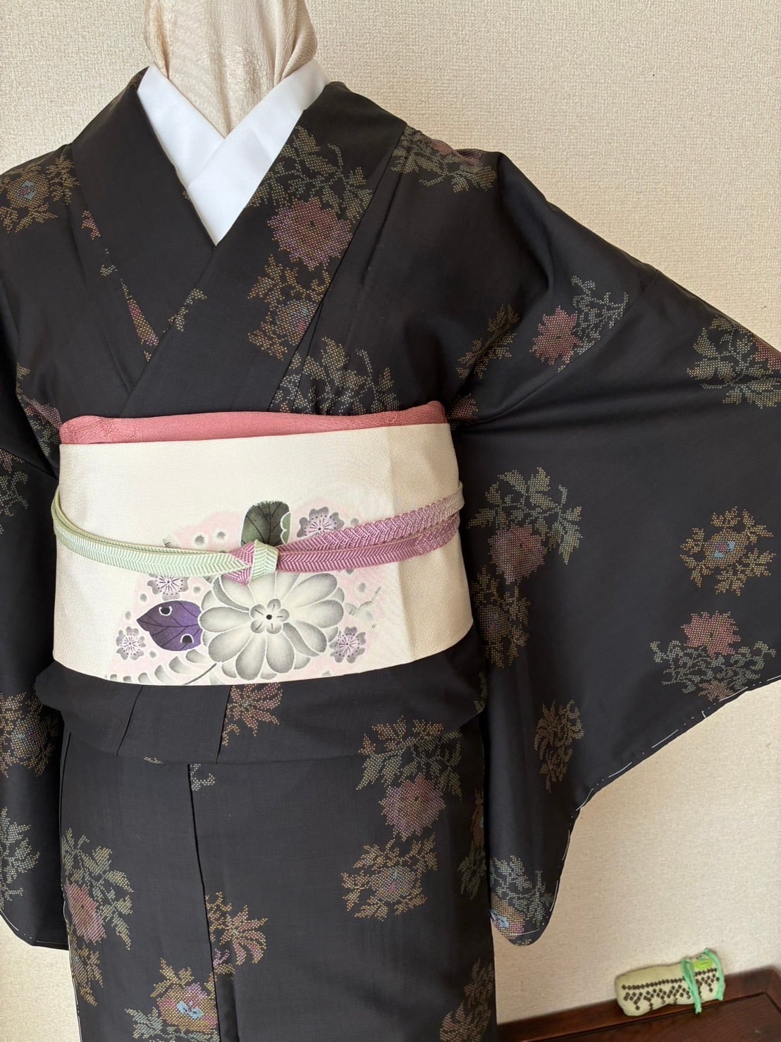 紬 黒 泥染め 花 三越のタグ