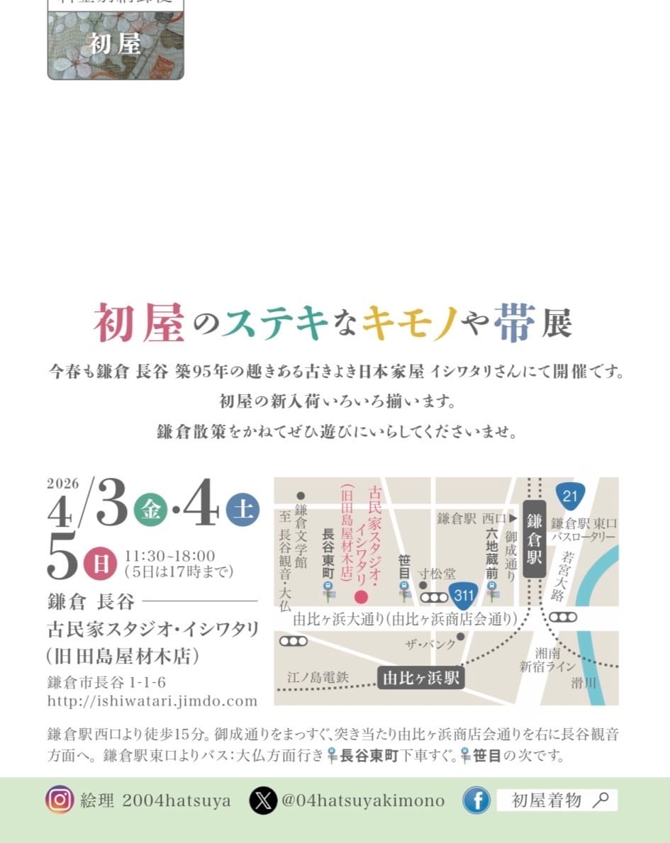 次回の初屋は4/3.4.5 鎌倉にて。