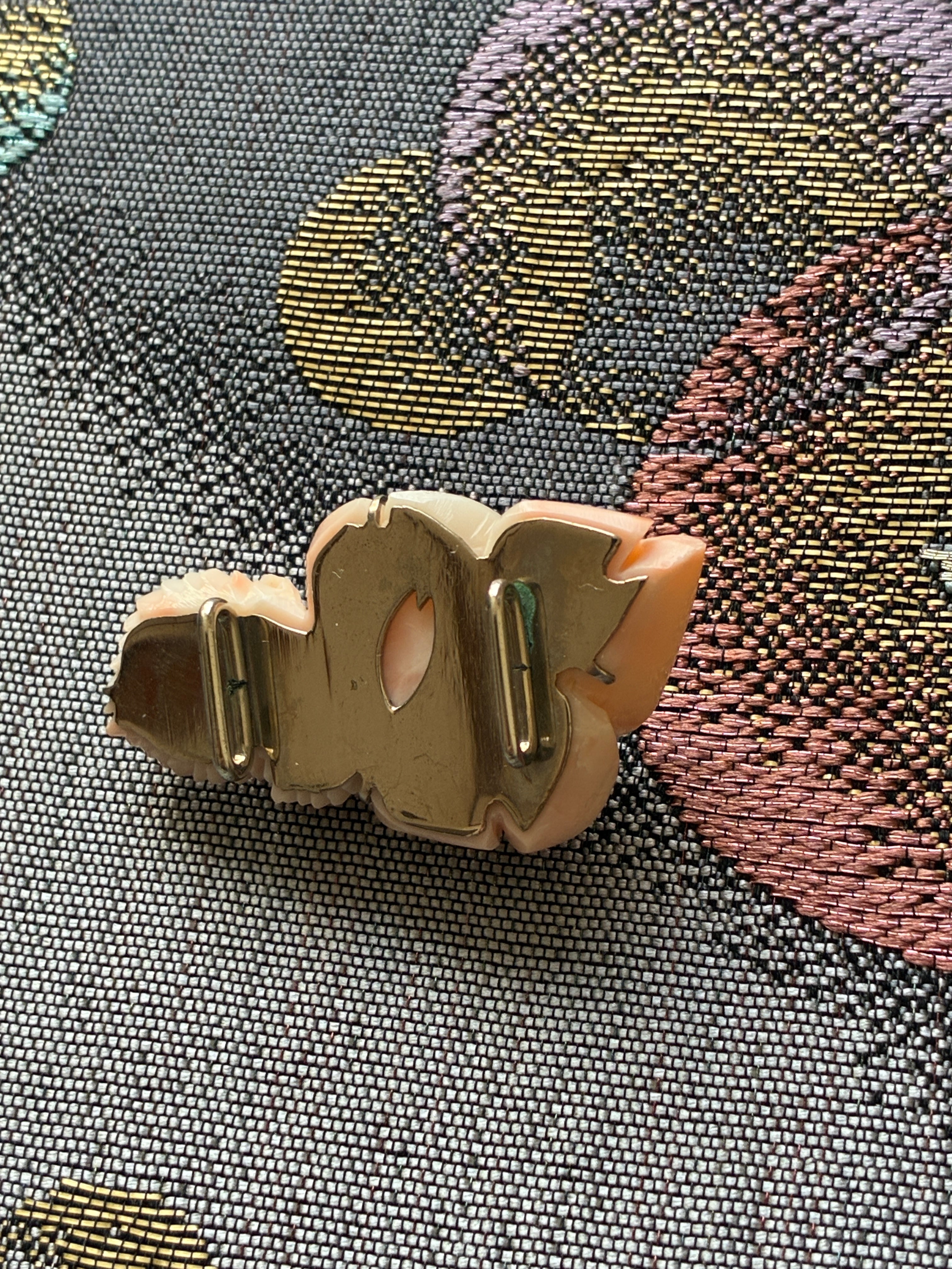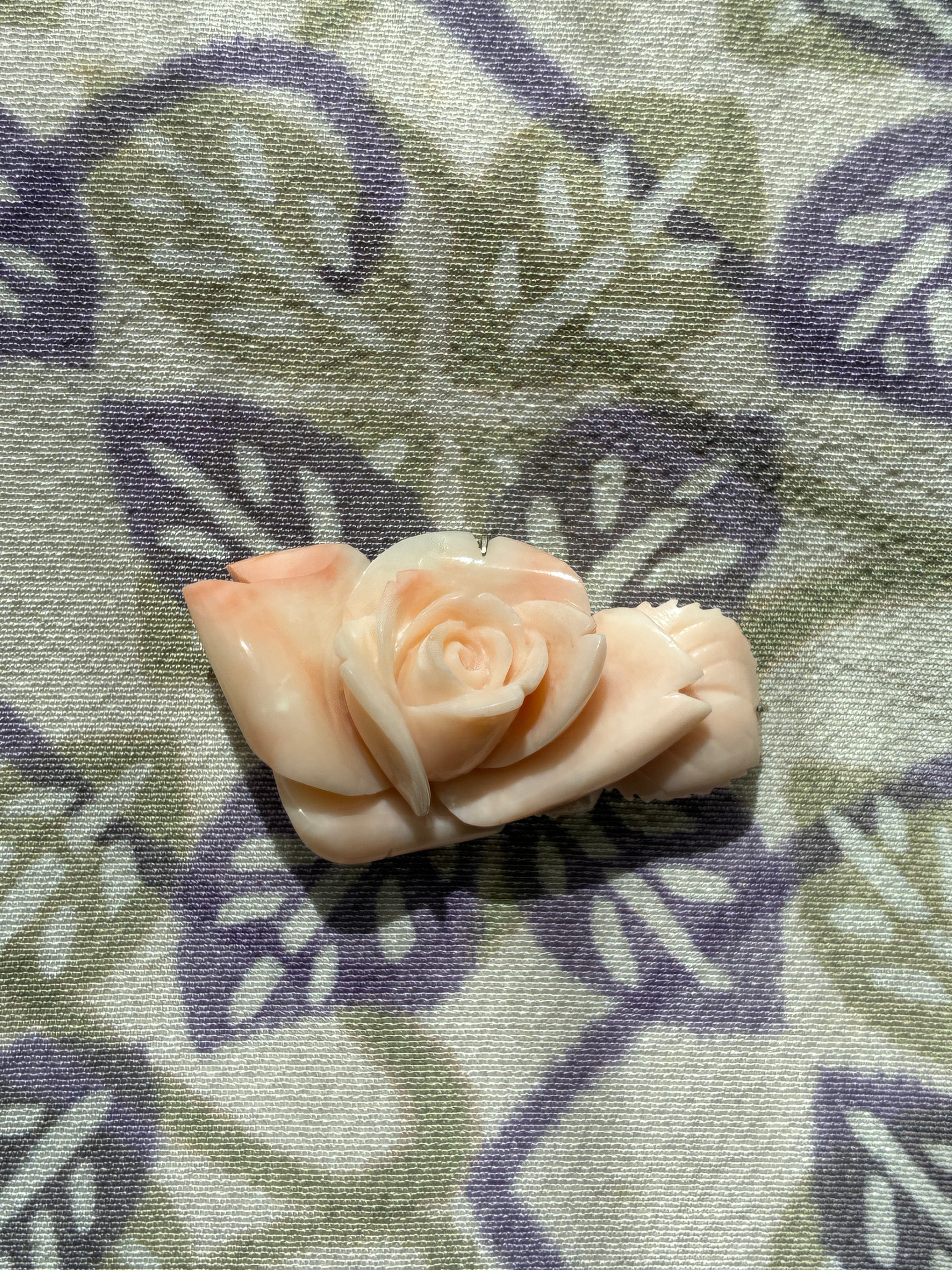 珊瑚 薔薇一輪 帯留め 薄ピンク