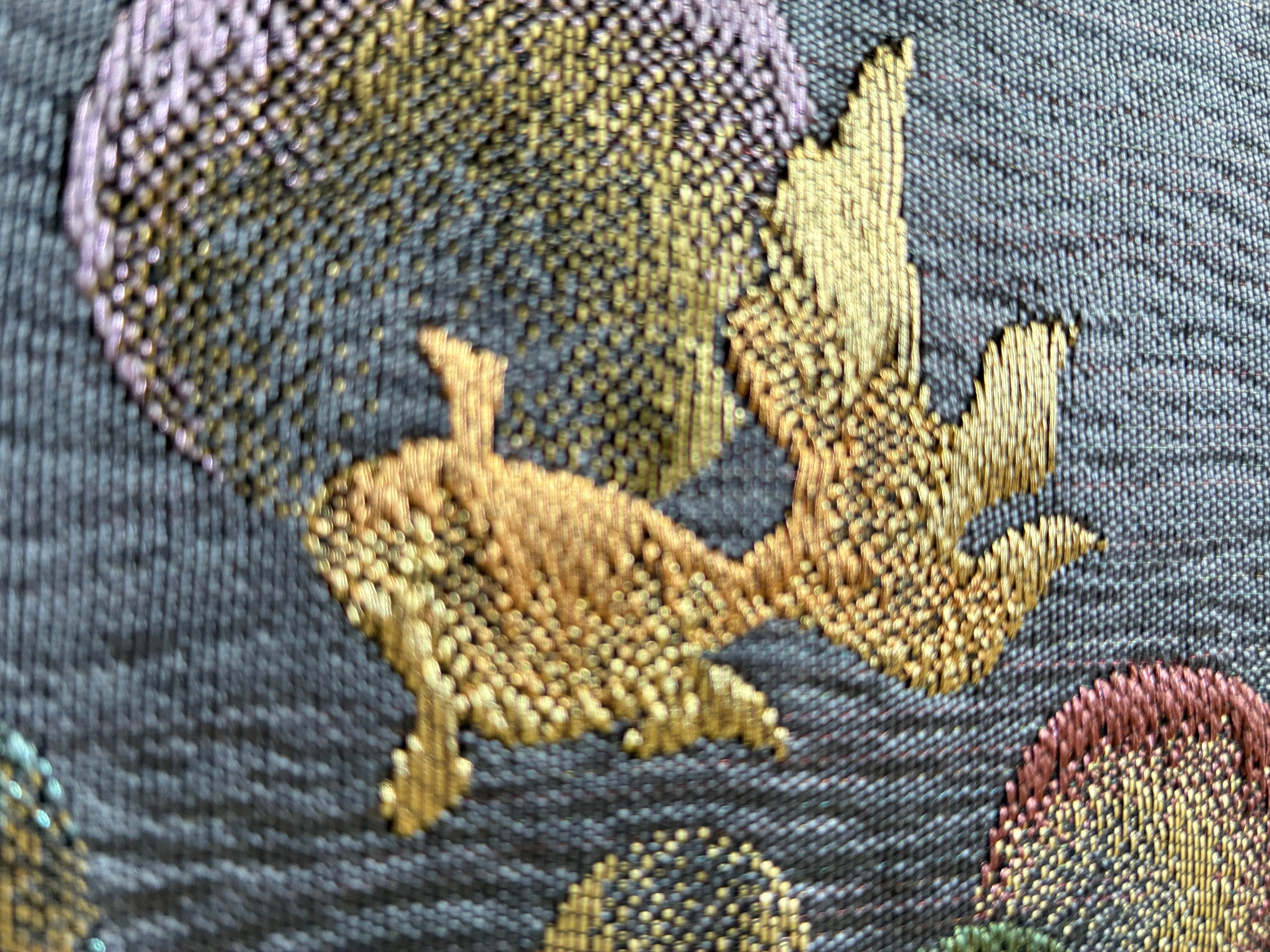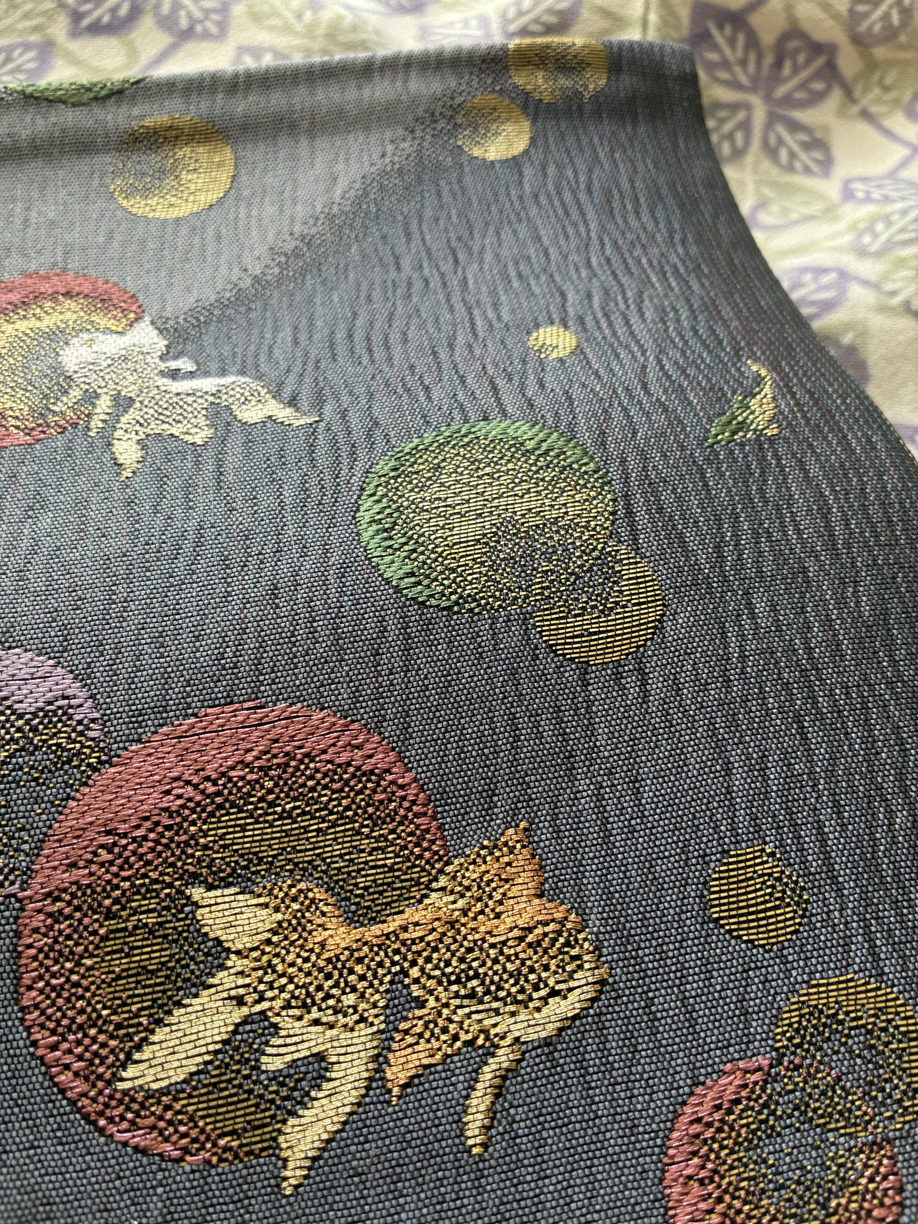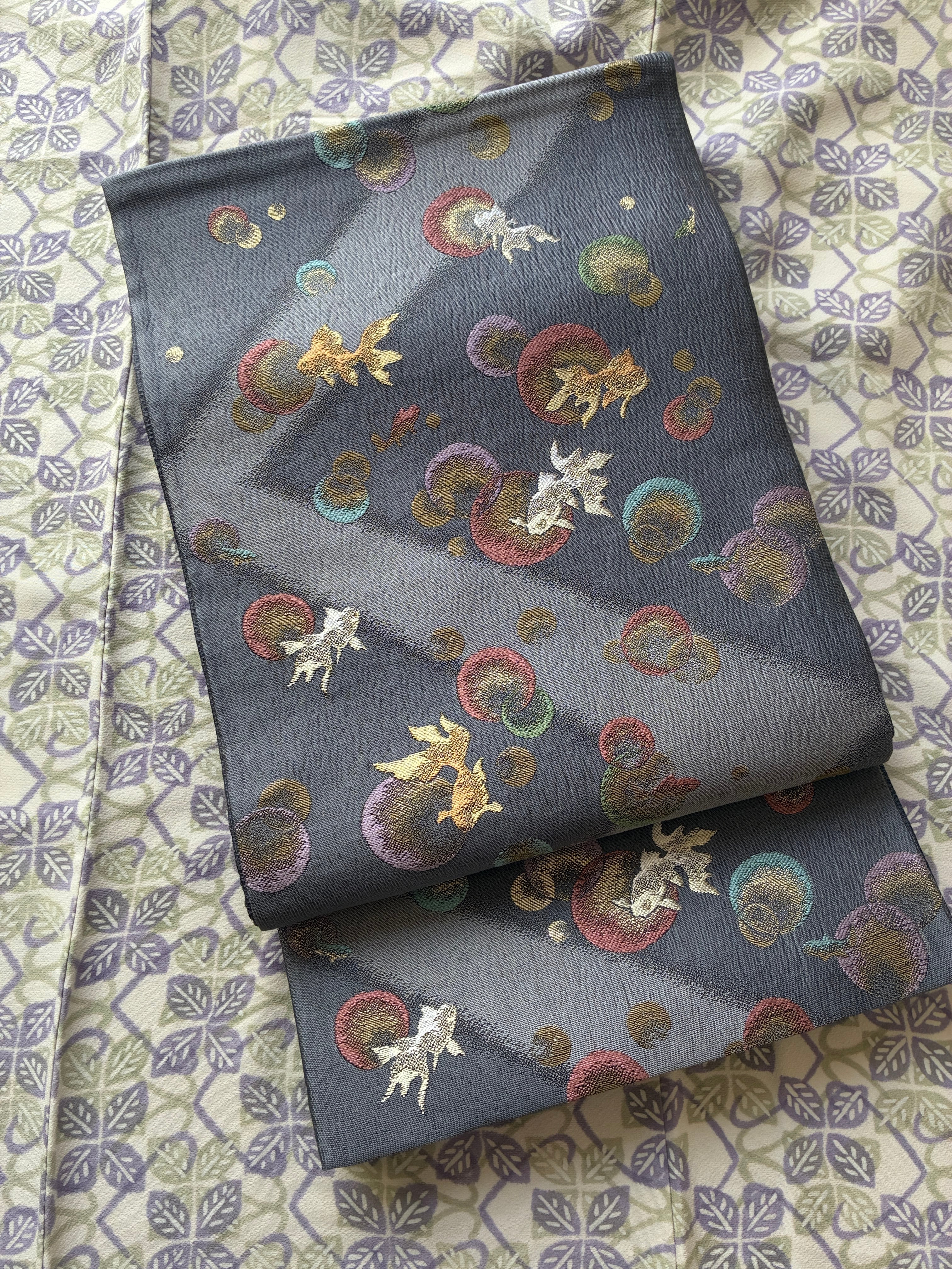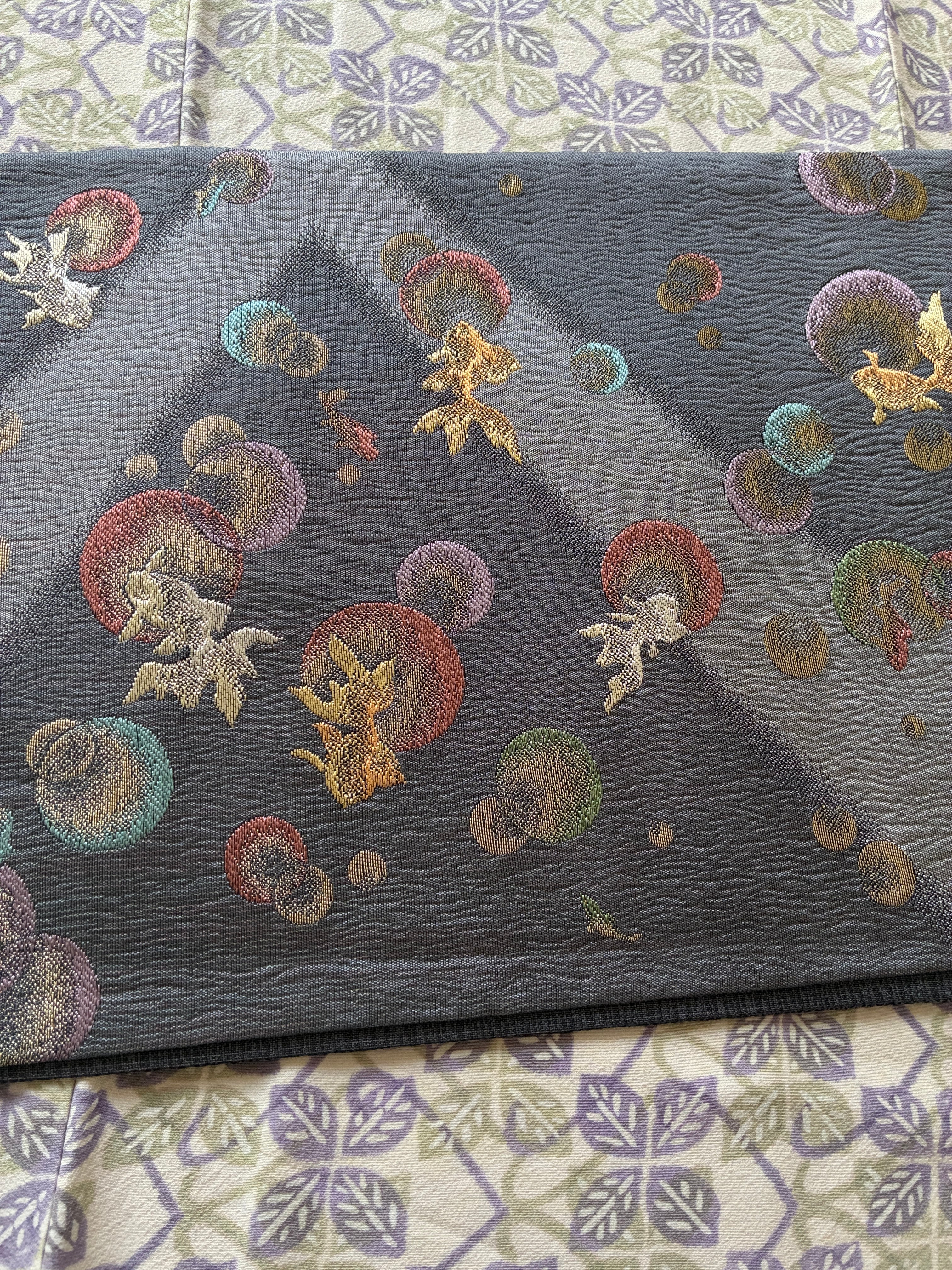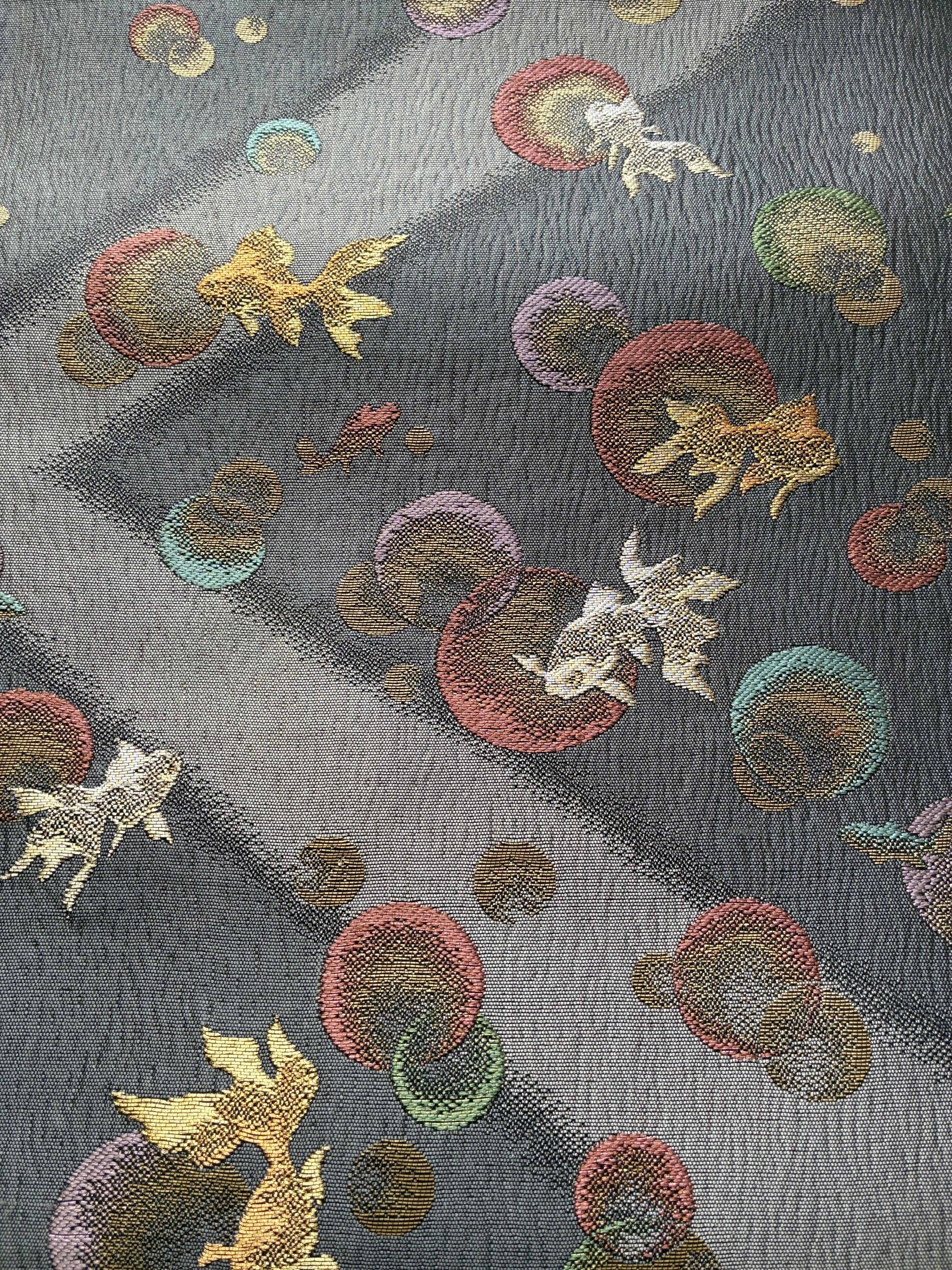 金魚 織りの袋帯 グレー キラキラ感 金魚と水玉