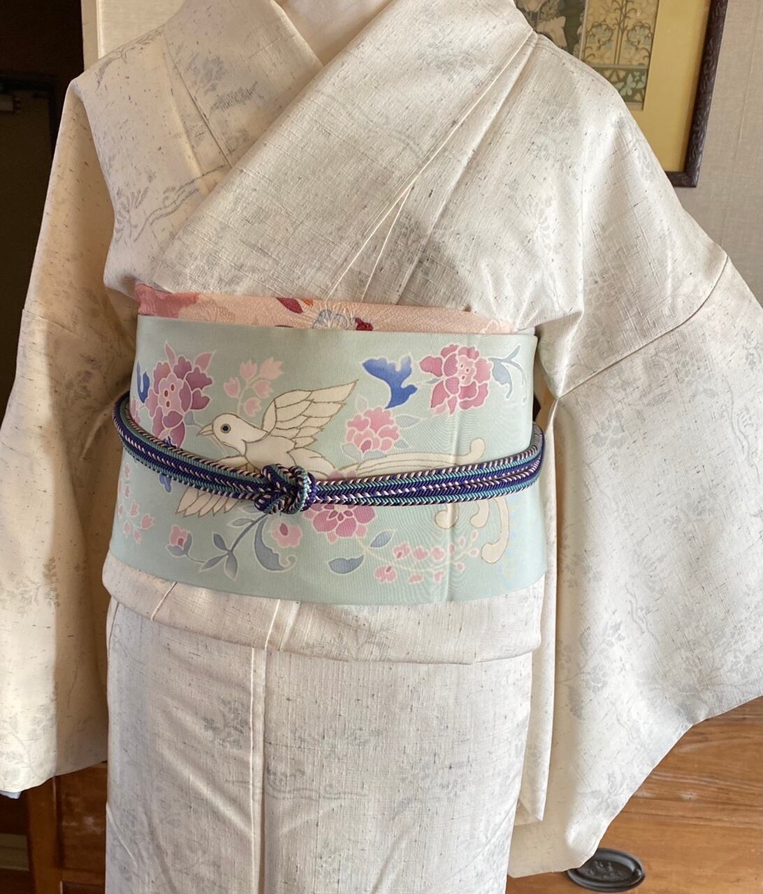白〜アイボリーグレー織りと染め紬 小花
