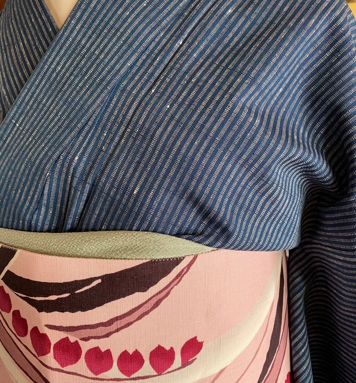 単衣 紬 藍色 縞