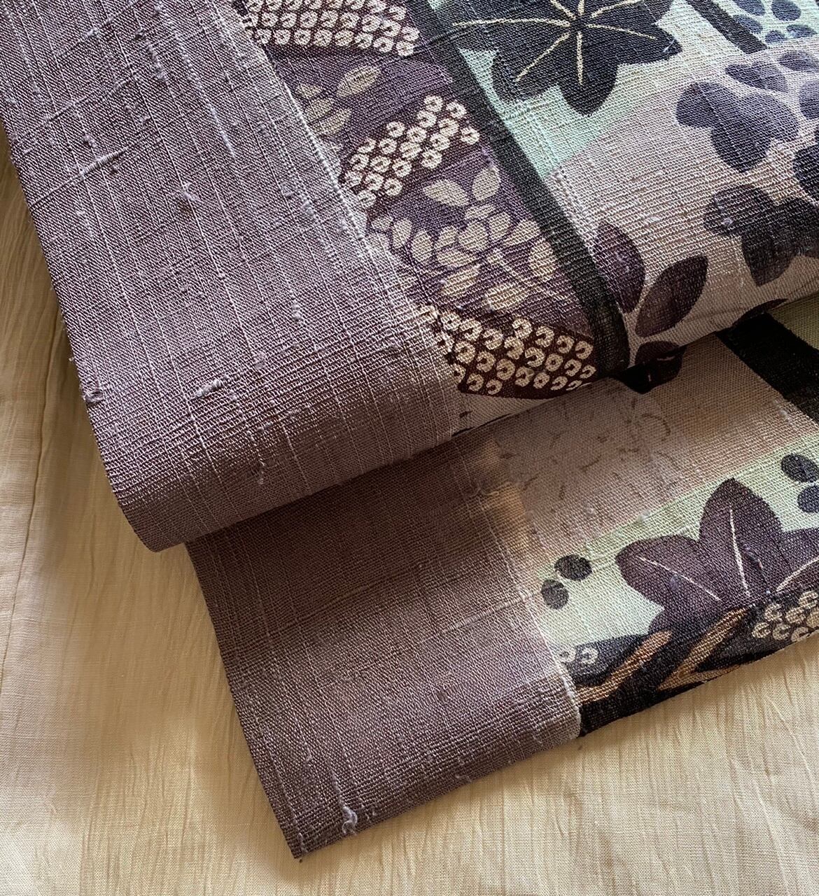生紬 なまつむぎ 草花 疋田紋様 染め名古屋帯
