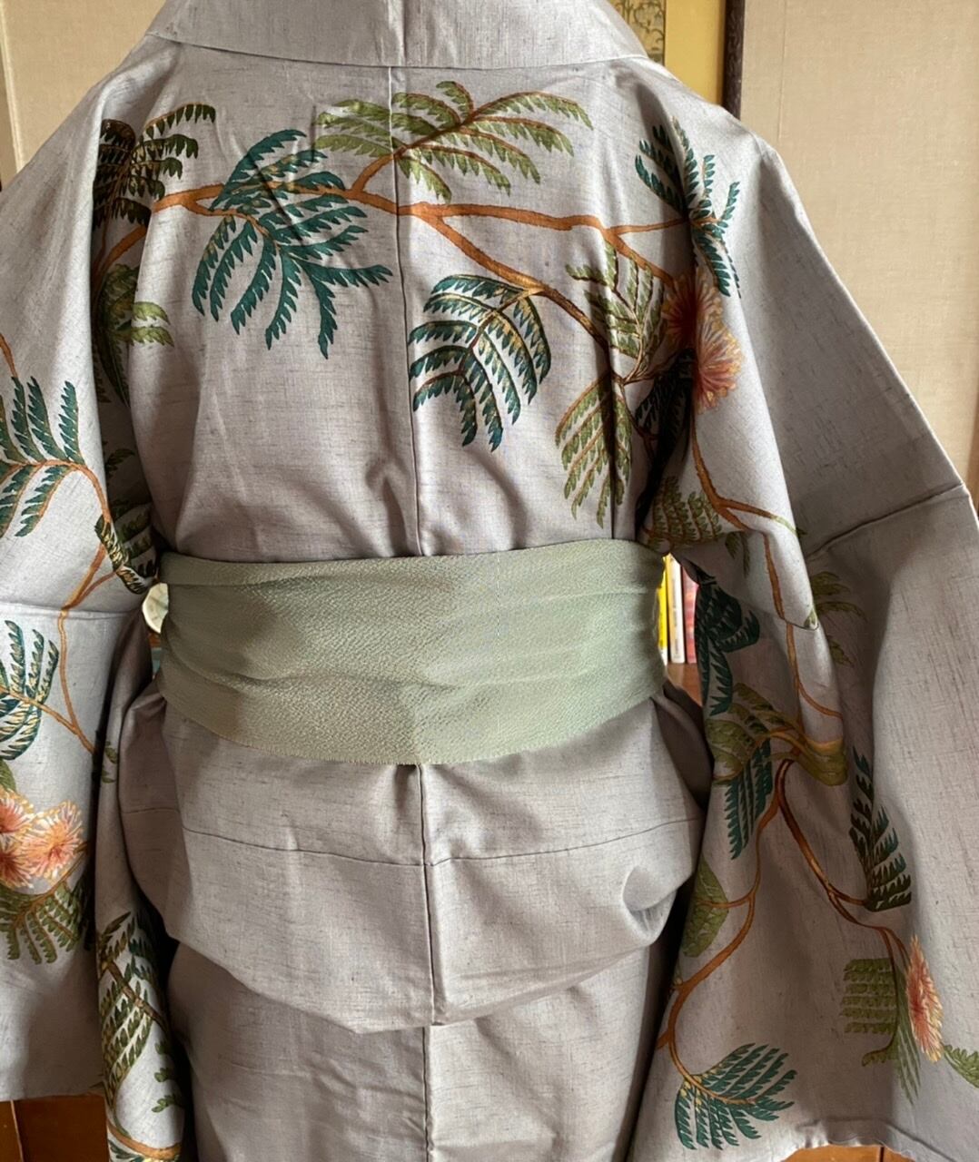 ねむの木は今頃から六月のお花なので四月、五月にお召しになるのがよいと思いますが。