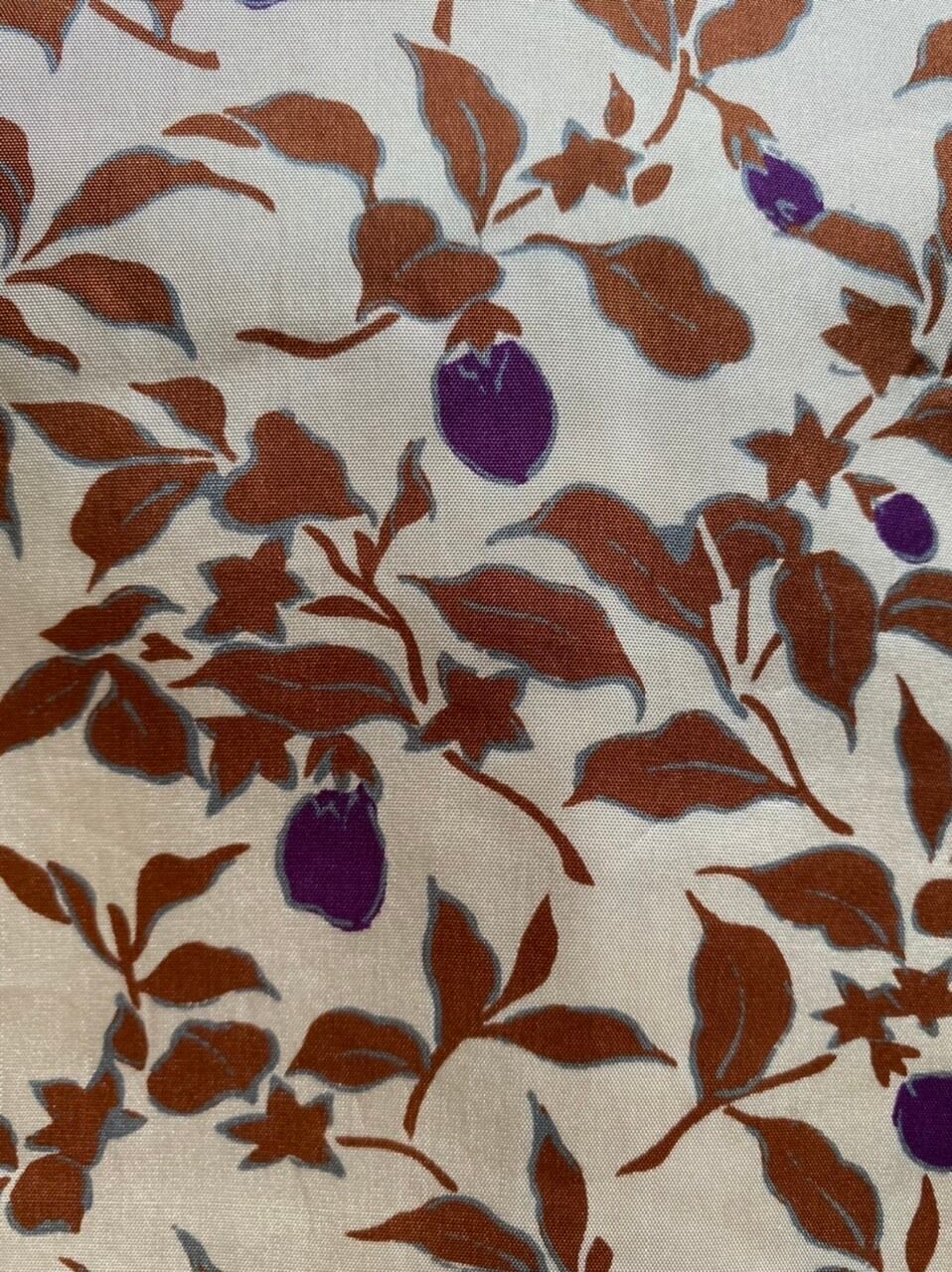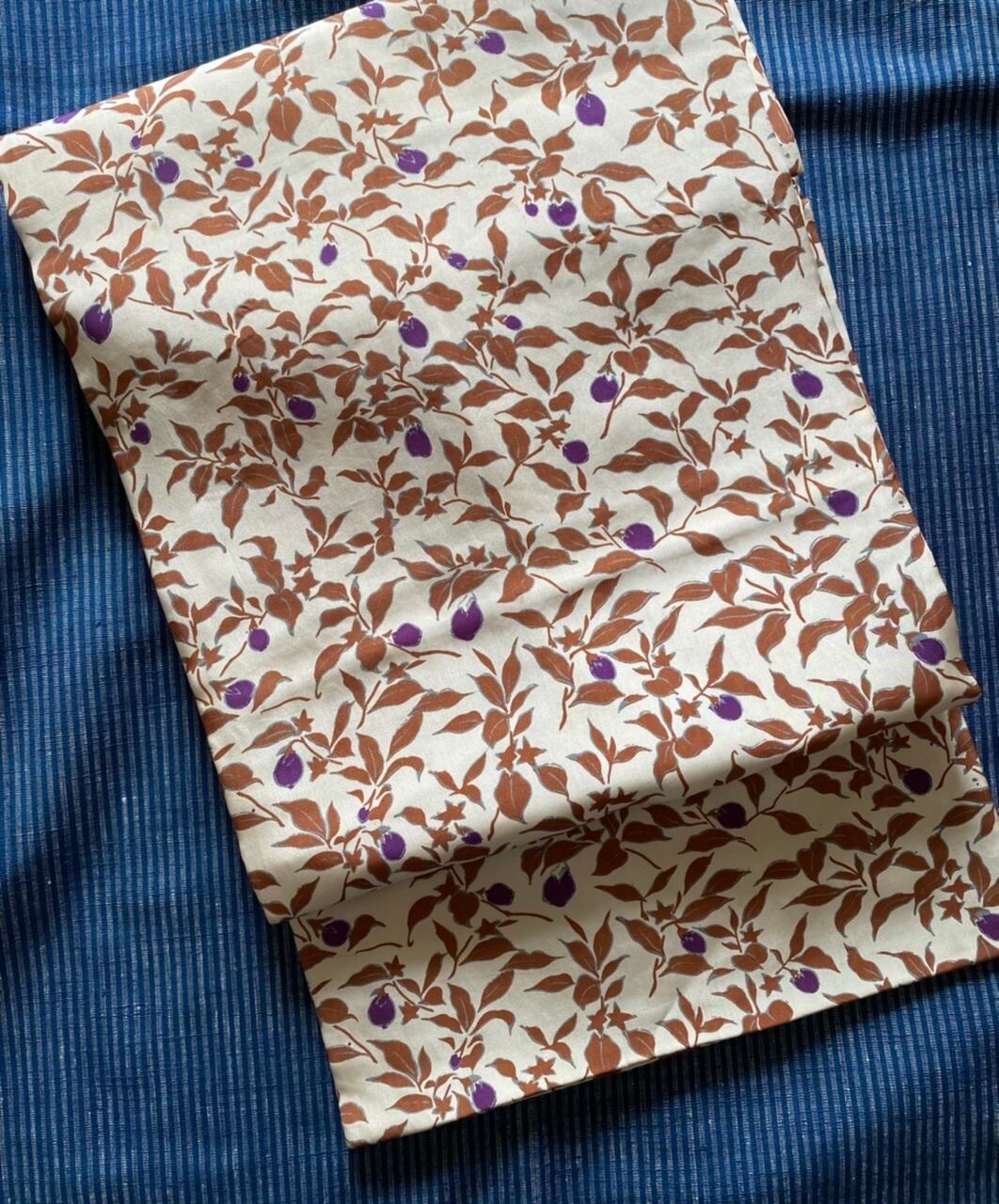 茄子の絵の帯は見かけますが、たくさんの小さな茄子と葉っぱ、茄子がなっている図柄は珍しいです。