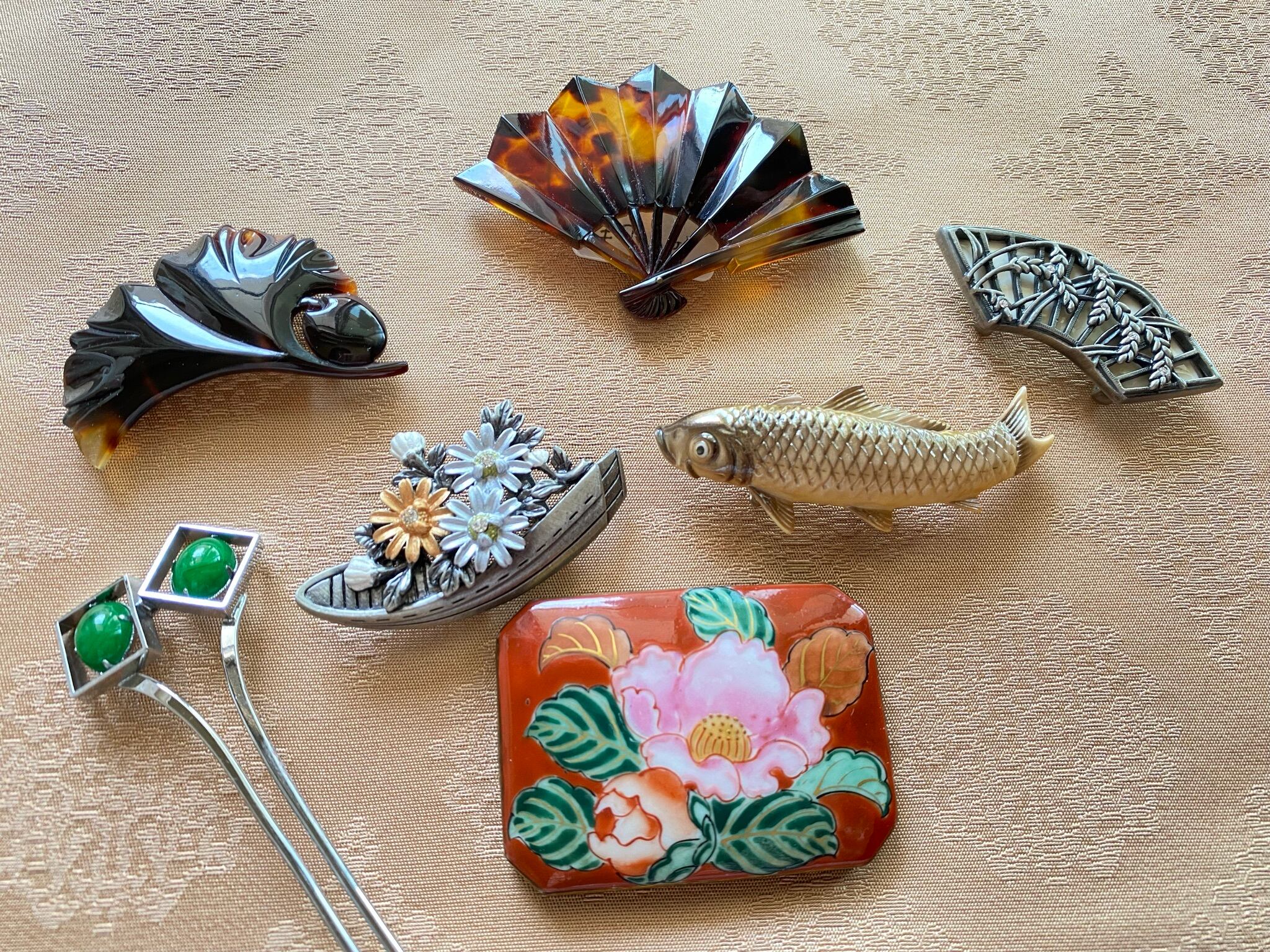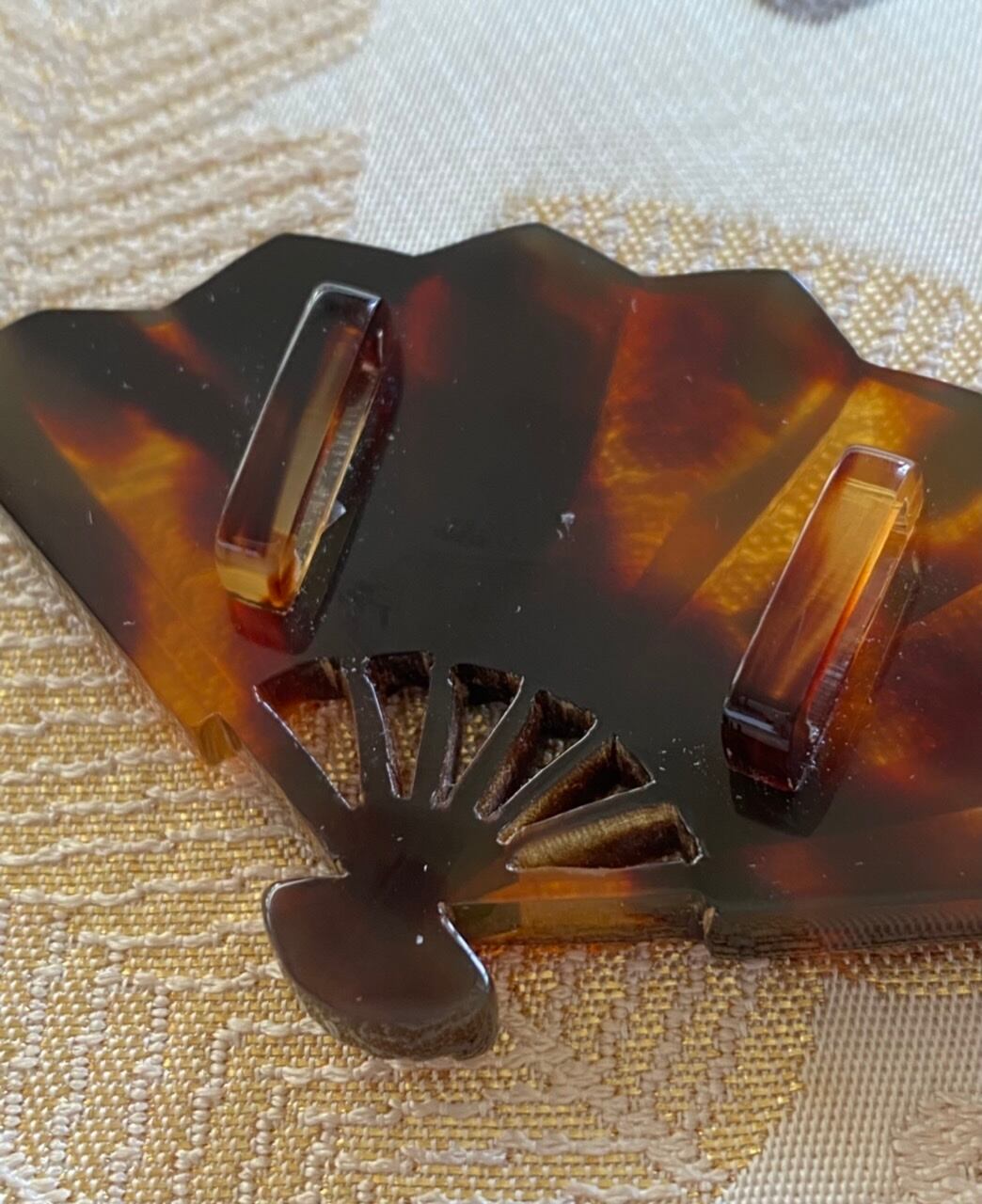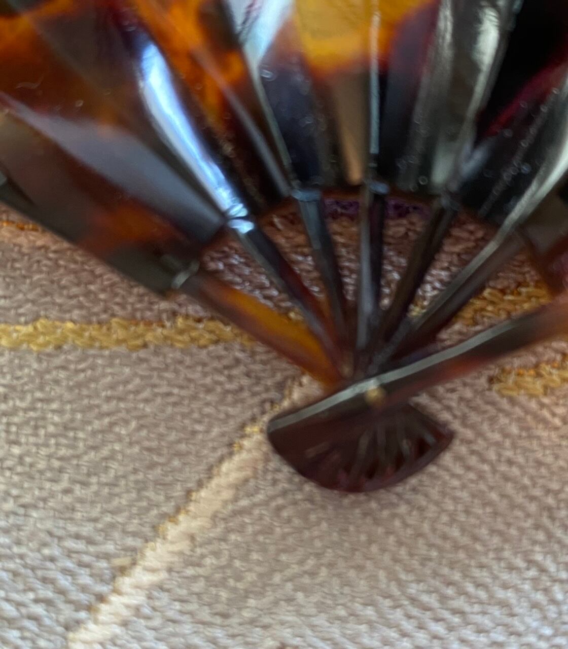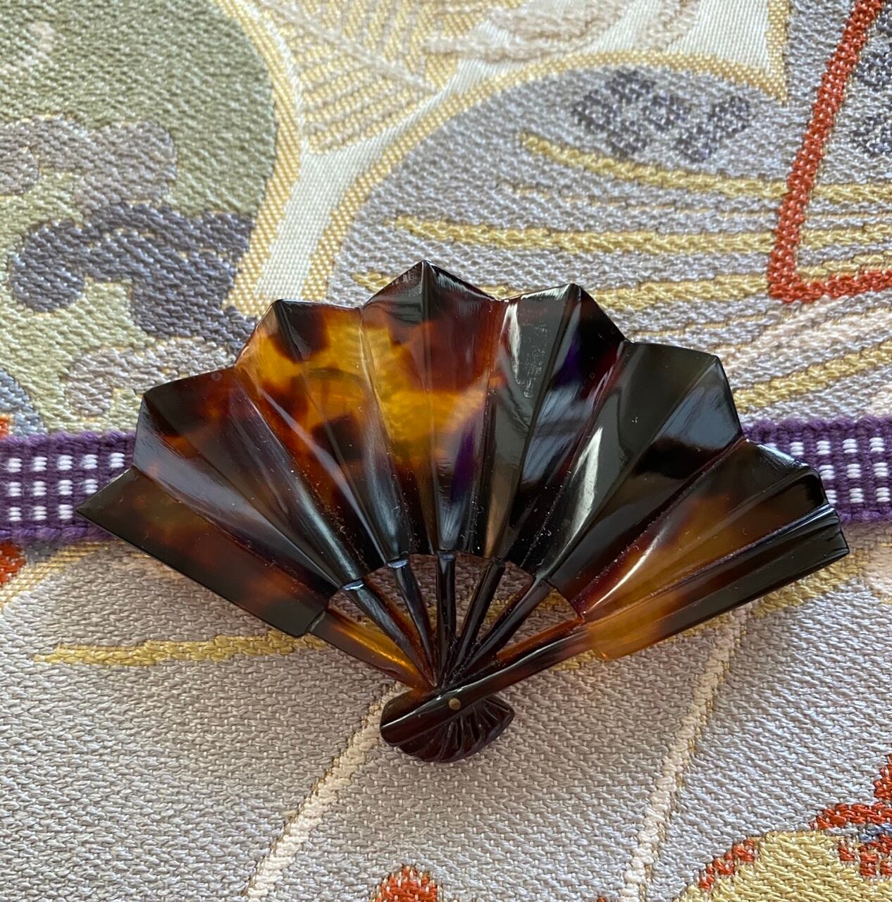 扇のカタチをした鼈甲 べっこうの帯留め。