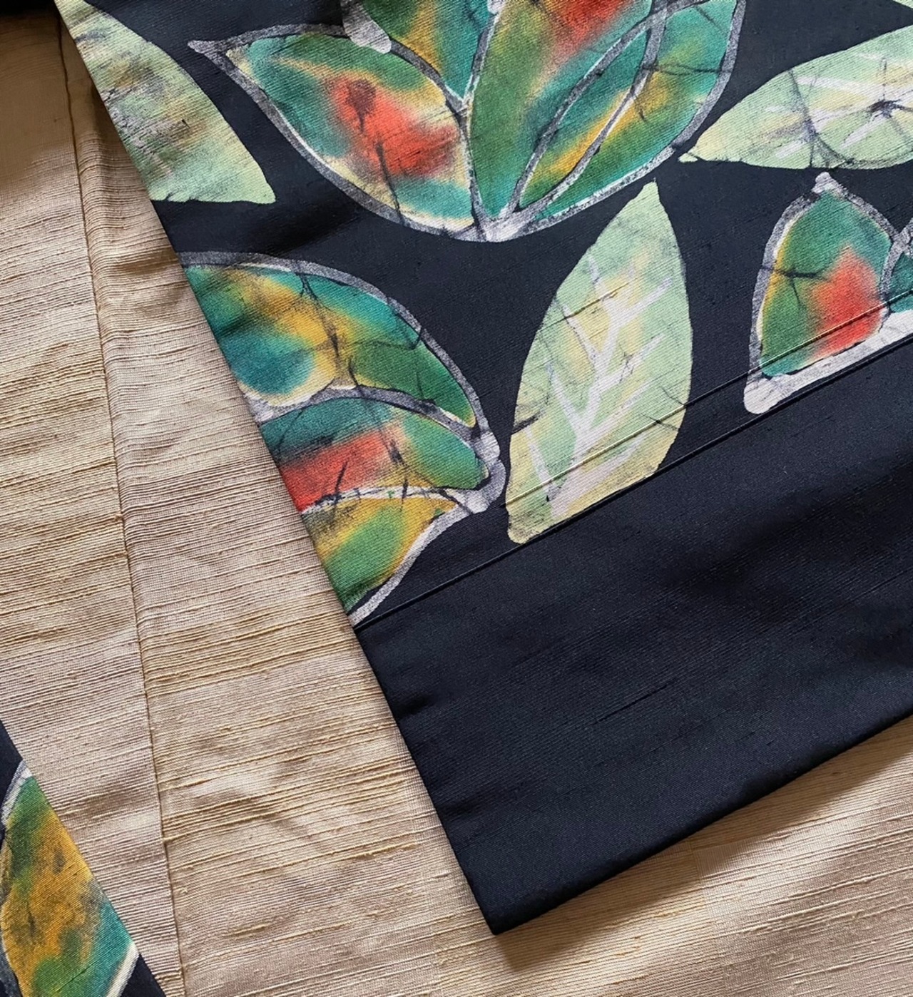 名古屋帯 色付きはじめた葉っぱ 黒地