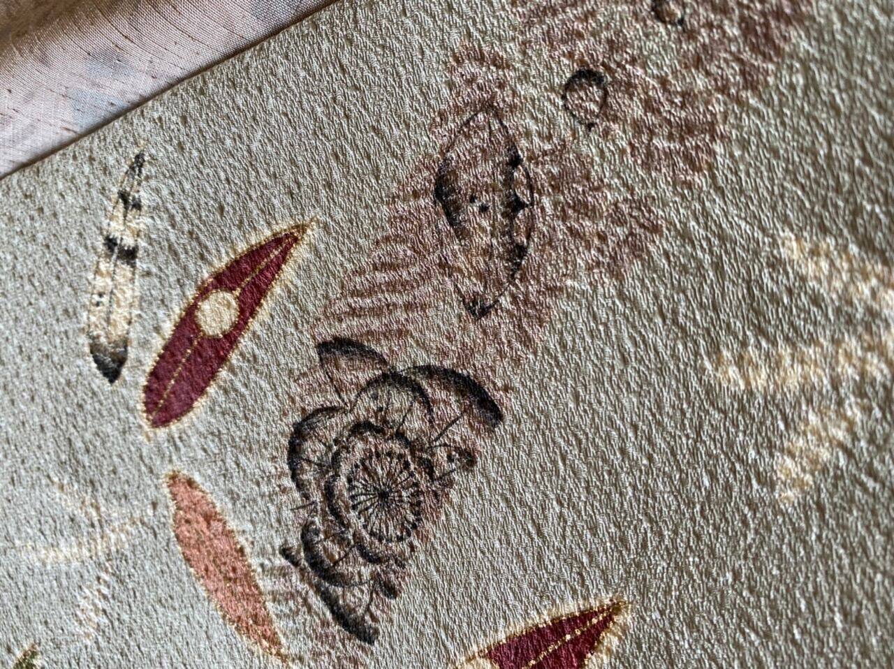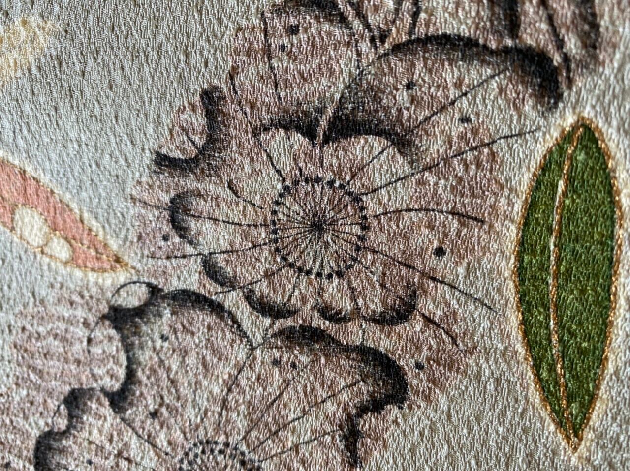 梨地 梨の皮みたいにちょっと粒々がある織りの縮緬です。光りの加減ではキラキラ輝くように見えます。