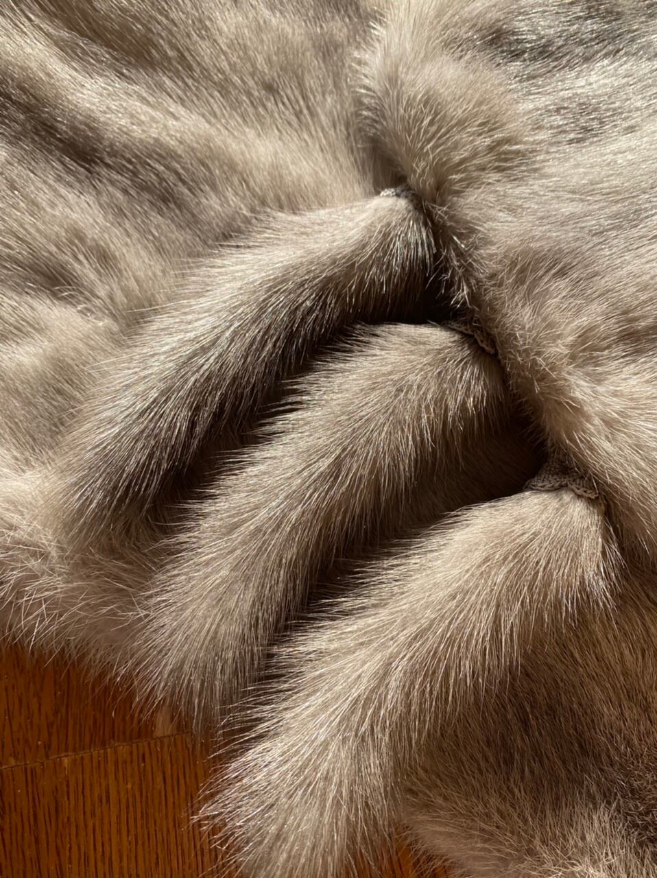 美しい毛並みのミンク、お色味もゴージャスandシックなシルバーグレー。肩をすっぽり包み込む大判サイズ。