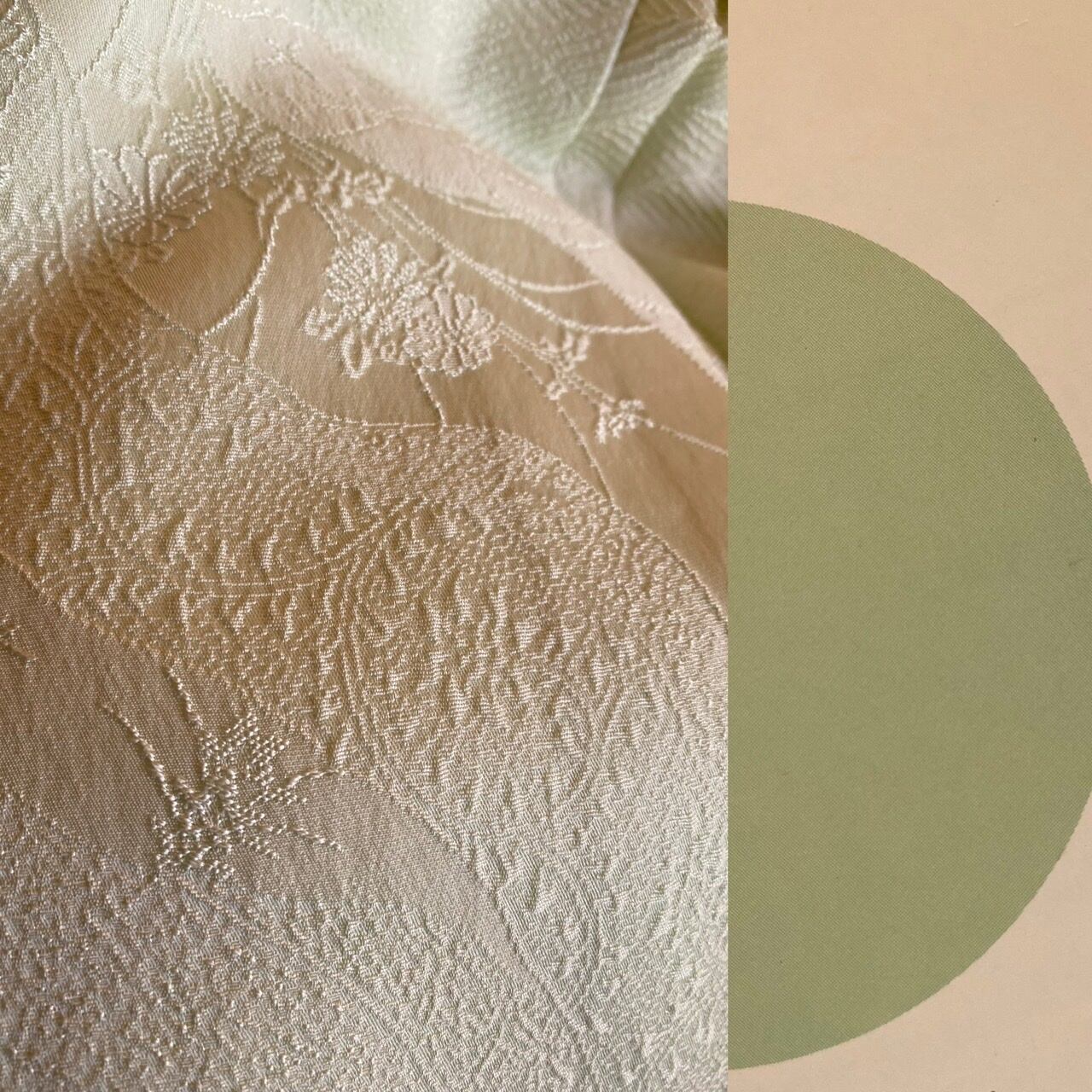 地紋の美しい色無地 白緑色
