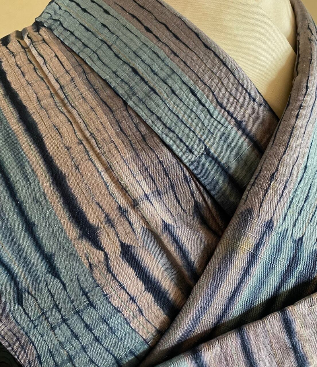 絞り 紬 水色紫紺 身丈170センチ