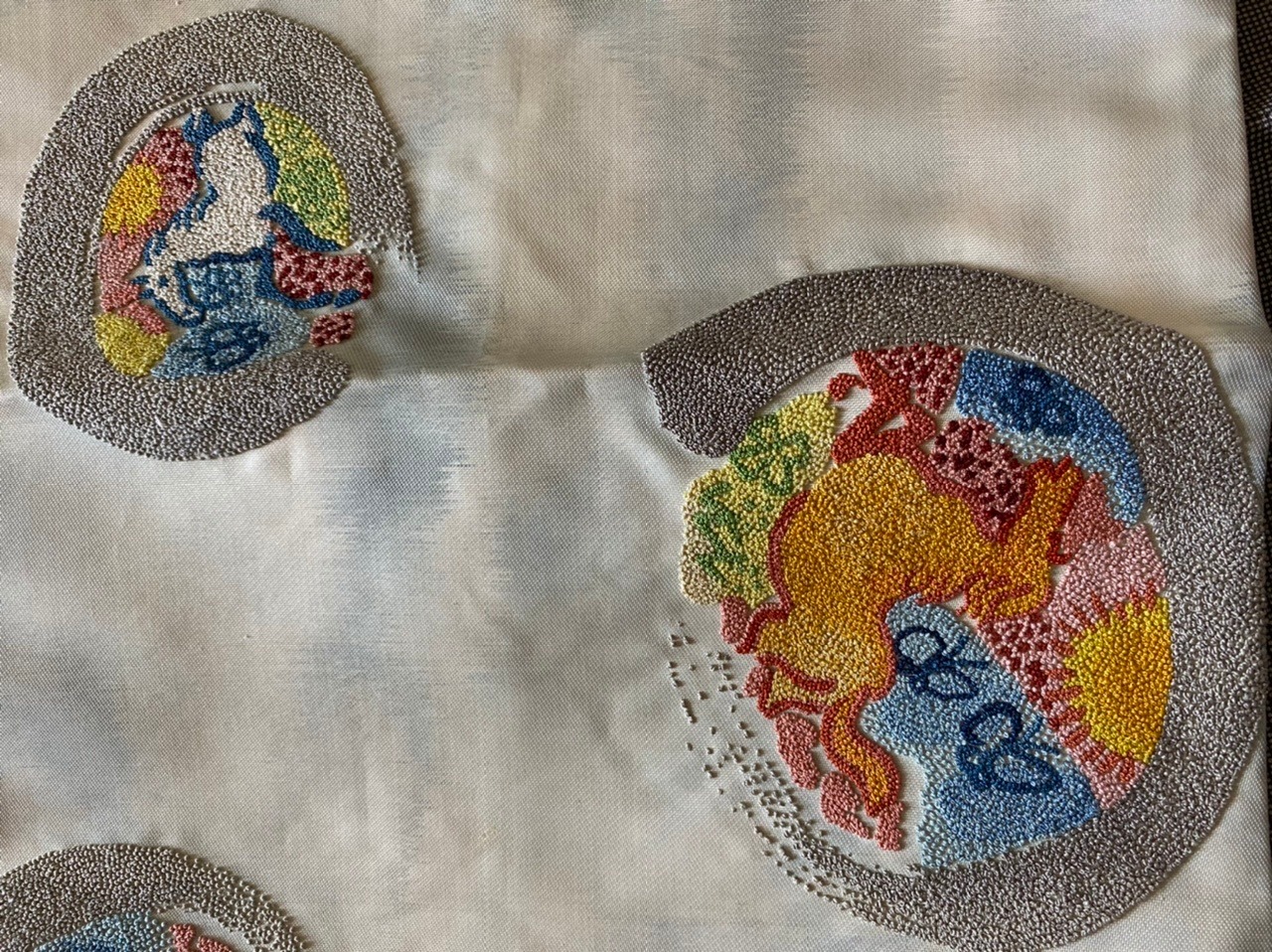 細かい相楽刺繍の袋帯。