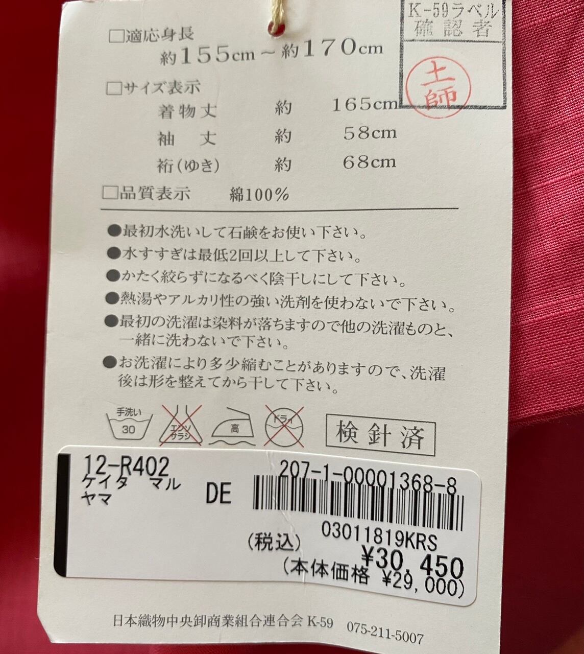 裄68 身丈165 袂58 前24 後29 ㌢
