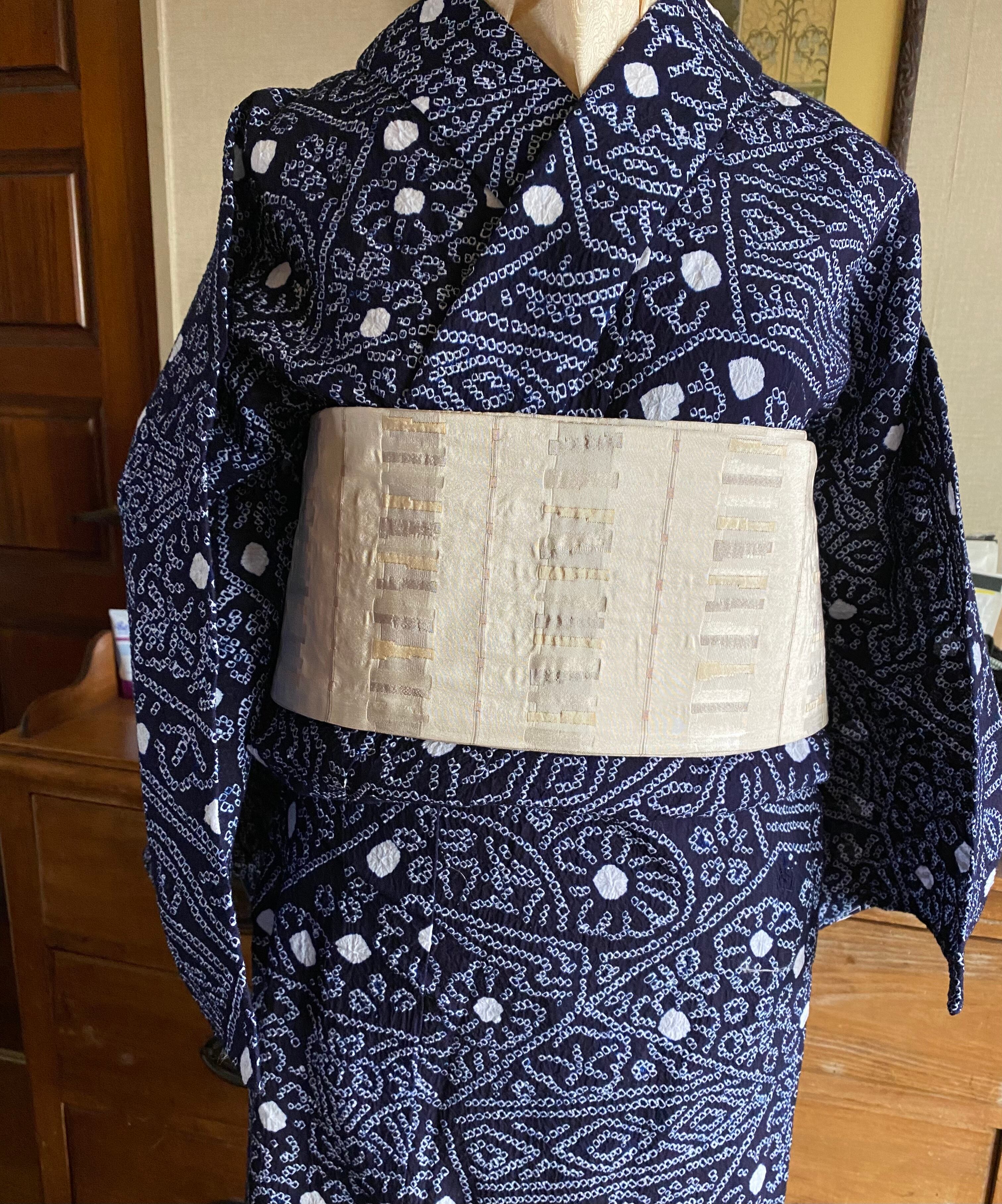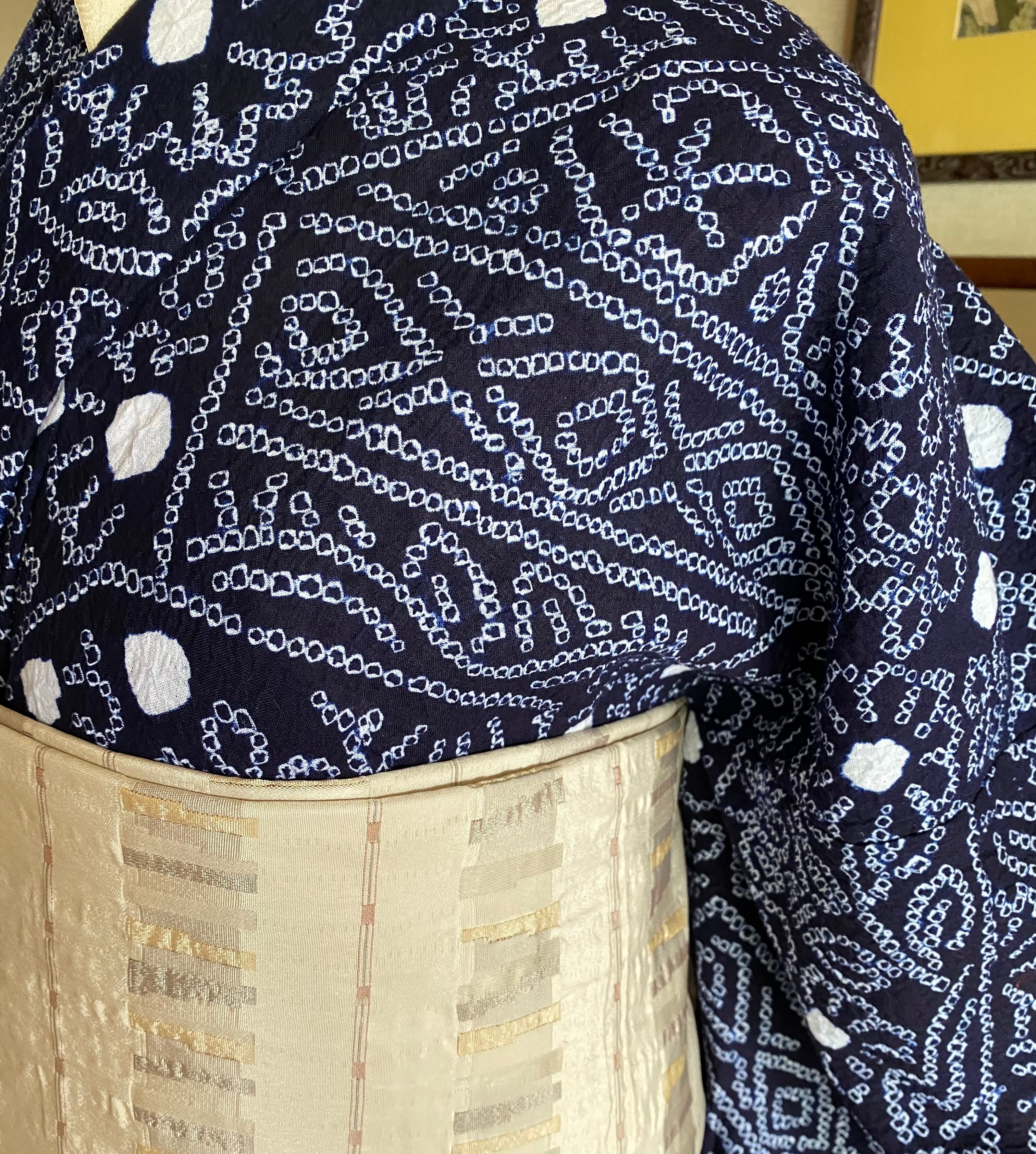 雰囲気ある有松絞り、白い丸がさわやかで