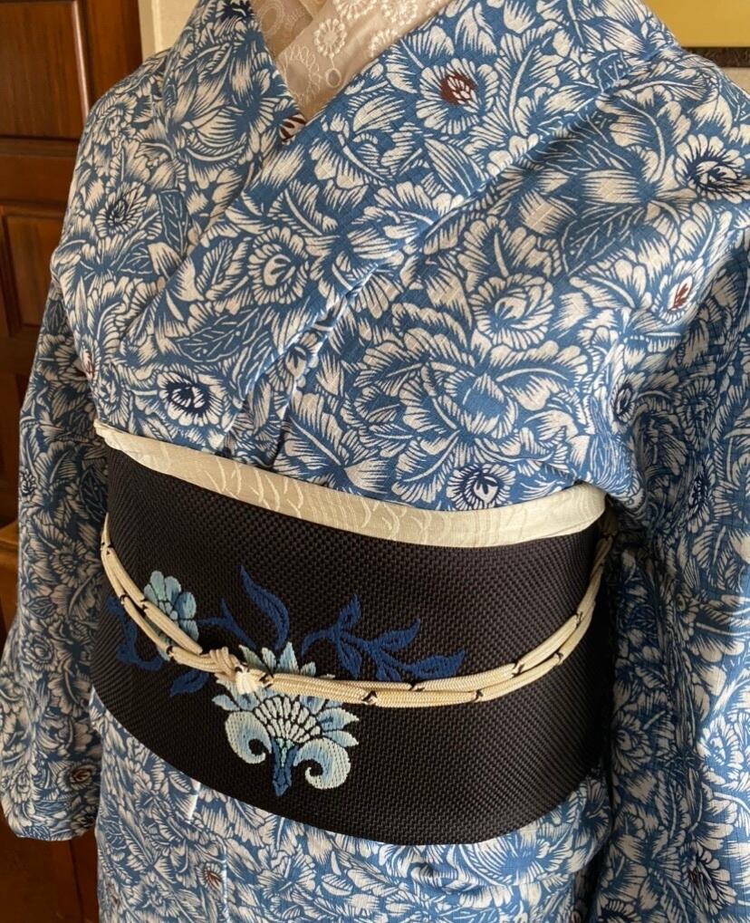 綿紅梅の浴衣または木綿単衣キモノとして半襟、長襦袢を着てお召しになれます。