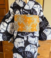 ステキな団扇 うちわ紋様の有松絞り浴衣。