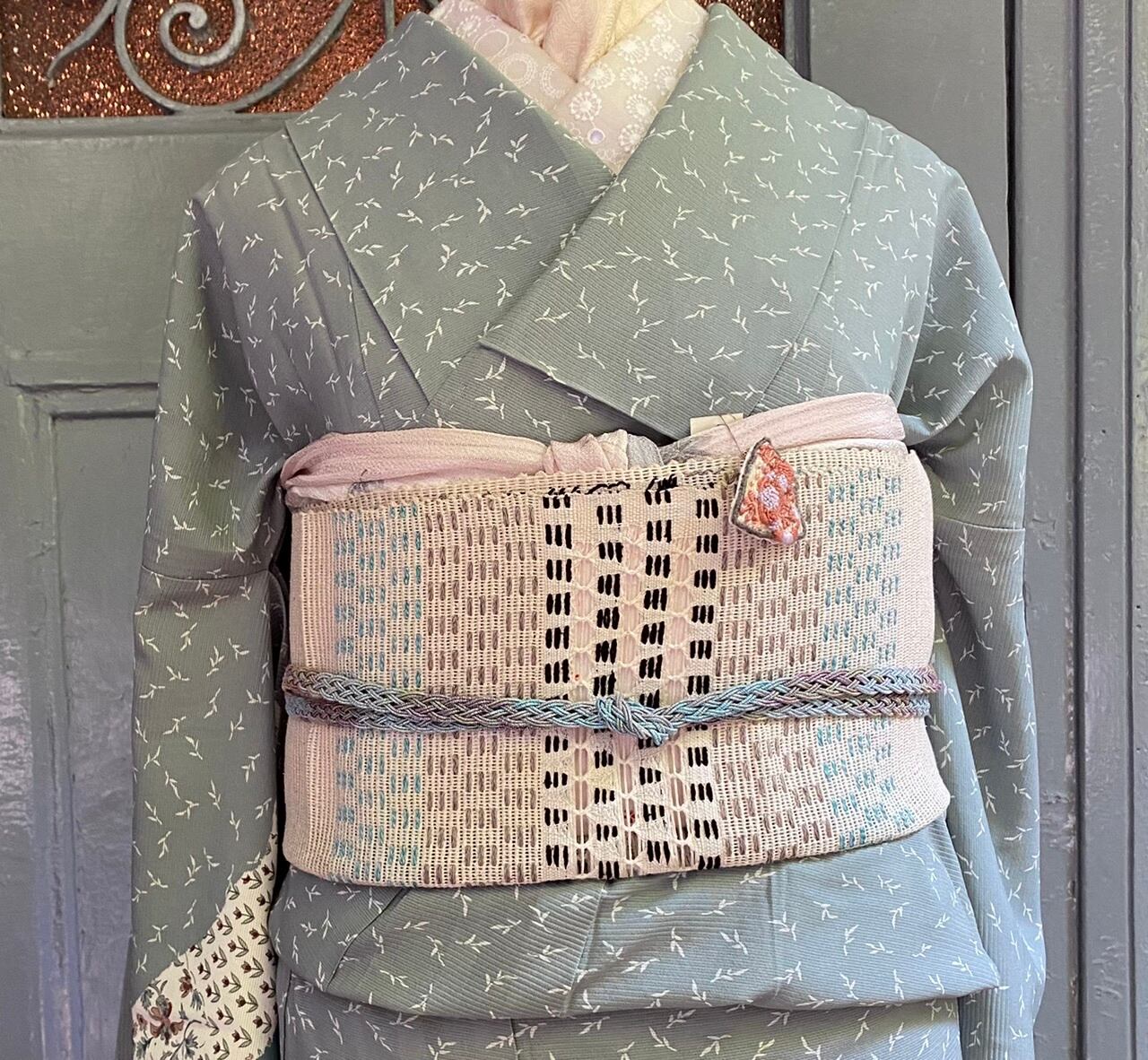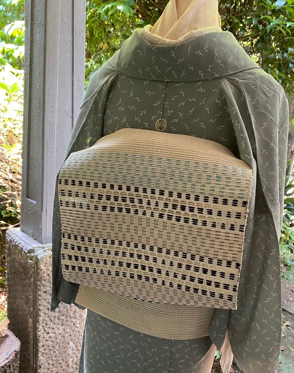 ベージュ色はいろいろな夏キモノに合わせやすいと思います。