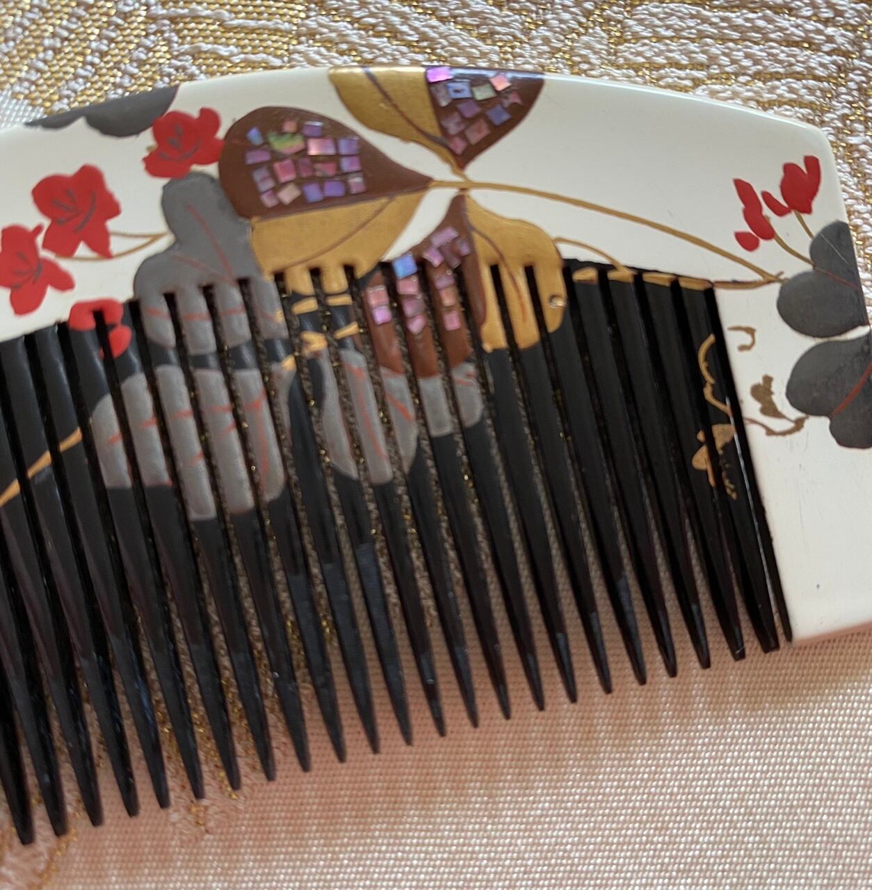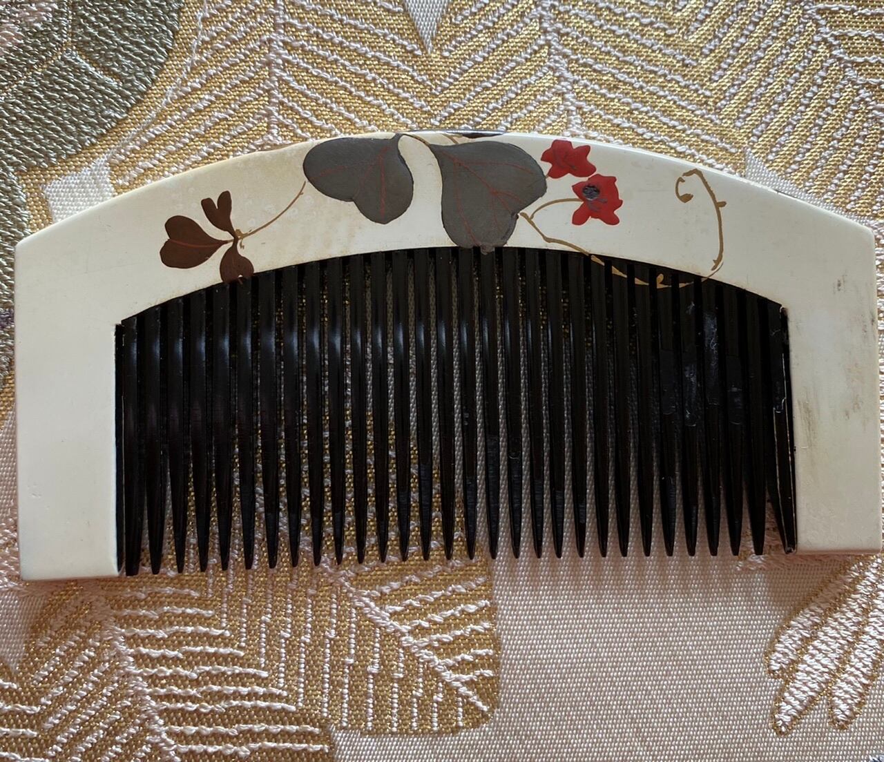 櫛 白漆 とんぼ かたばみ アンティーク