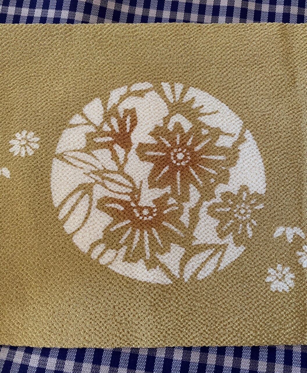 縮緬 伊勢型染 名古屋帯 辛子色
