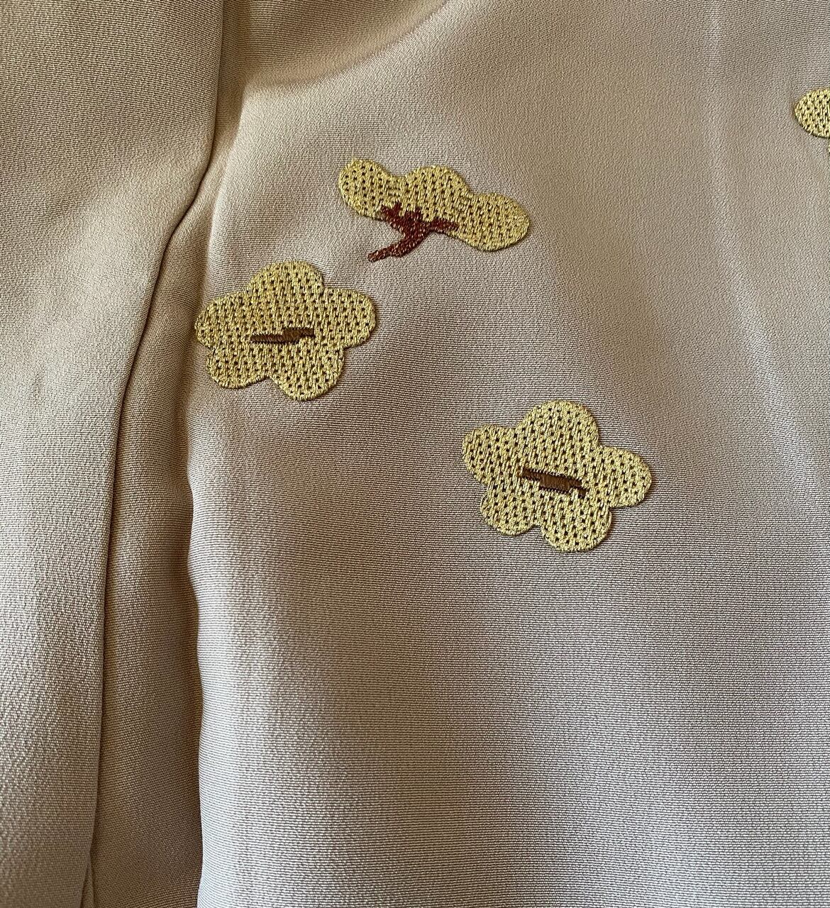 梅の花の清楚で可憐さ、枝ぶりの刺繍も見事です。