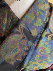 更紗紋様 紬 黒✖️青市松