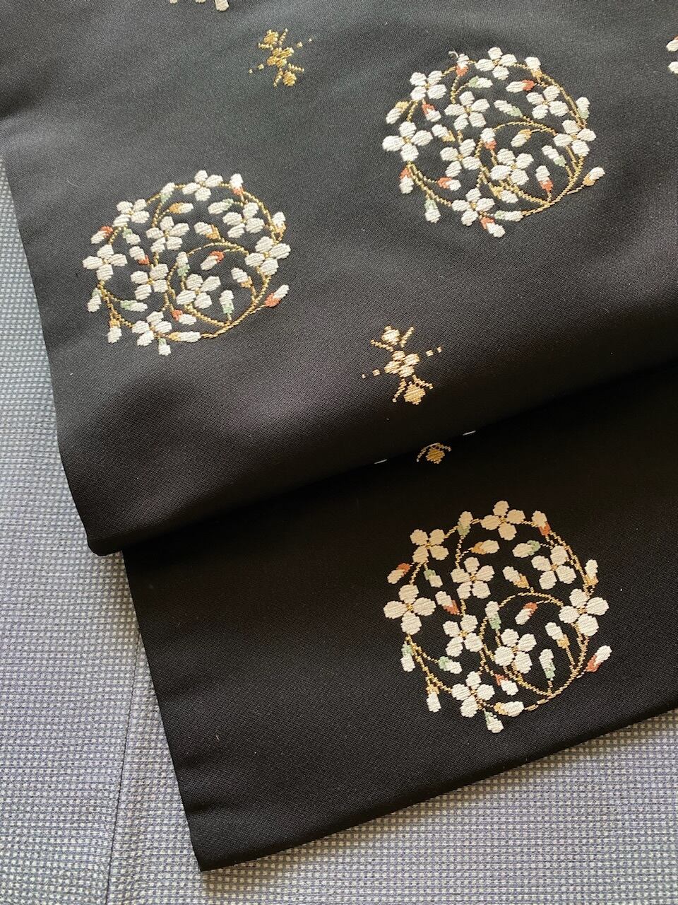 モダンなおしゃれな花丸紋様の織り 名古屋帯。