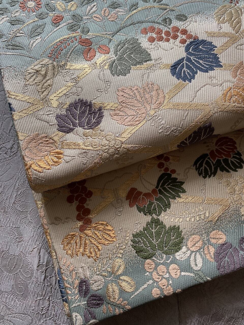 唐織り 小菊や葡萄、萩 段々ぼかし 袋帯