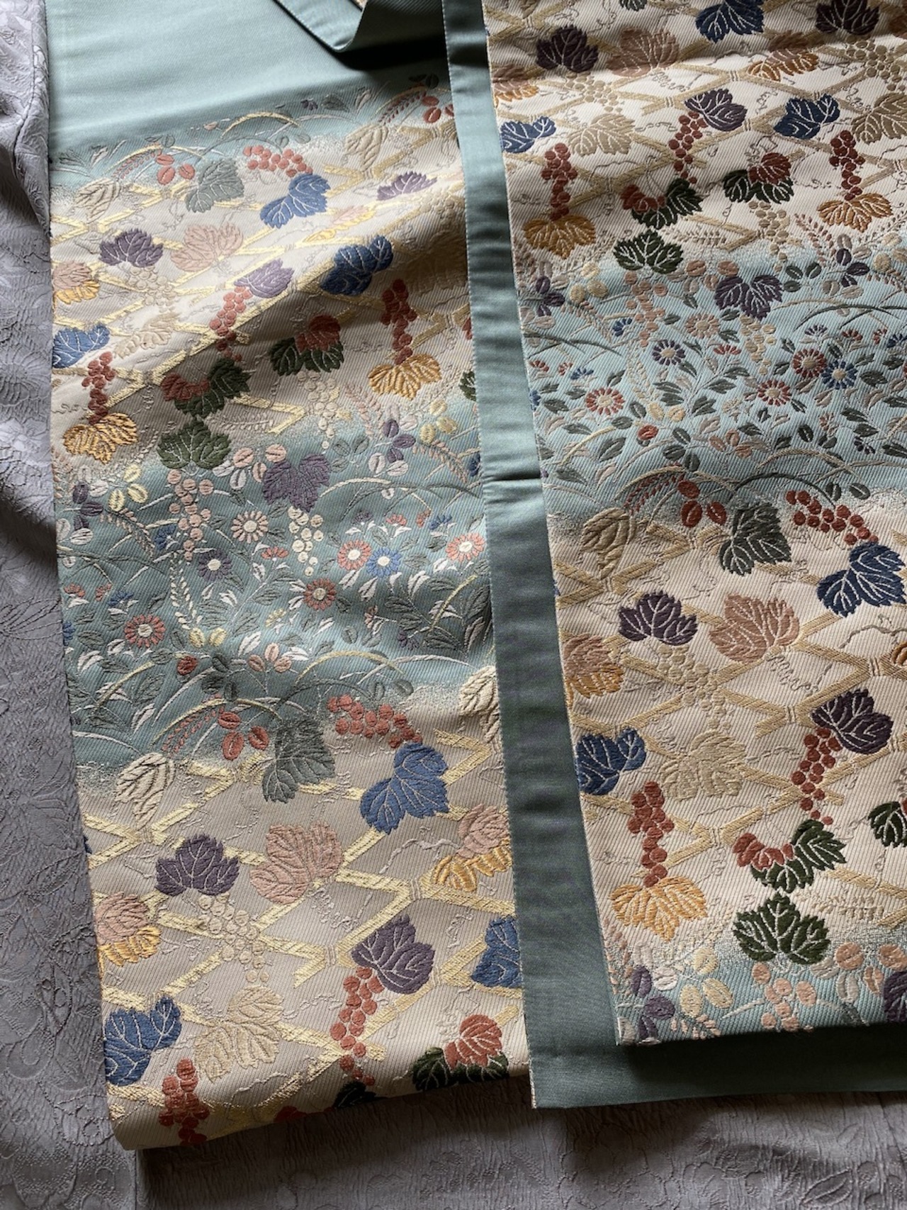 小菊、葡萄、萩、秋の紋様ですが、春、秋、冬にお召しになれます。