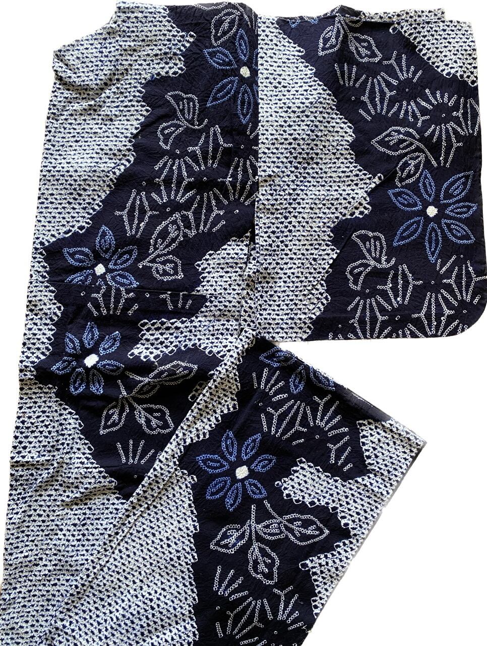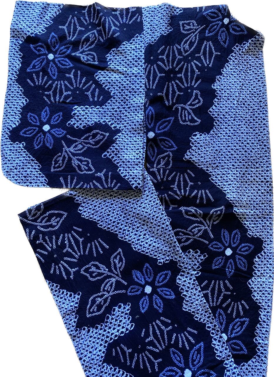 有松絞り 浴衣 未着用品 青花麻の葉