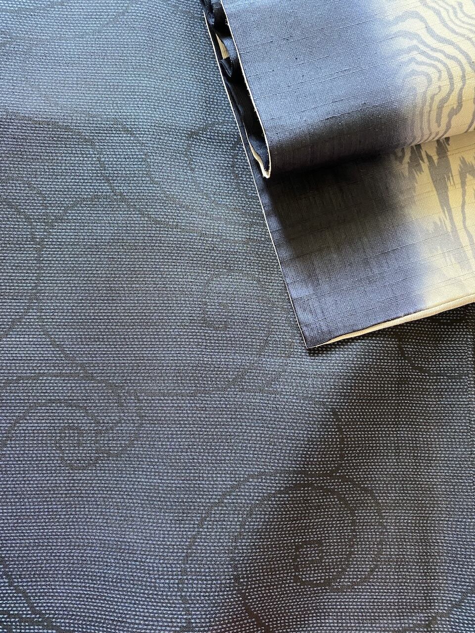 小さな連続した絣に水流または渦巻きのような紋様が入った粋でシックな紗紬。