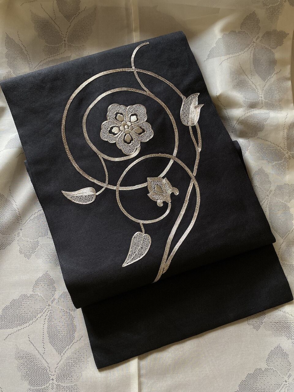 刺繍部分は銀糸、すこしキラキラします。